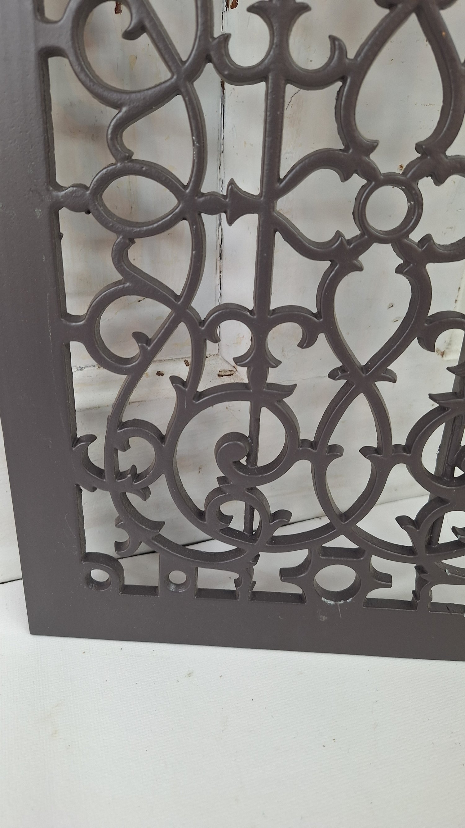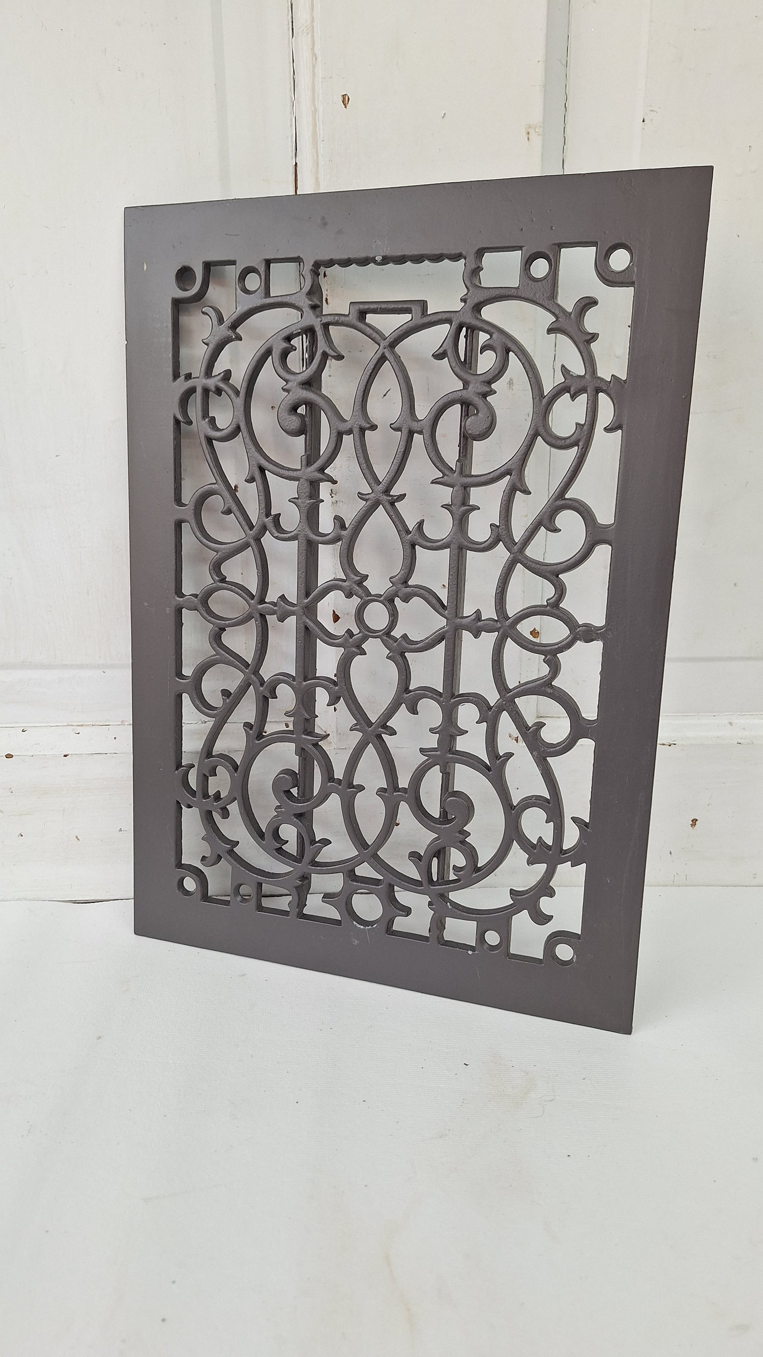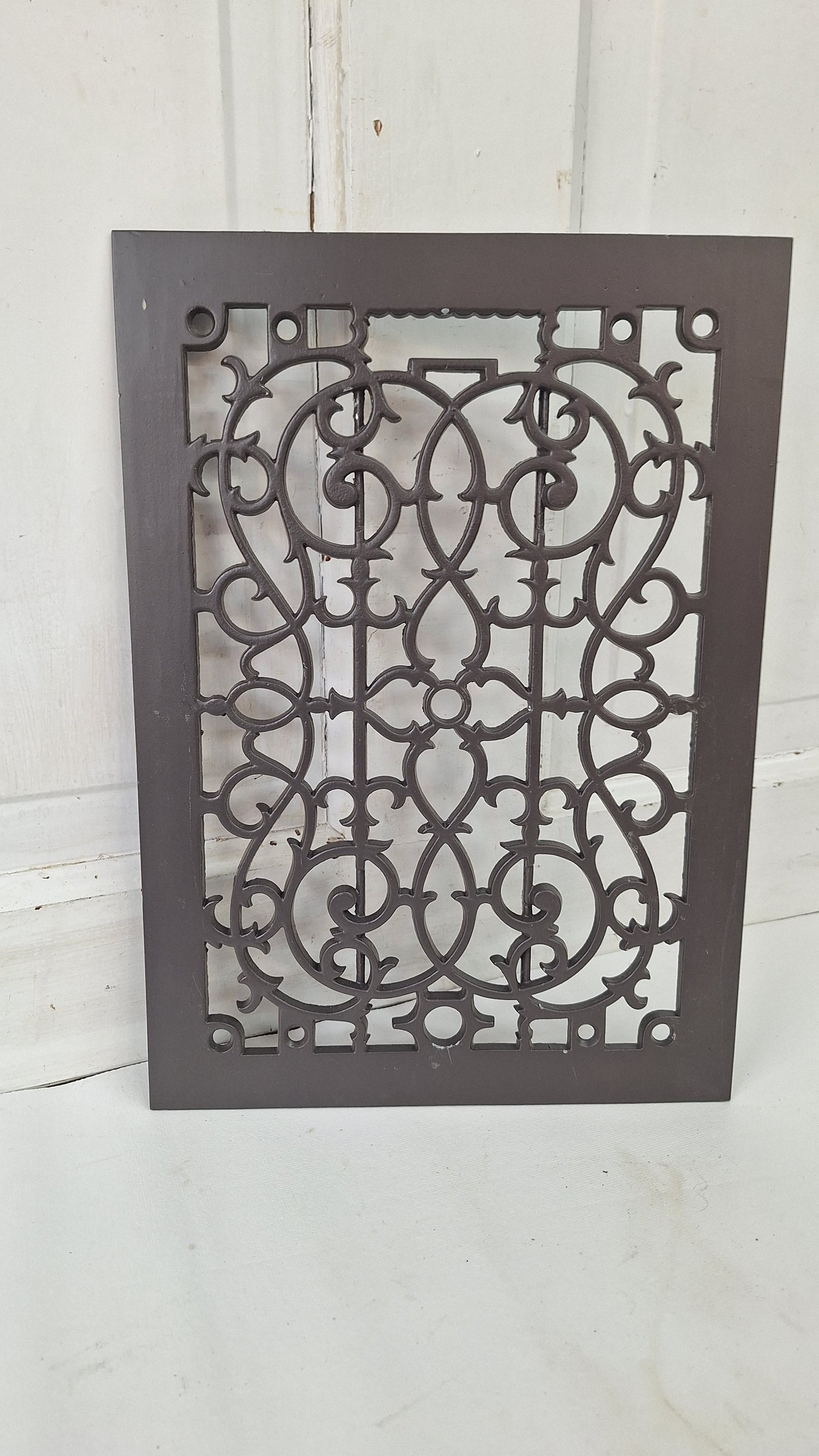 A beautiful antique vent cover, suitable for wall or floor use. This piece has been repainted in a matte brown and is in excellent condition.