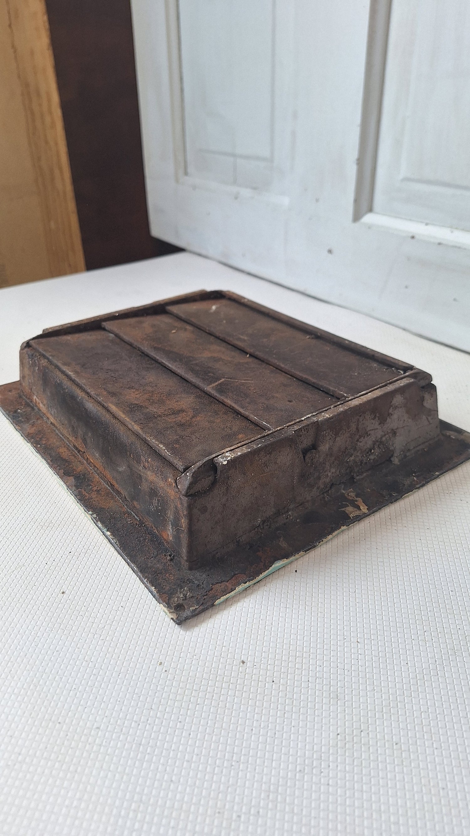 This antique vent cover measures 9 5/8" wide by 11 5/8" tall overall. The inset section on the back measures 7 5/8" by 9 1/2" tall. This item ships free within the US. No PO boxes please.