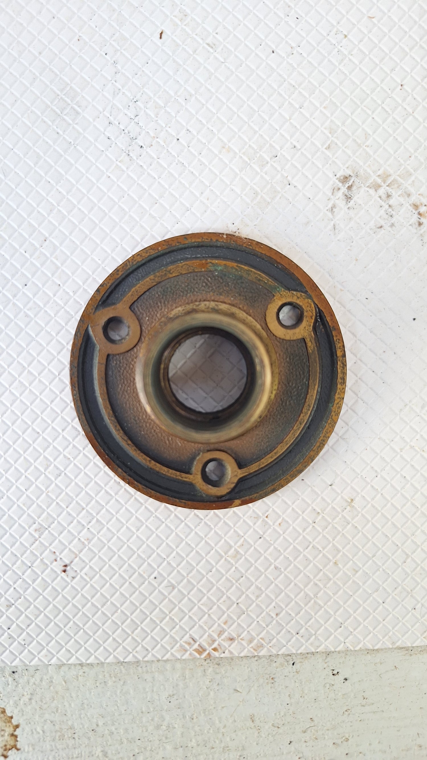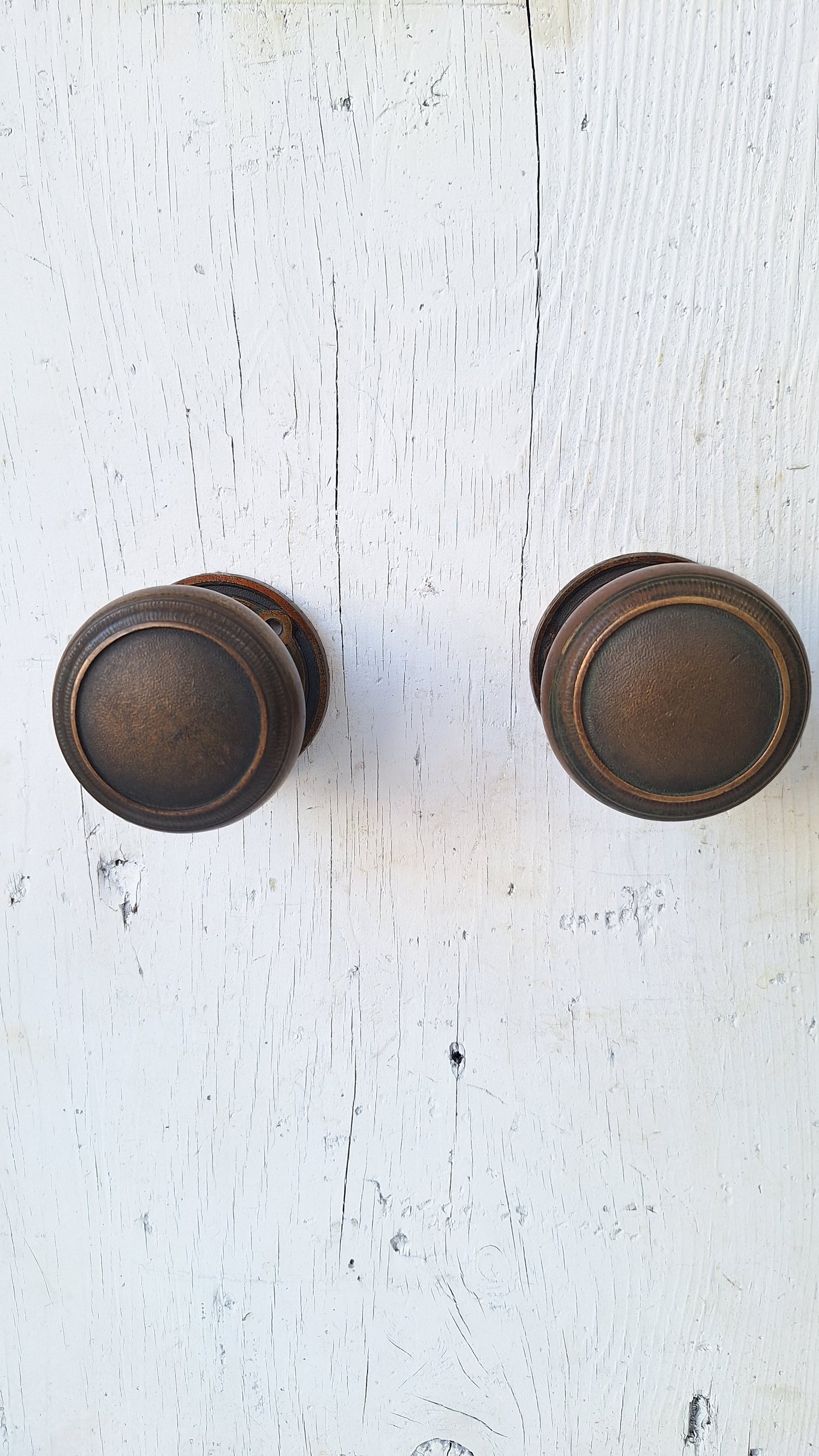Antique Set of Solid Bronze Doorknob Set, Antique Door Knob Set with Bronze Rosettes Collars, Architecture Salvage