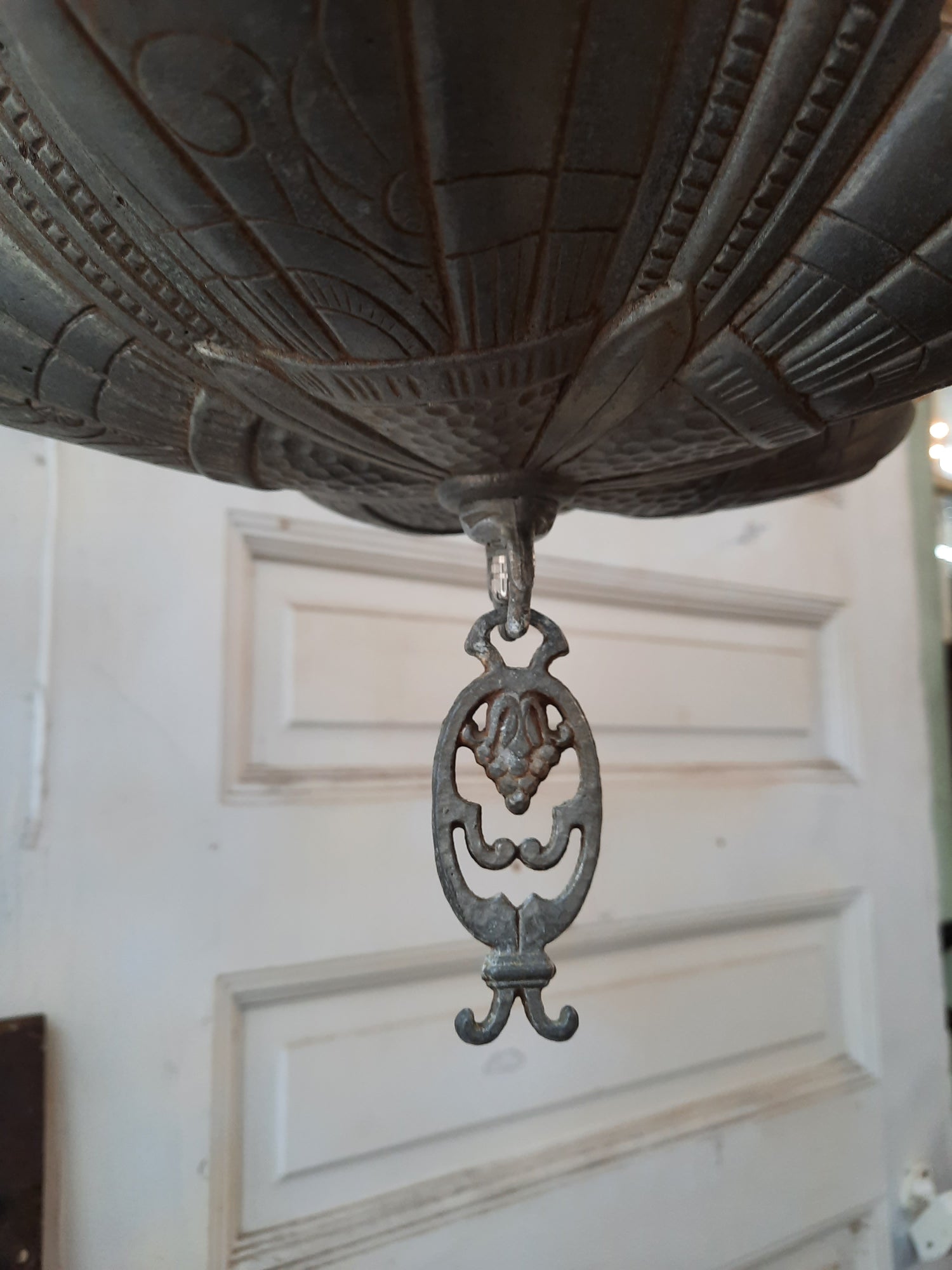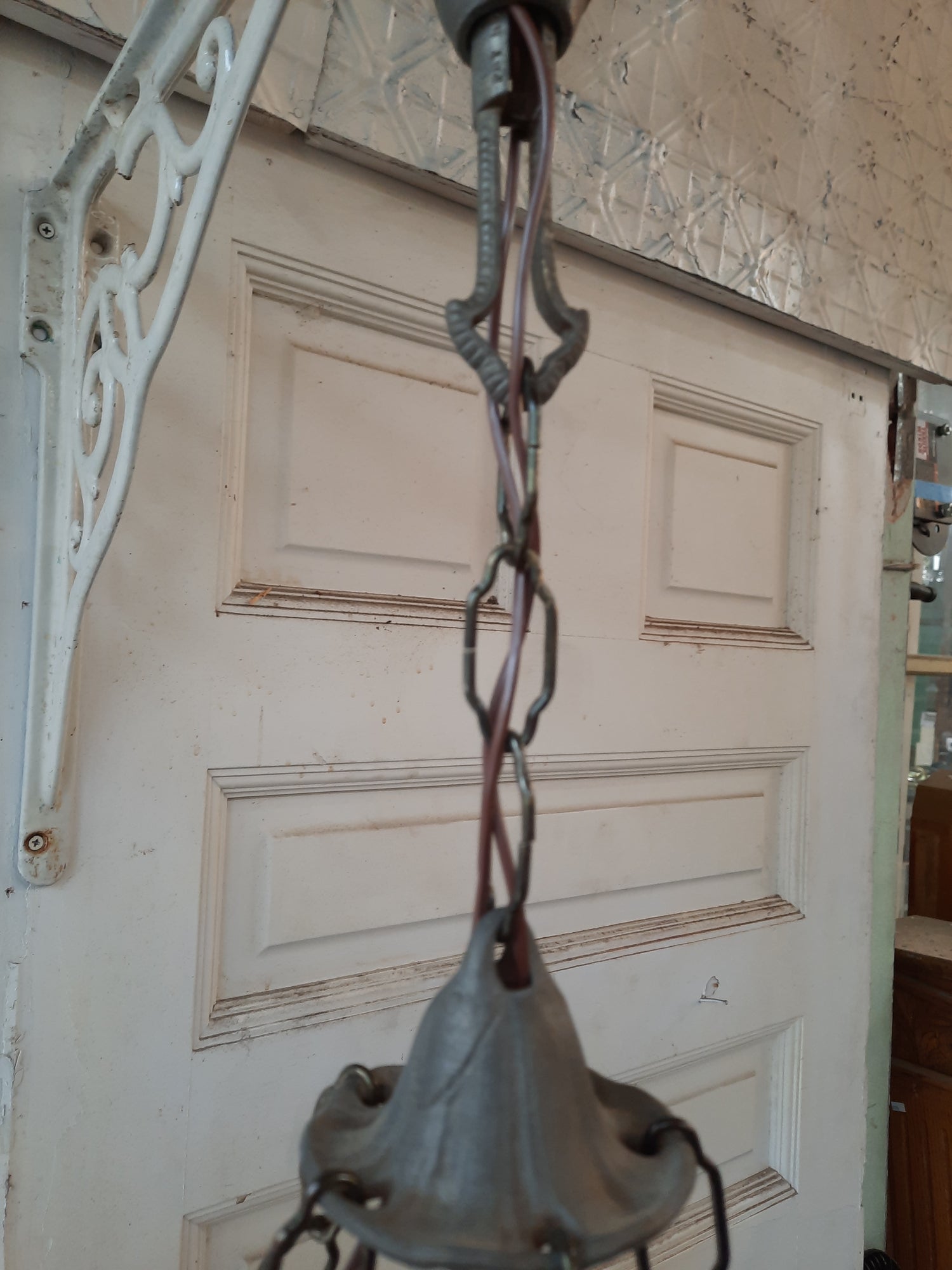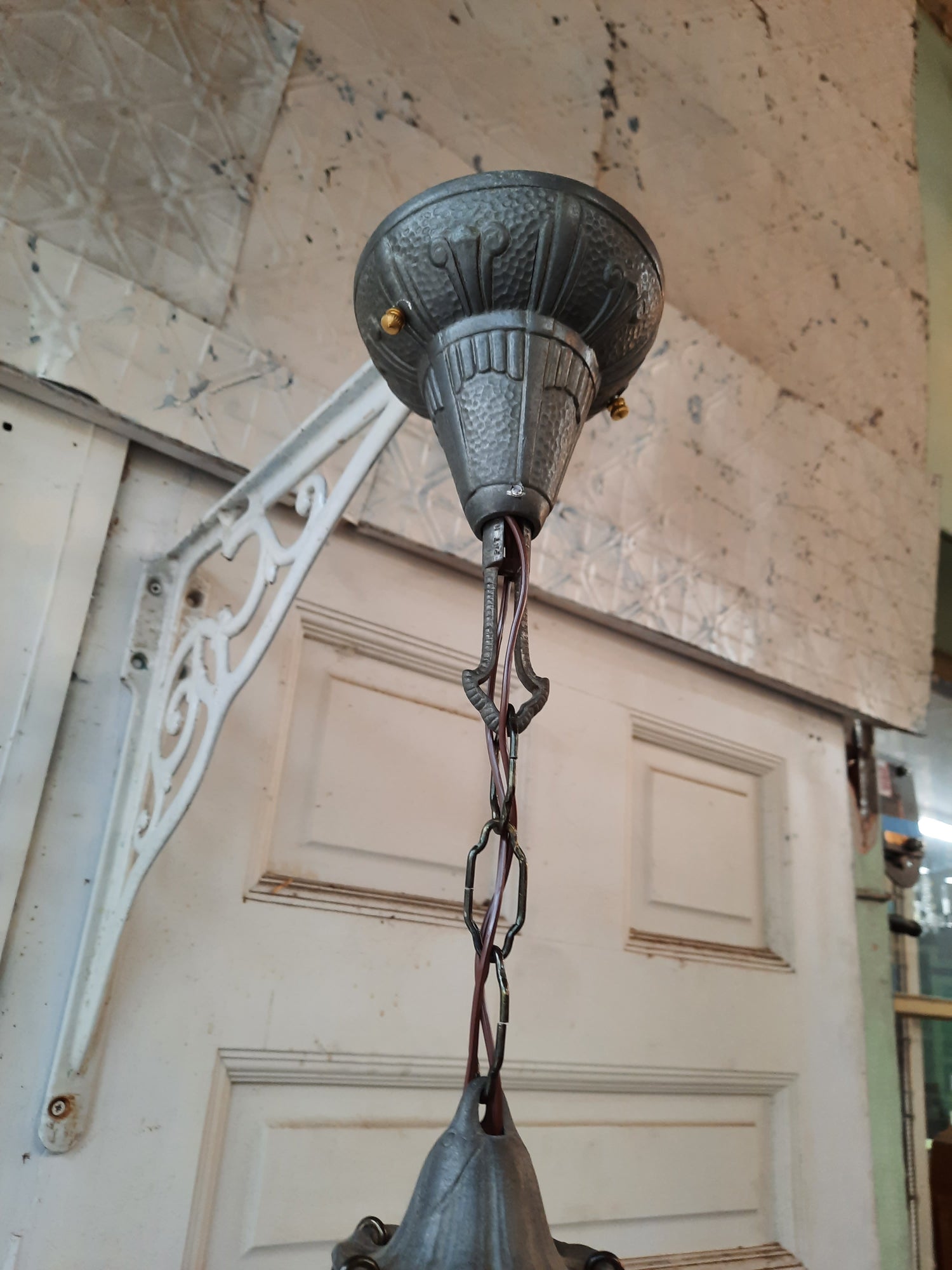 This antique Art Deco chandelier measures approx. 16" wide by 33" tall. This item ships free within the continental US. No PO boxes please.