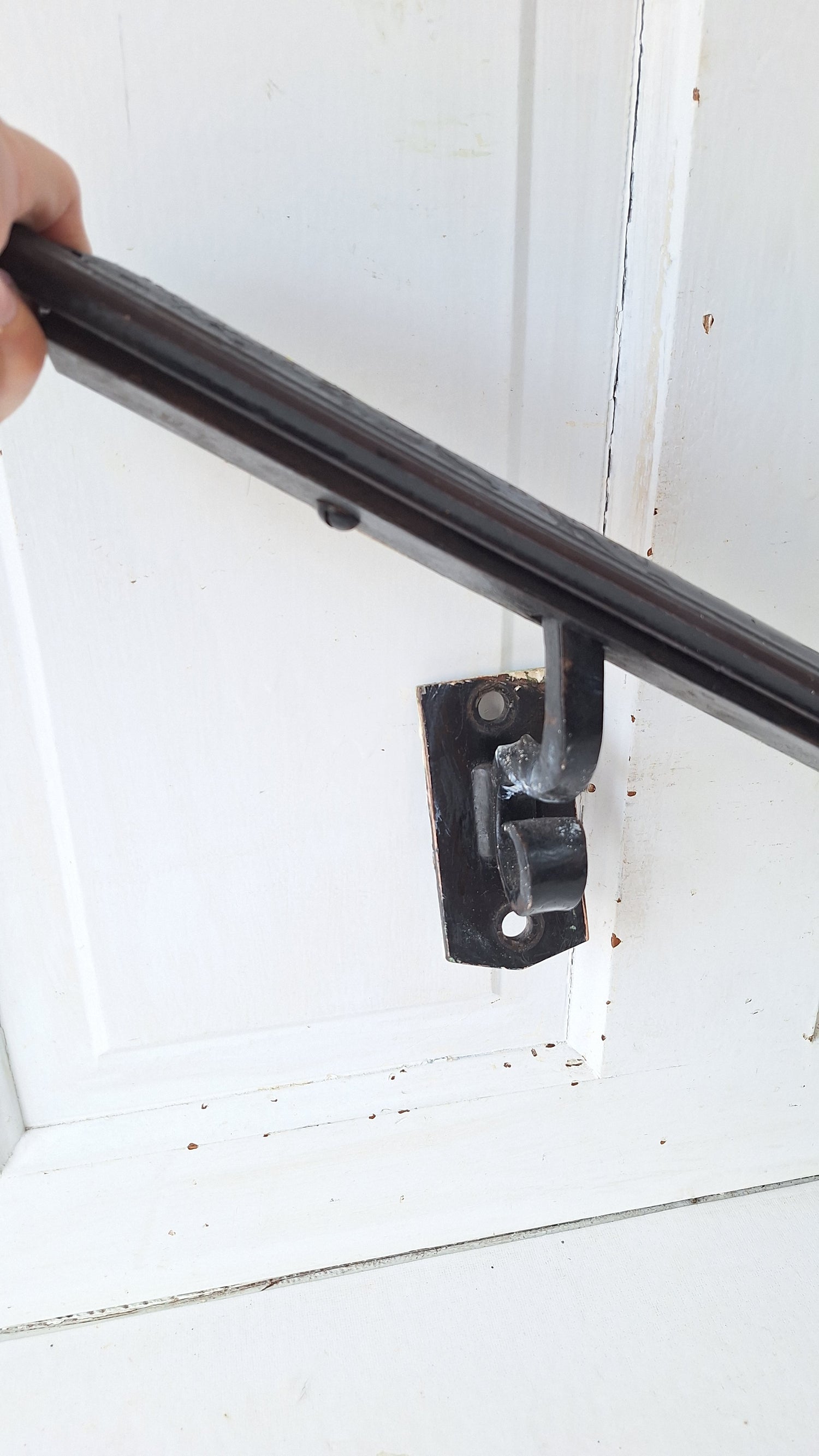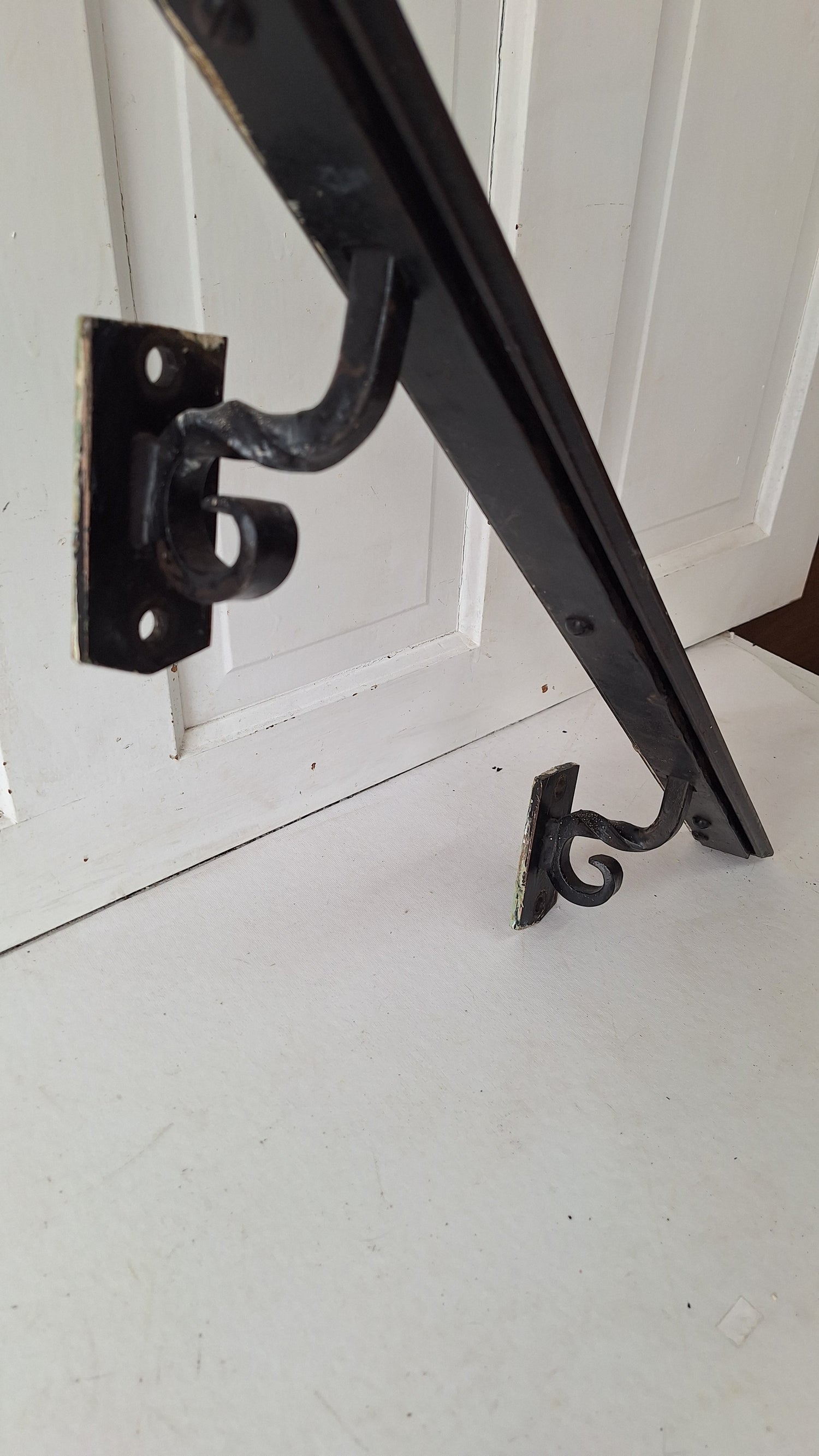 27" Vintage Angled Church Handrailing, Black Iron Hand Rail with Wrought Brackets