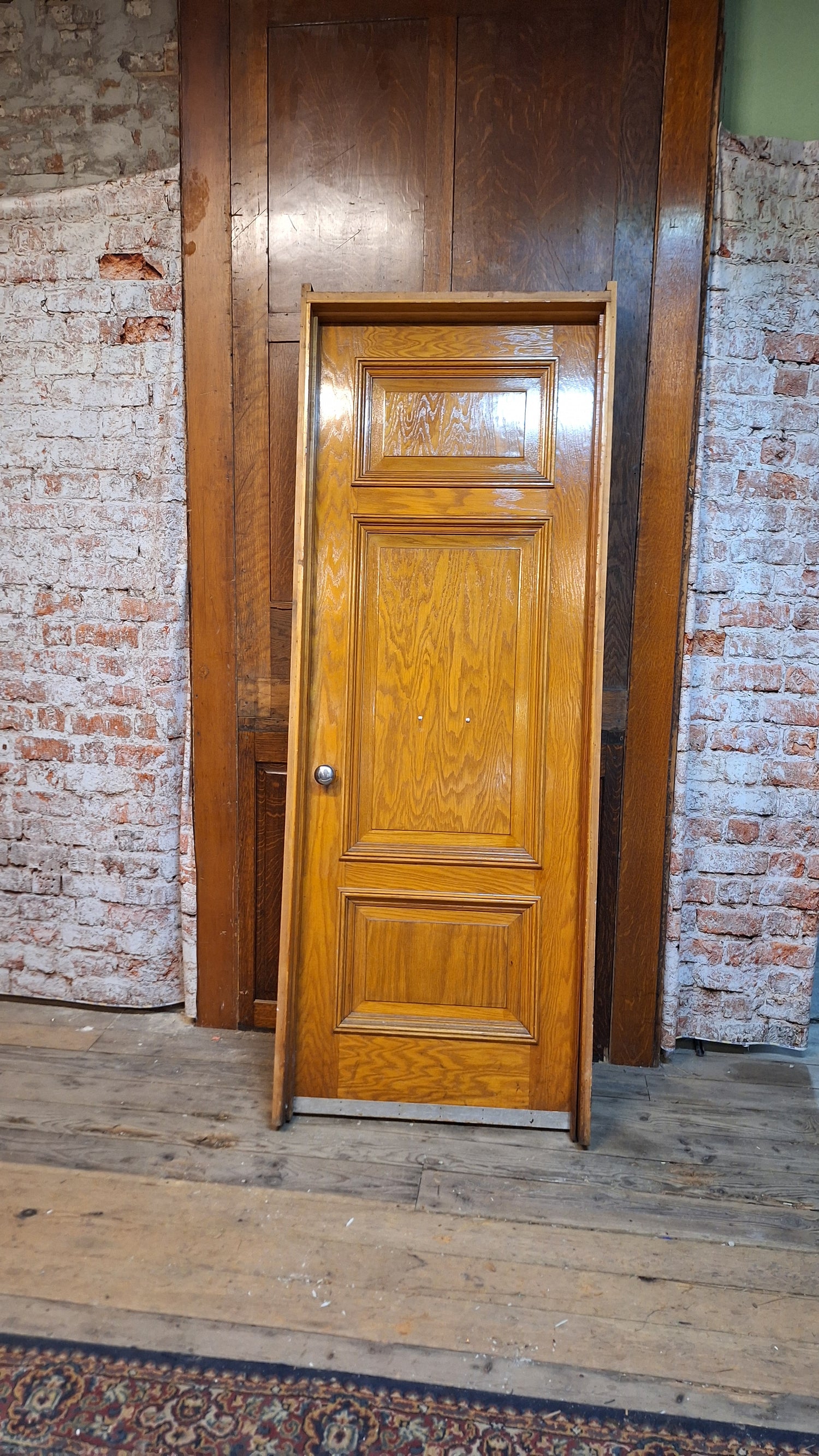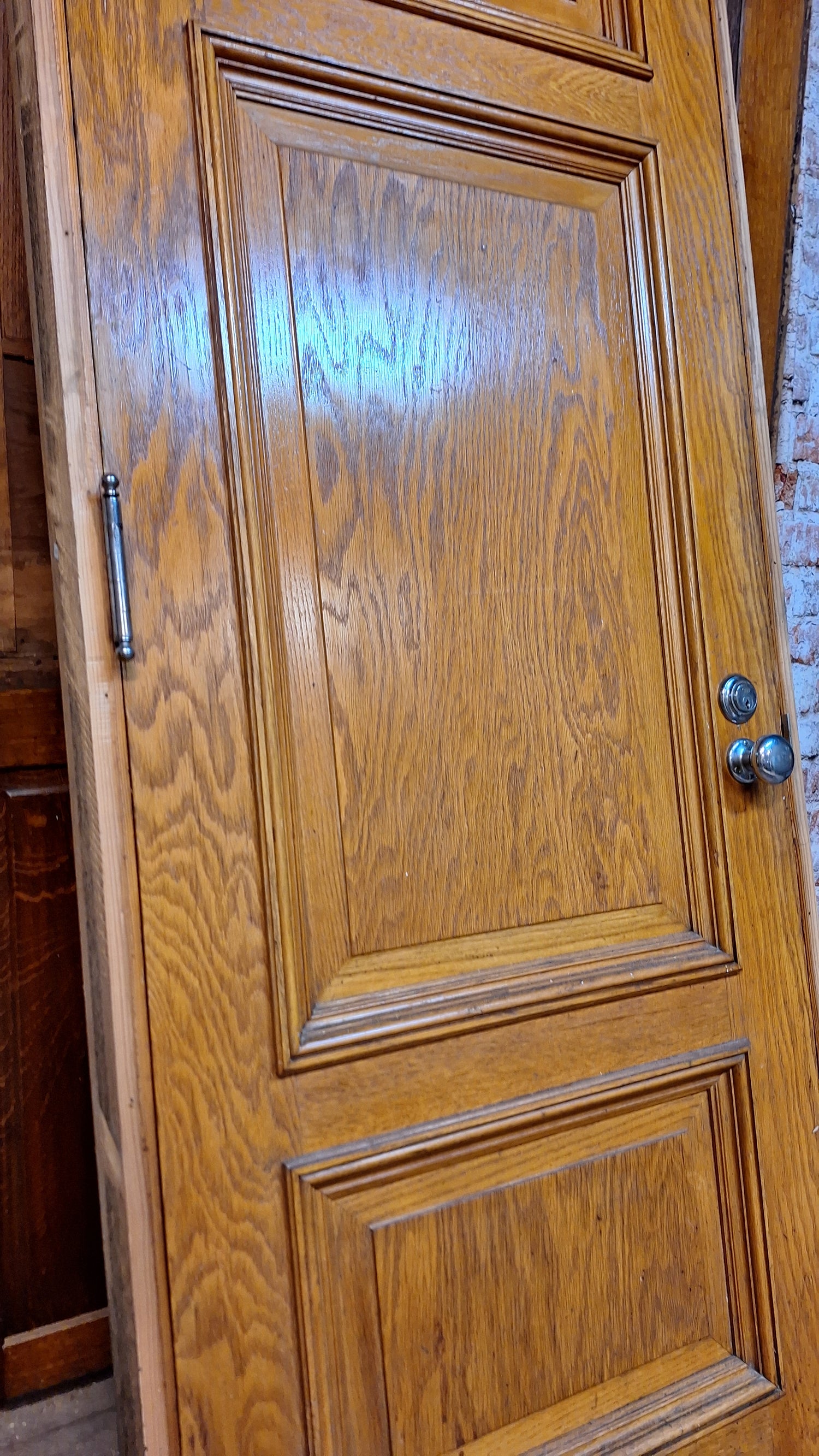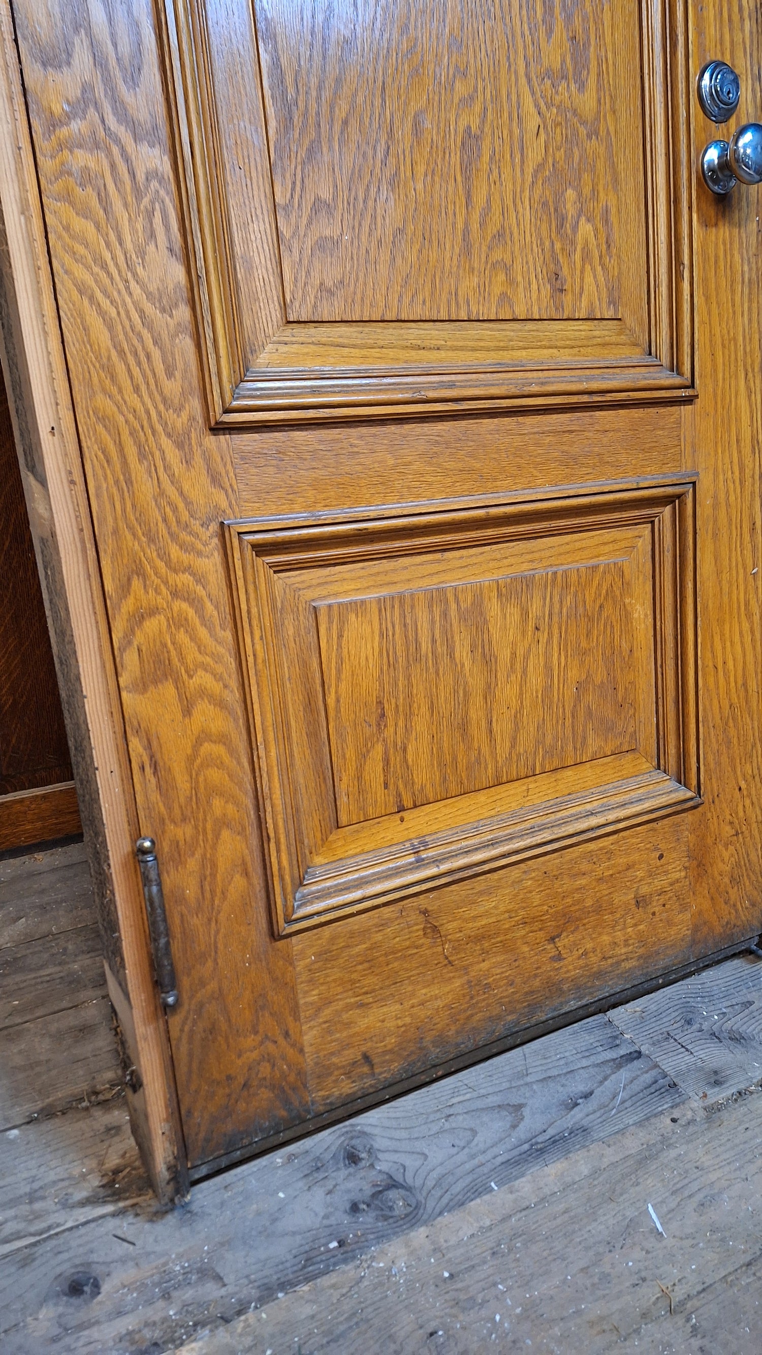 30" Oak Raised Panel Antique Door in Jamb, Interior Antique Passage Door in Frame, Salvaged Wood Door Architecture Salvage 080710