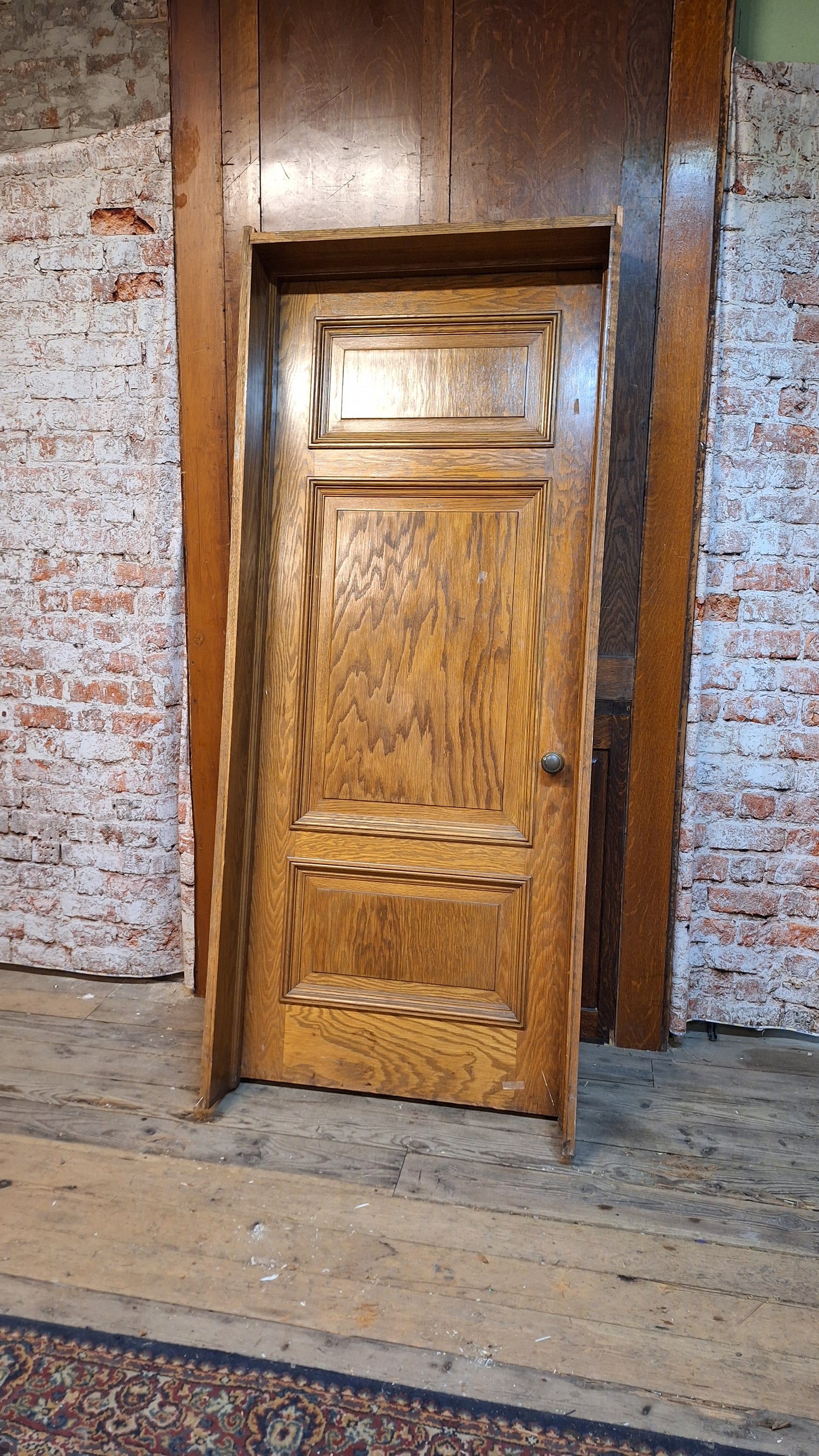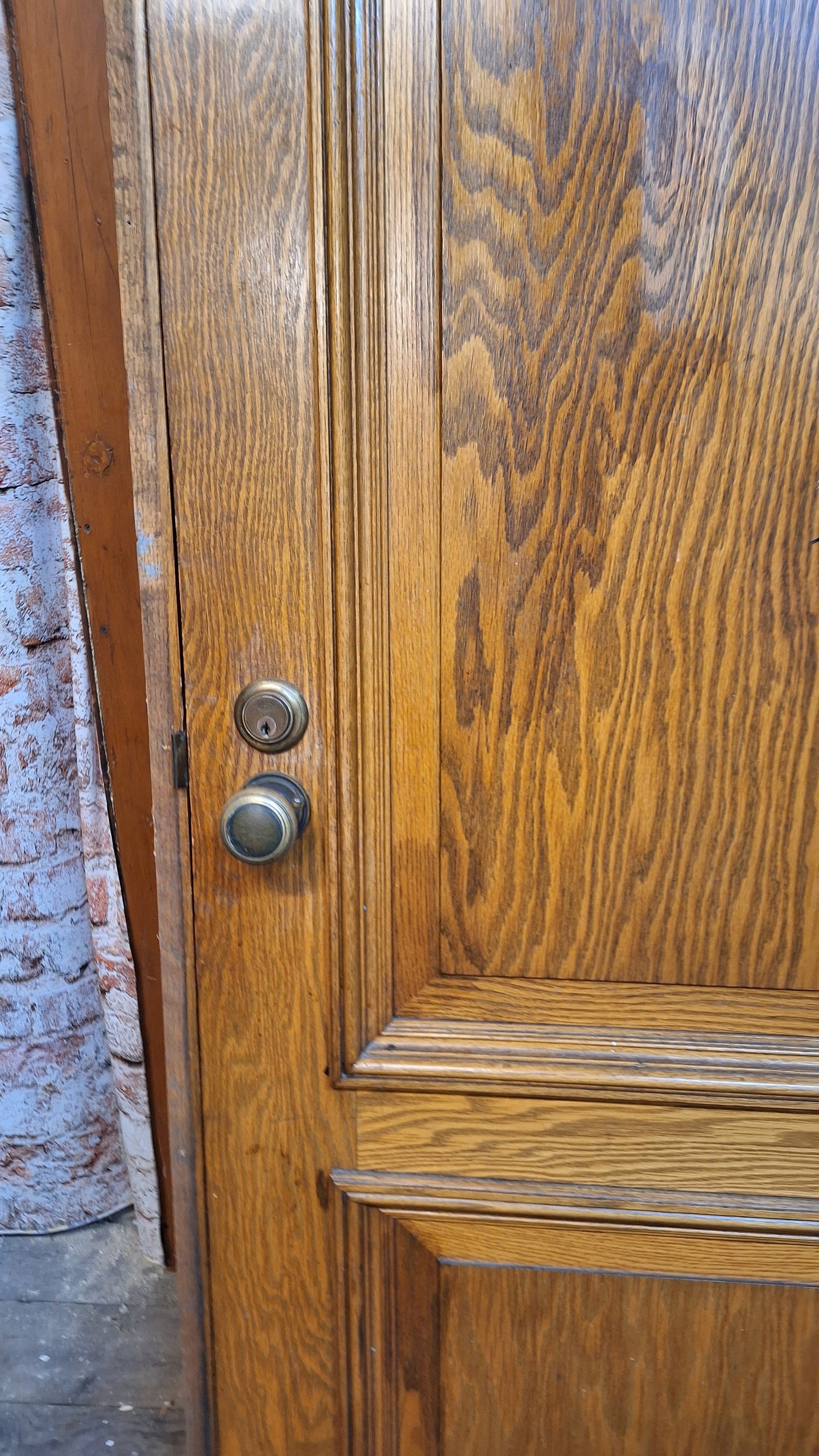 34" Oak Raised Panel Antique Door in Jamb, Interior Antique Passage Door in Frame, Salvaged Wood Door Architecture Salvage 080706