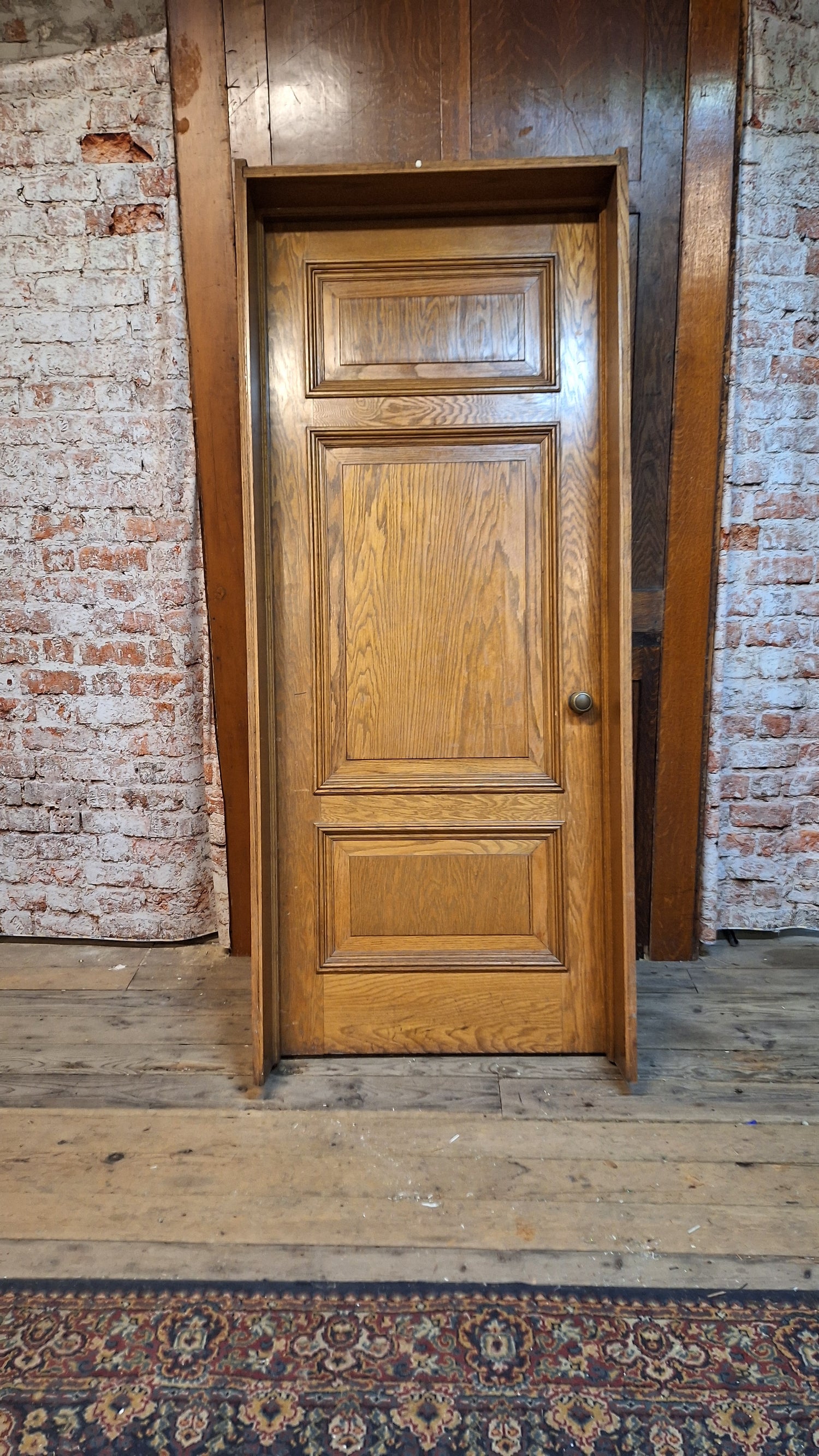34" Oak Raised Panel Antique Door in Jamb, Interior Antique Passage Door in Frame, Salvaged Wood Door Architecture Salvage 080708