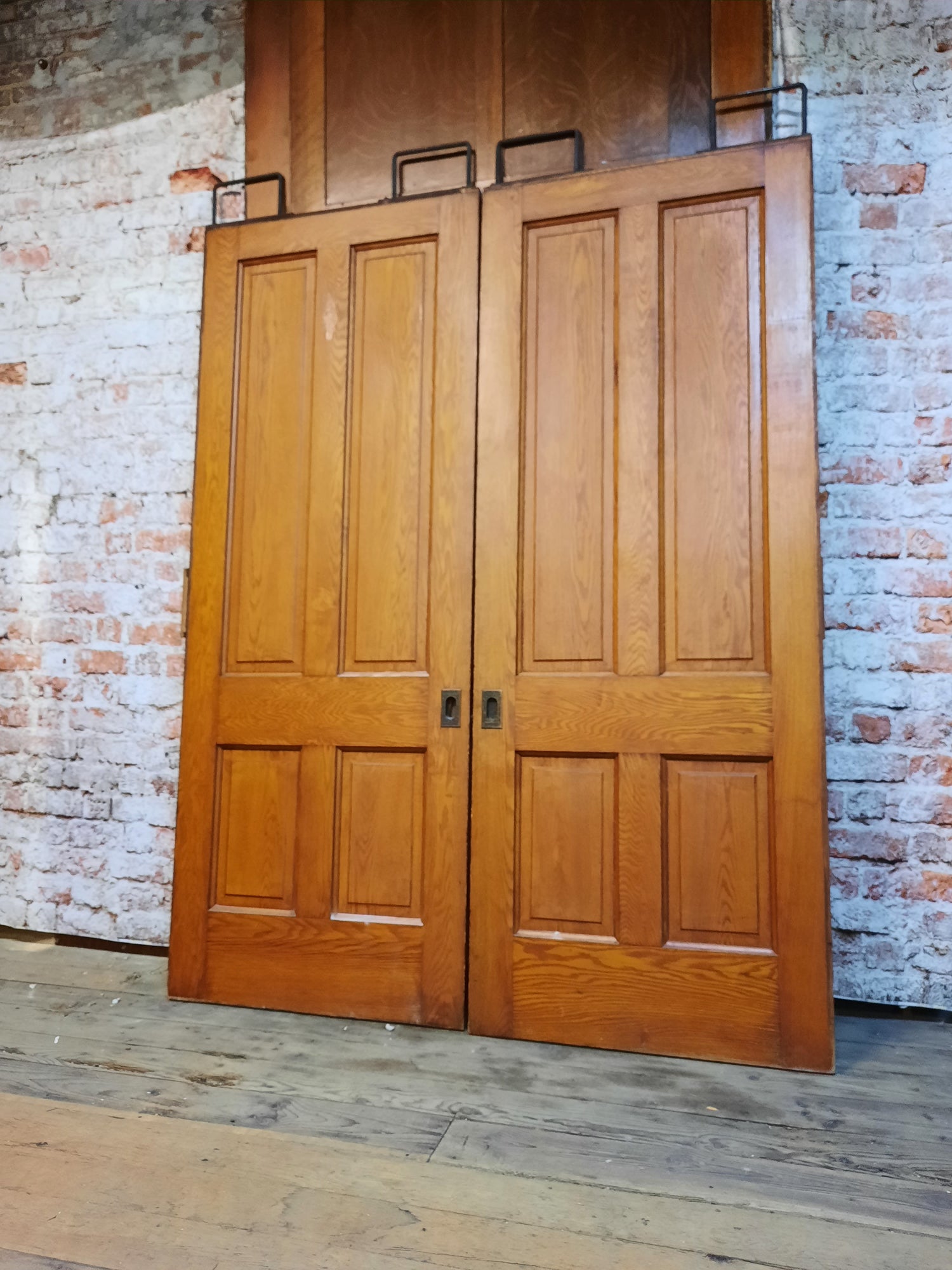 64" Pair of Antique Oak and Pine Pocket Doors, Victorian Era Double Sliding Pocket Doors 092603