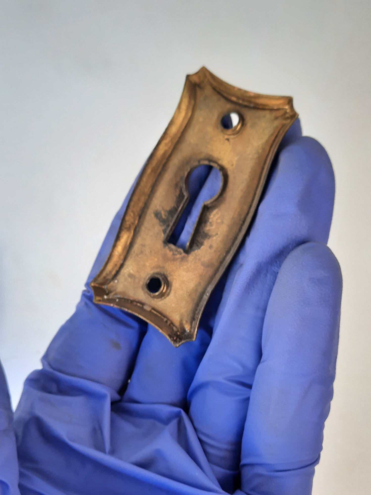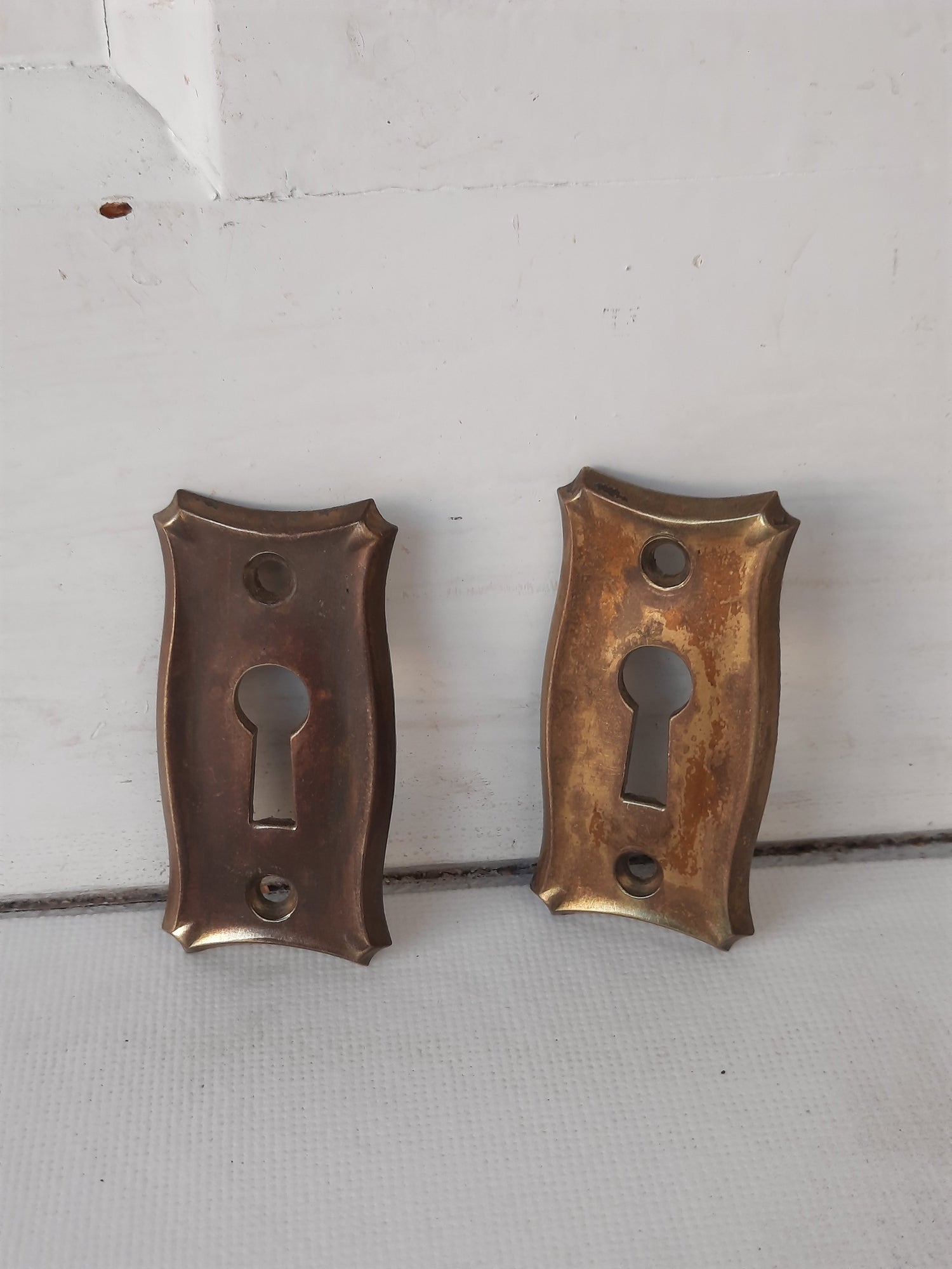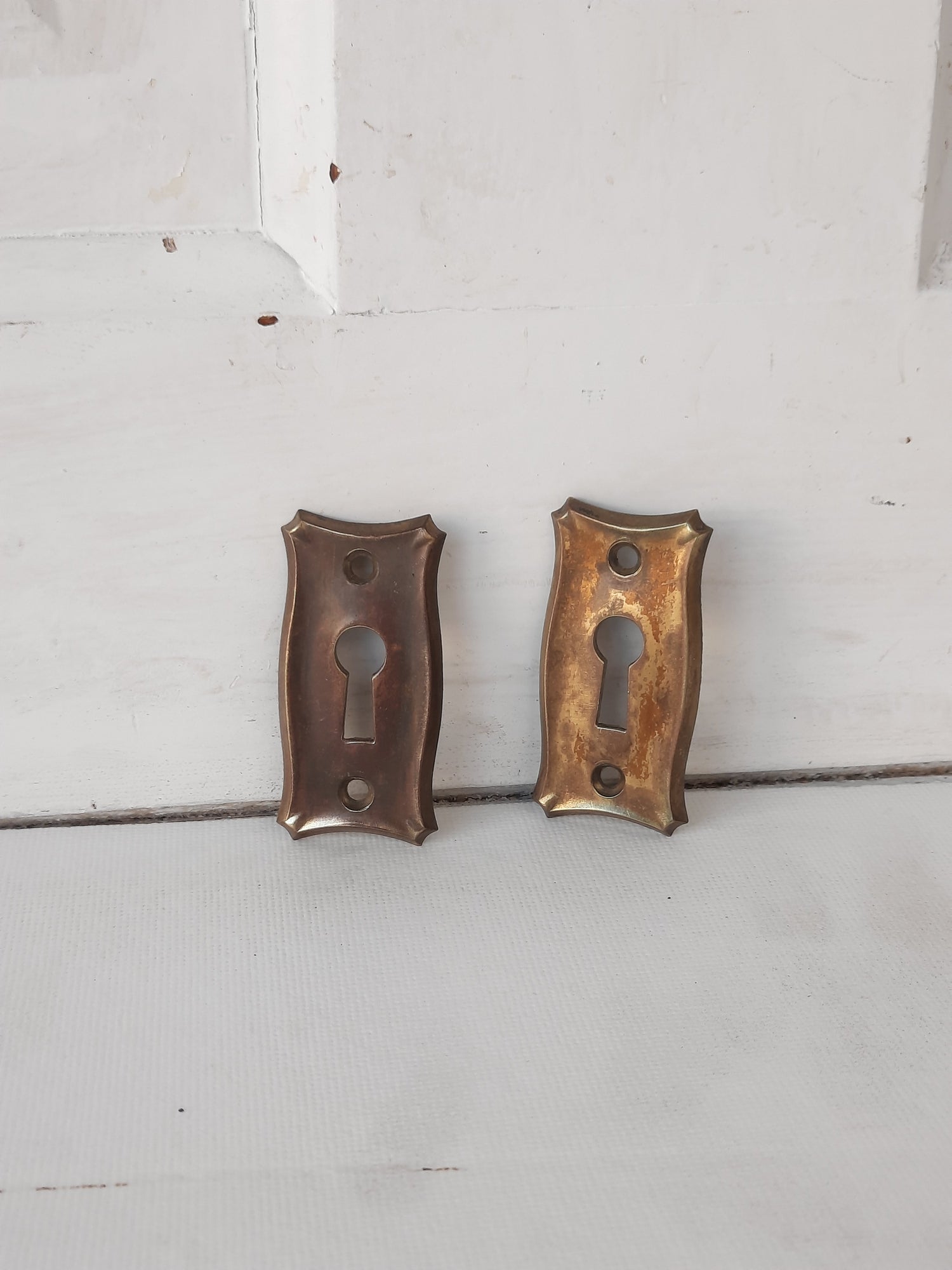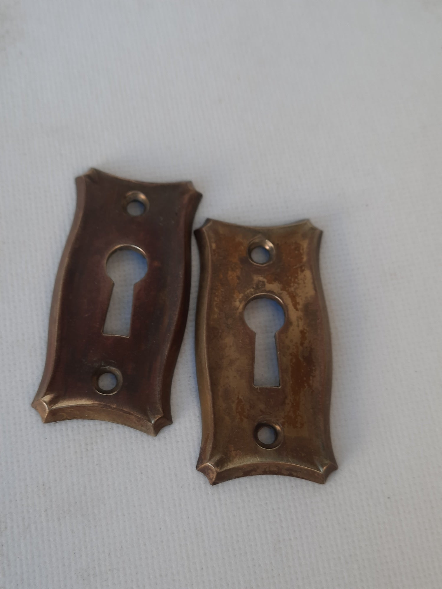 Antique Brass Pair of Keyhole Covers, Ornate Key Hole Escutcheon Plates 121502
