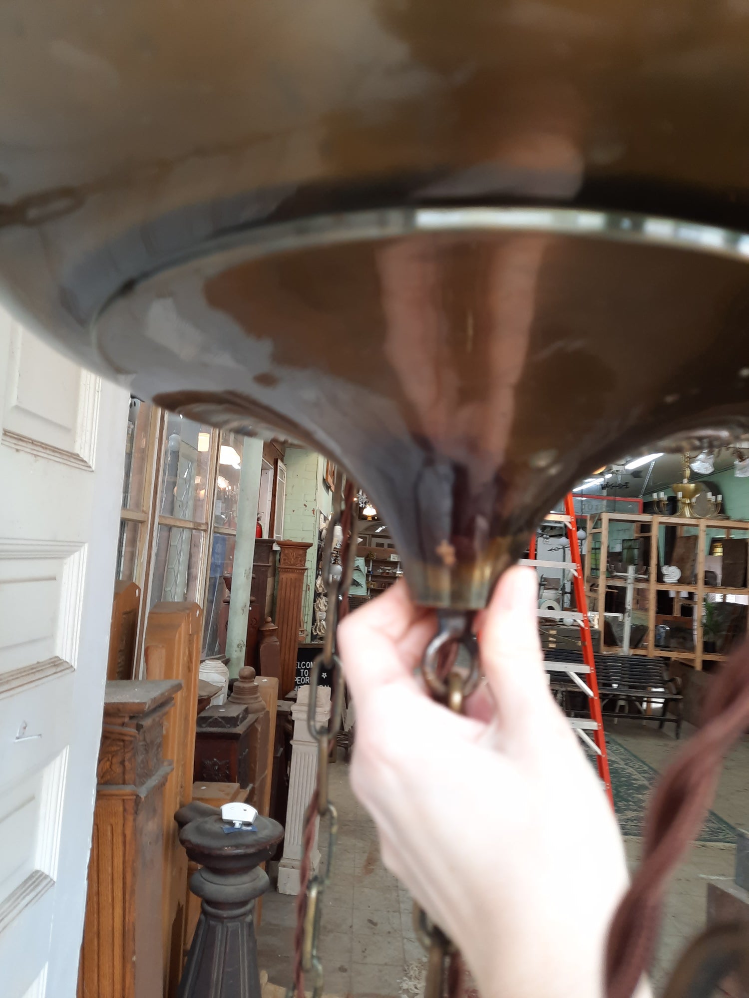 This antique hanging chain pan light measures 48" overall by 16" wide. It can be shortened before shipment; message us for details. This item ships free within the continental US. No PO boxes please.