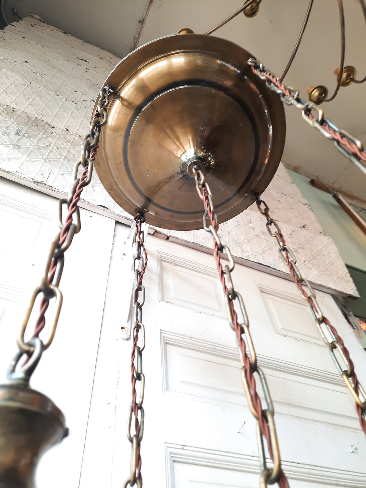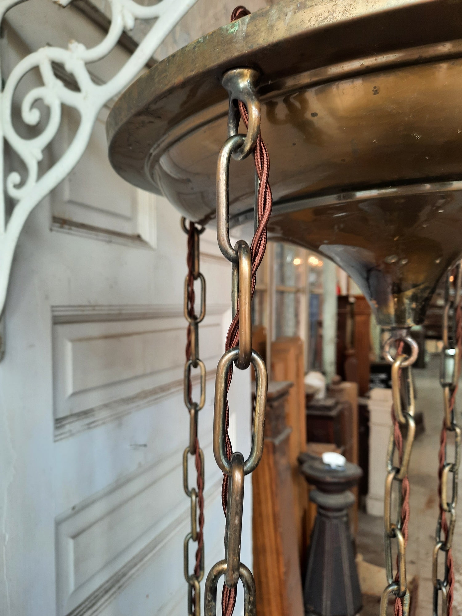 Antique Brass Pan Light with Five Hanging Chain Lights, Large Flush Mount Ceiling Light with Hanging Sockets