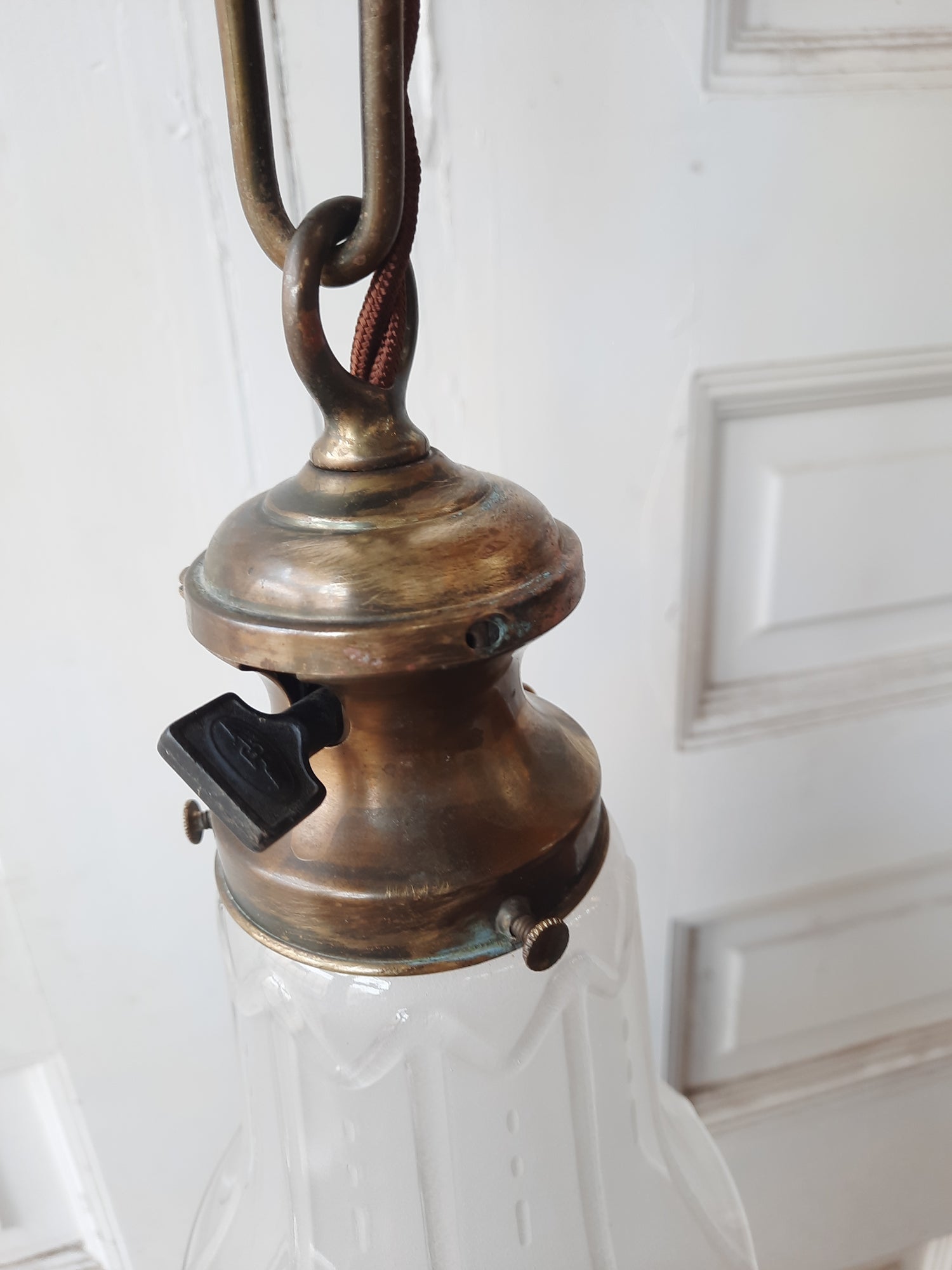This light has been rewired with reproduction cloth-wrapped, rubber insulated wire for an authentic look and is ready for installation. The switches are still in working order.
