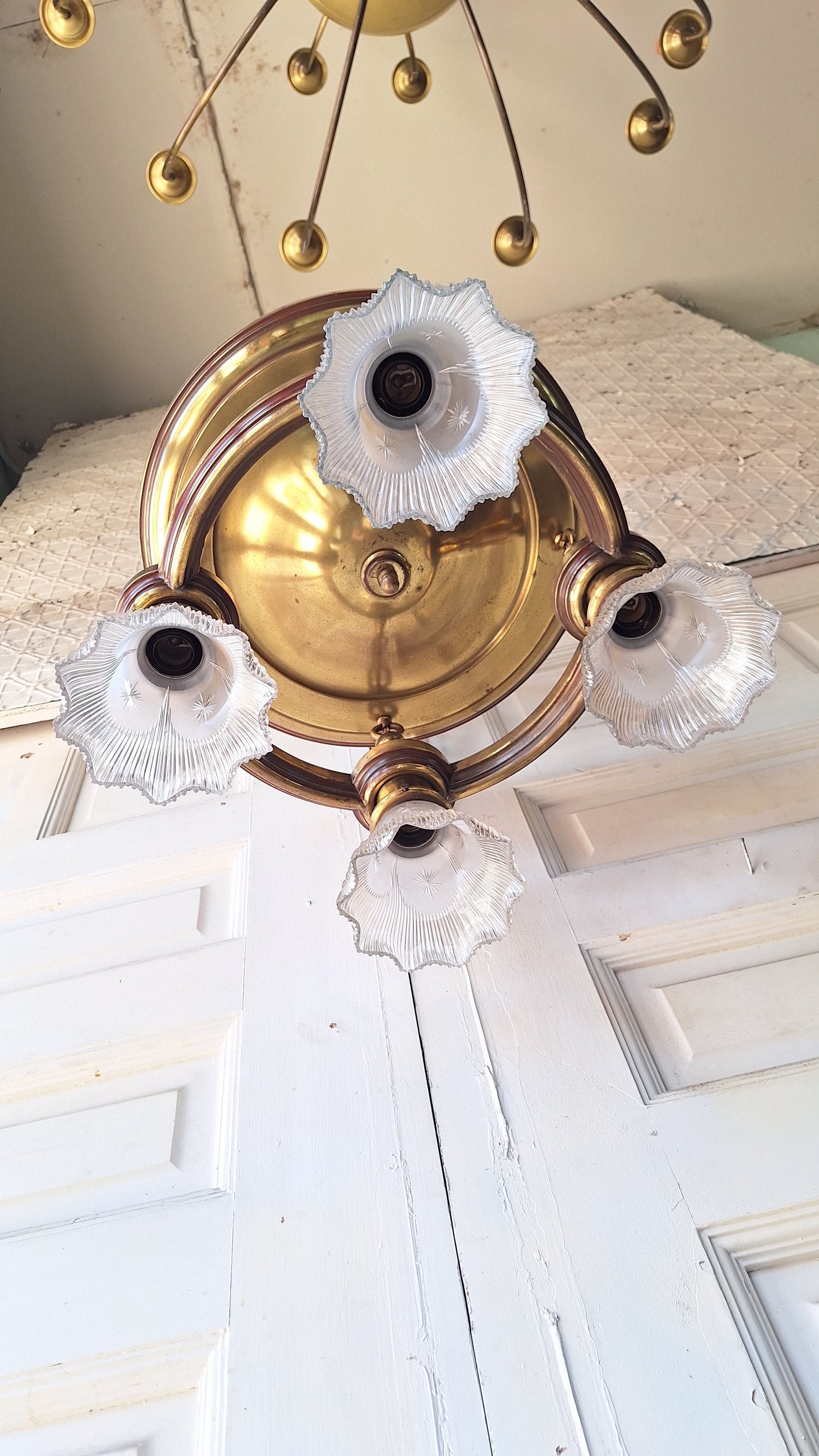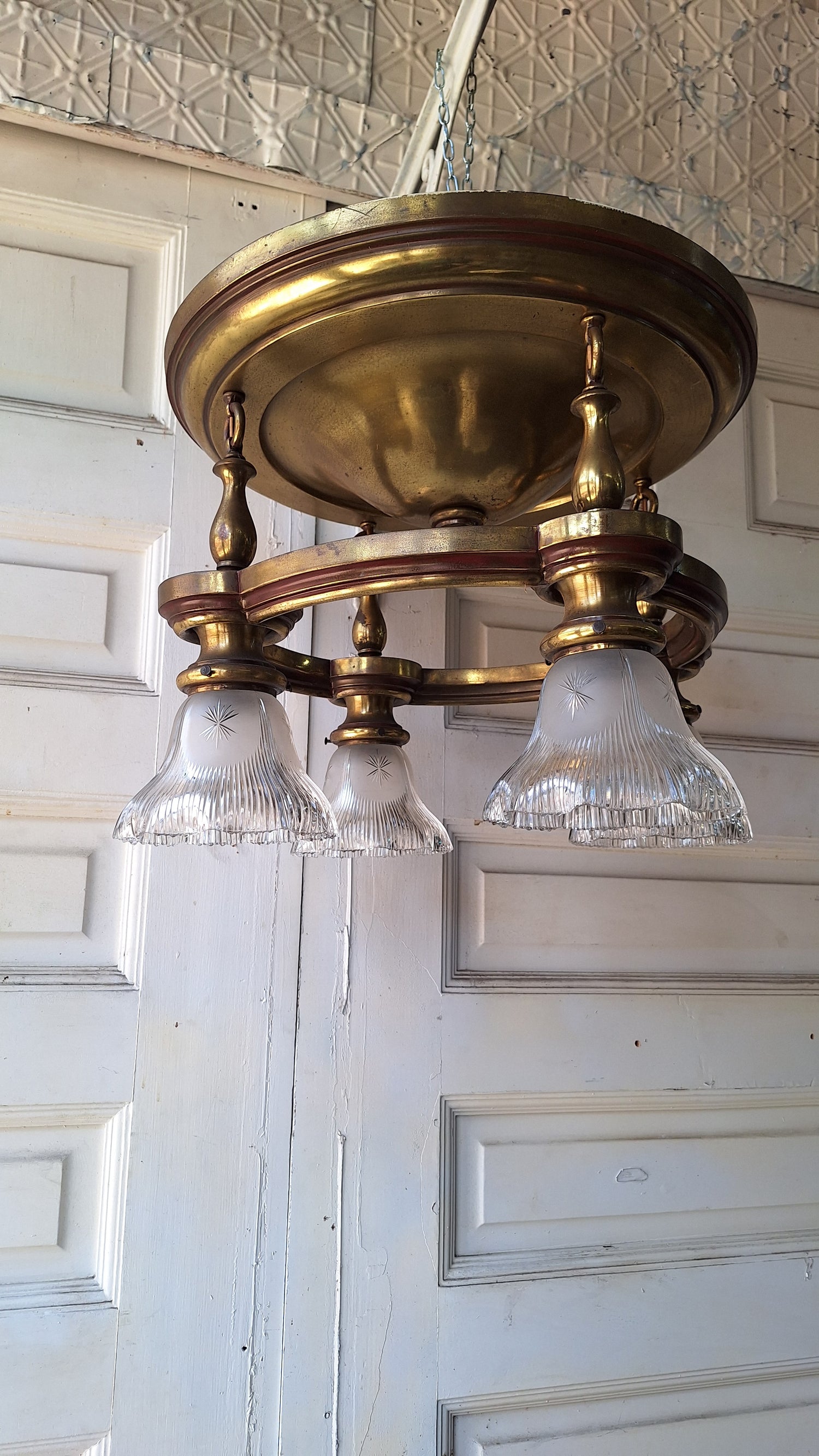 Four Light Antique Brass Pan Light, Brass Ornate Chandelier, Antique Brass Light, Victorian Light, Art Deco Craftsman Lighting 062102