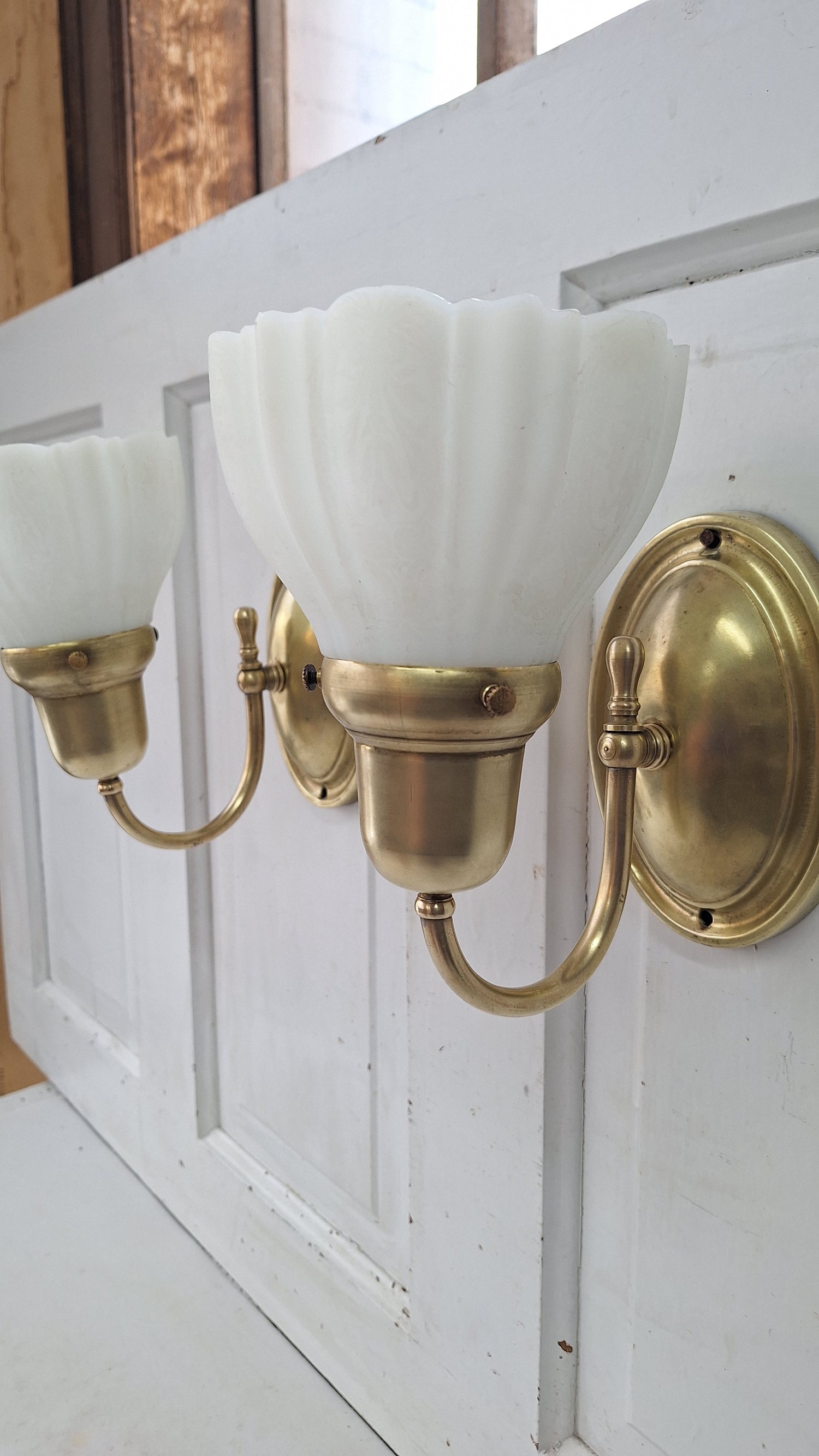 Vintage Brass Wall Sconces: Etched Glass, Architectural Salvage