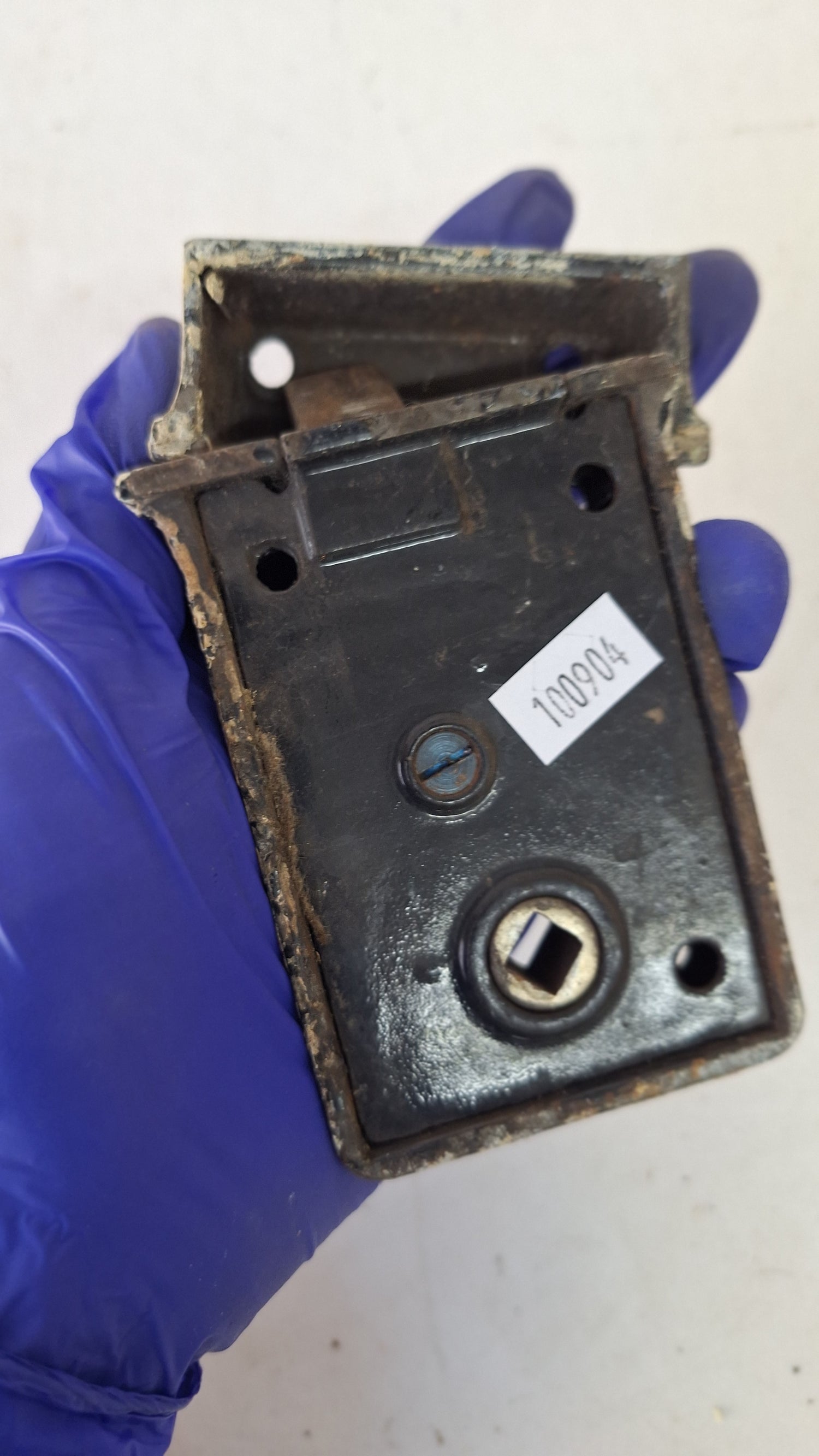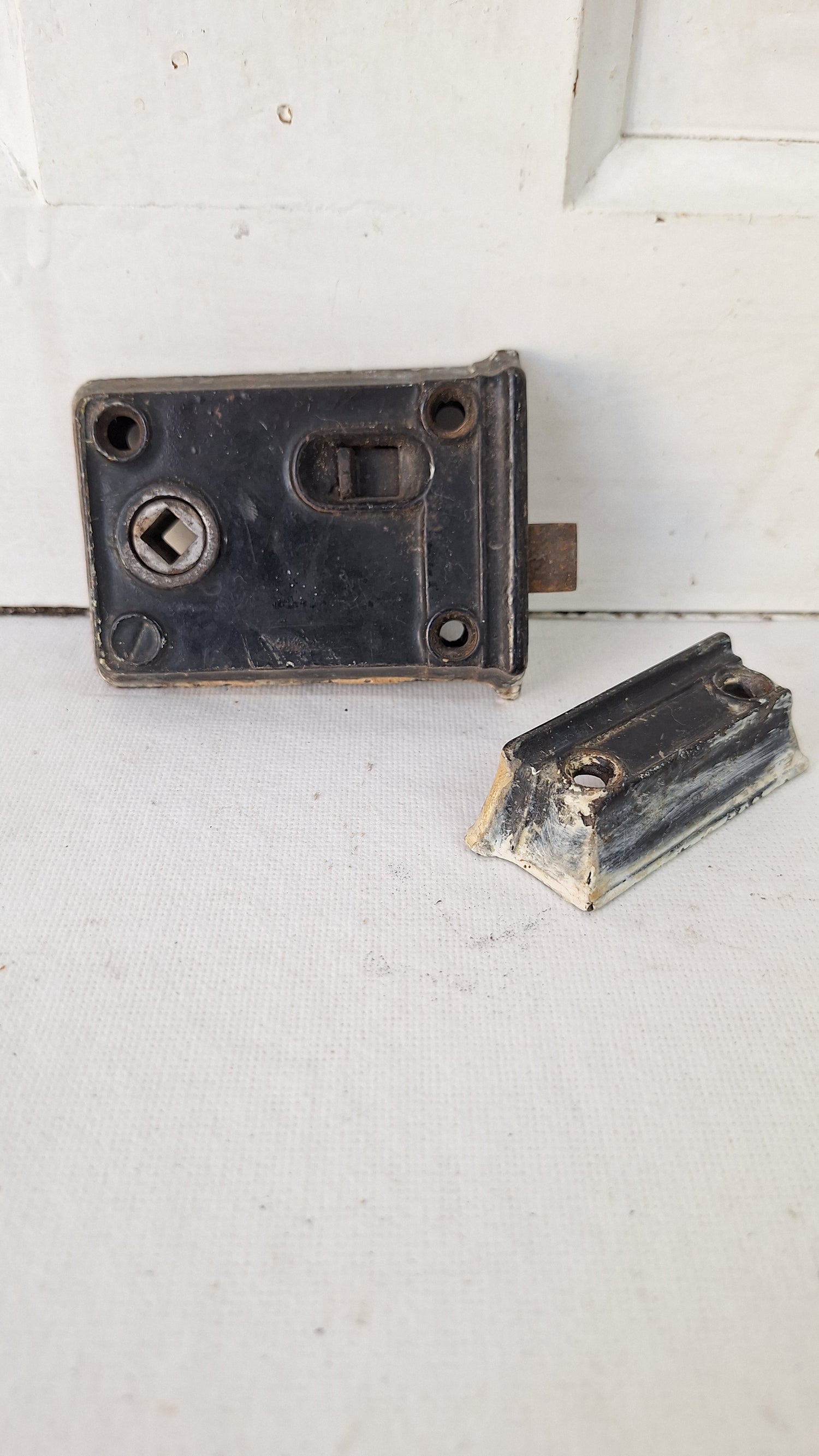 Antique Door Rim Lock and Keeper, Cast Iron Surface Mount Lock with Privacy Latch