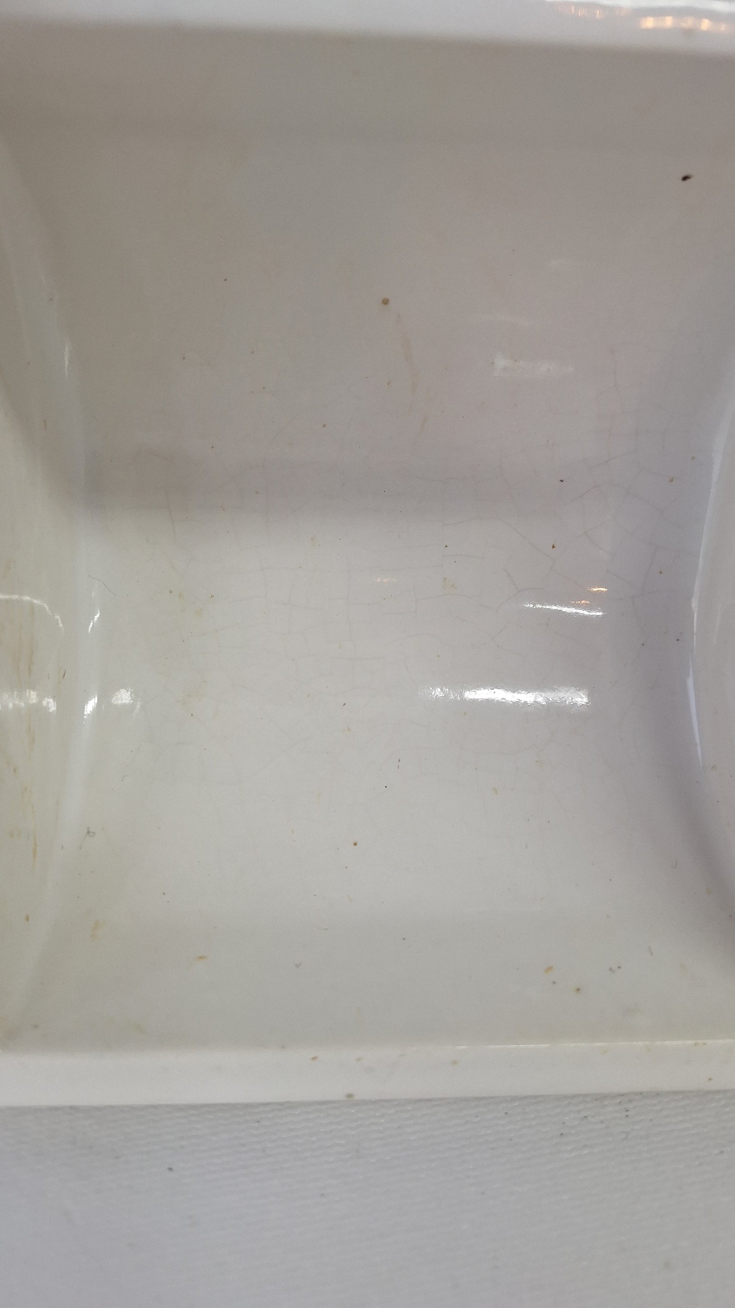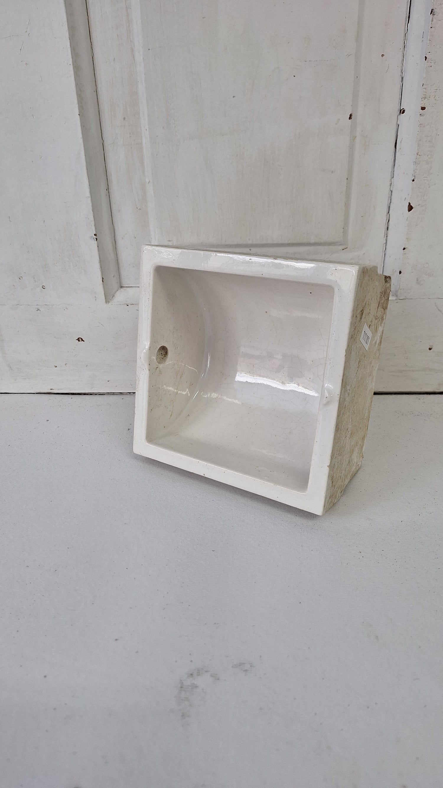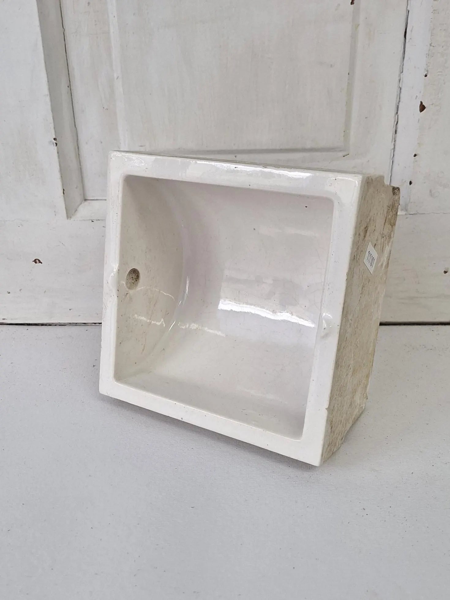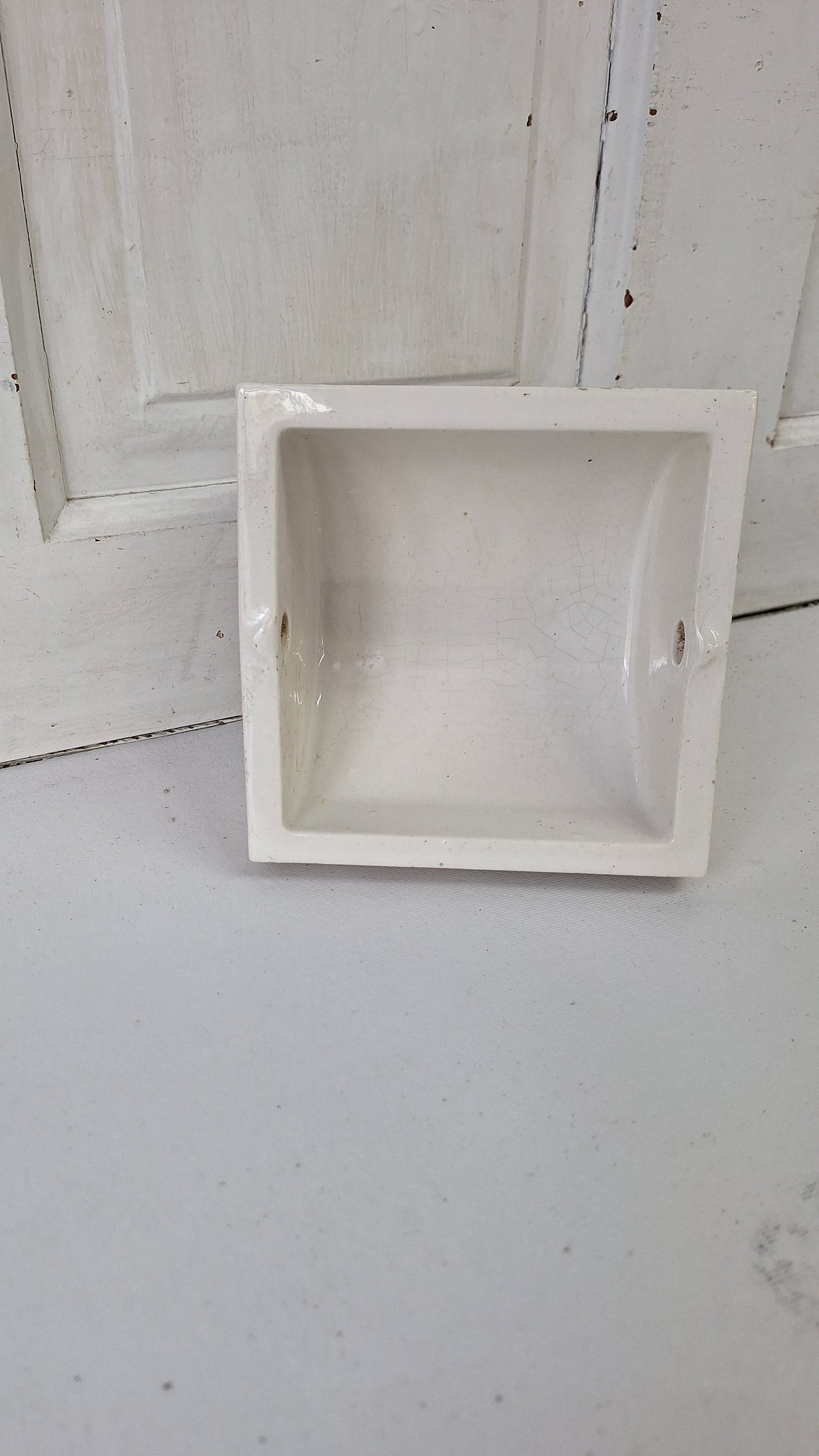 A vintage built-in style, vintage toilet paper holder. This piece is in excellent condition with a replacement, spring loaded rod in the center. The glaze has slight crazing in it as shown and there is very little mortar on the back. Please see all of our pictures for details and dimensions. This item ships free within the continental US.