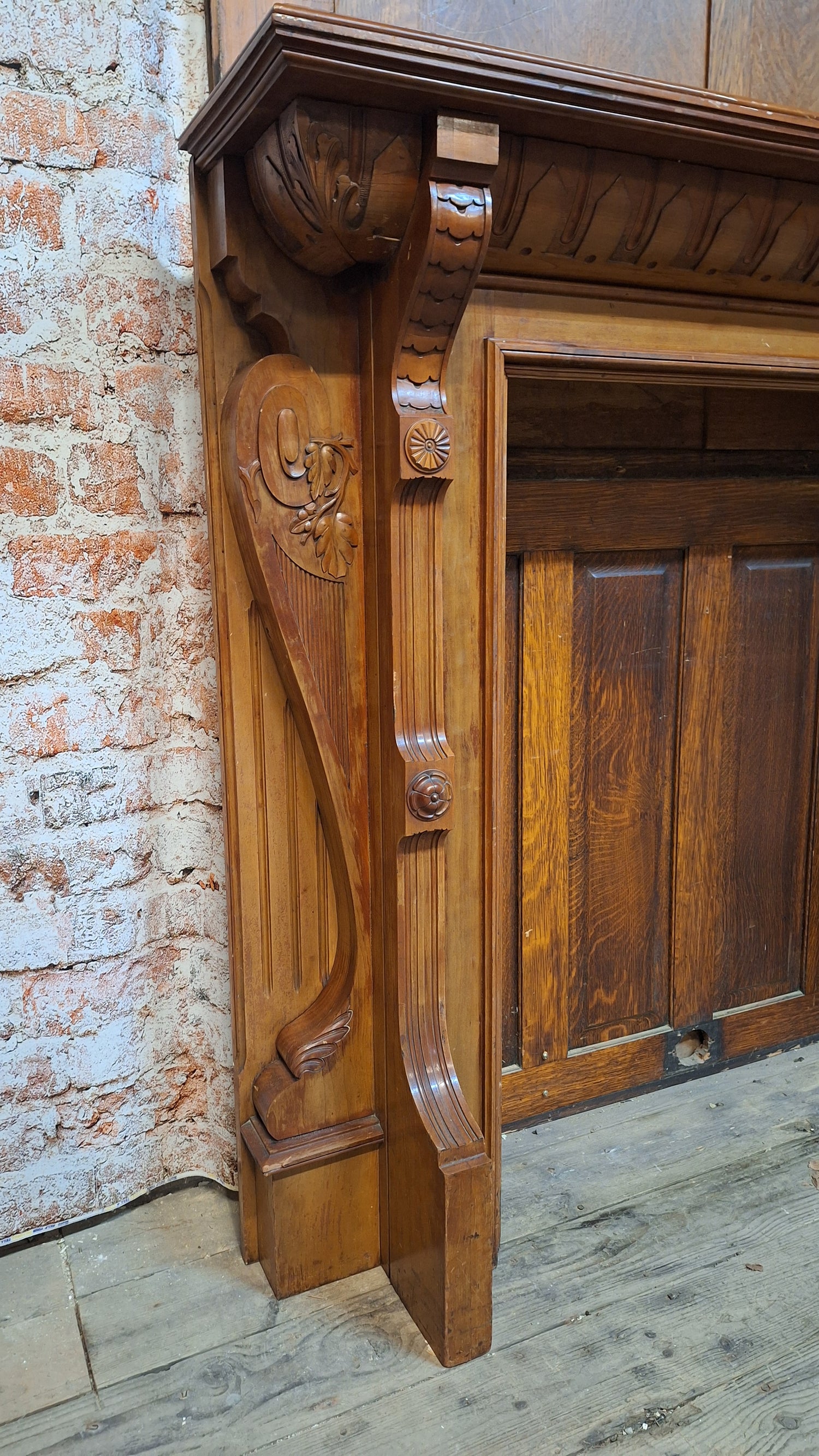 Carved Wood Antique Mantle, Victorian Era Fireplace Surround