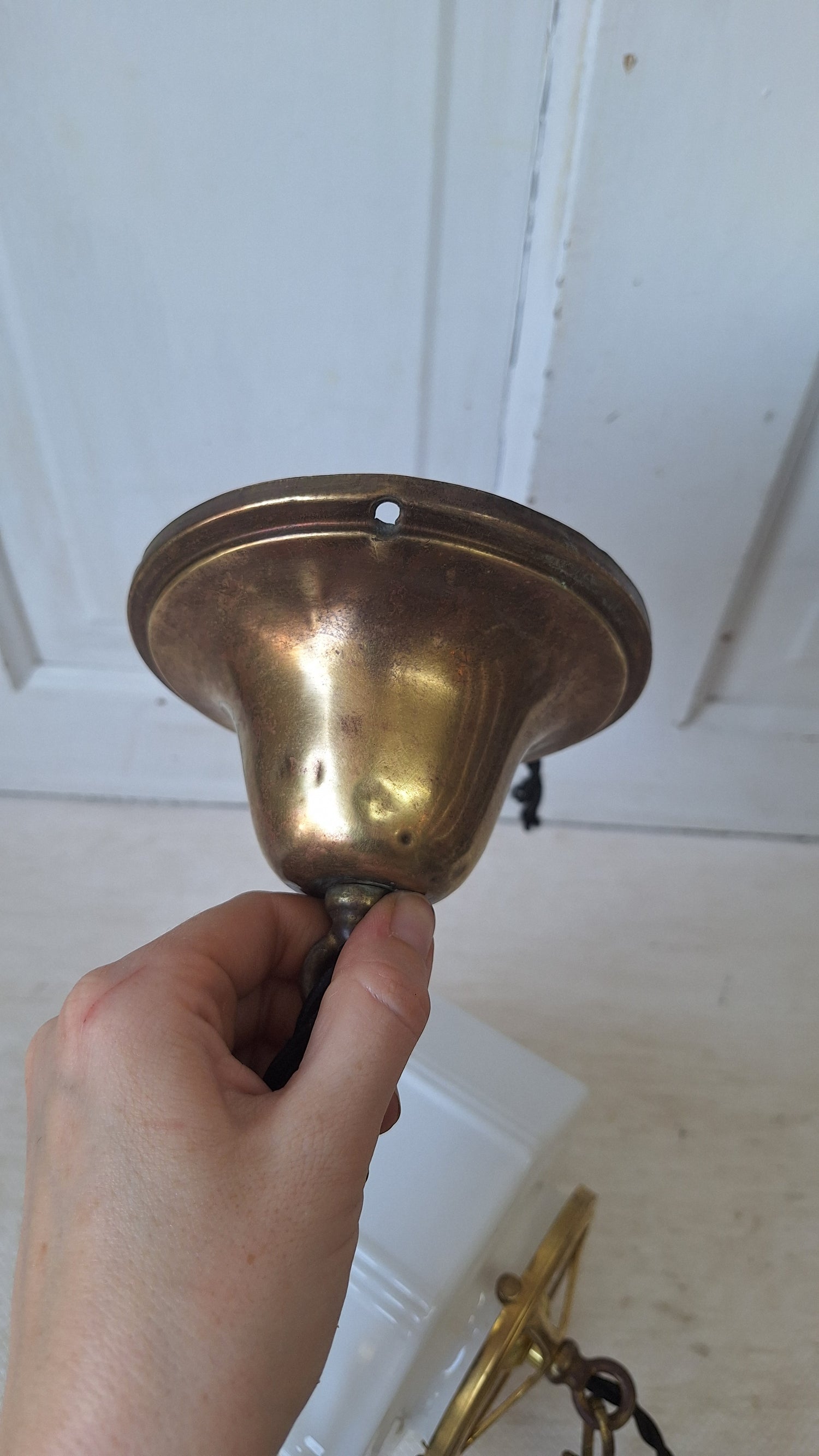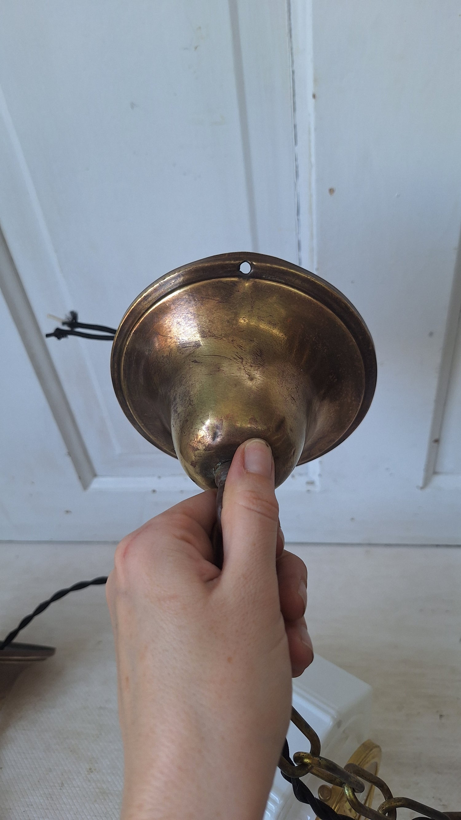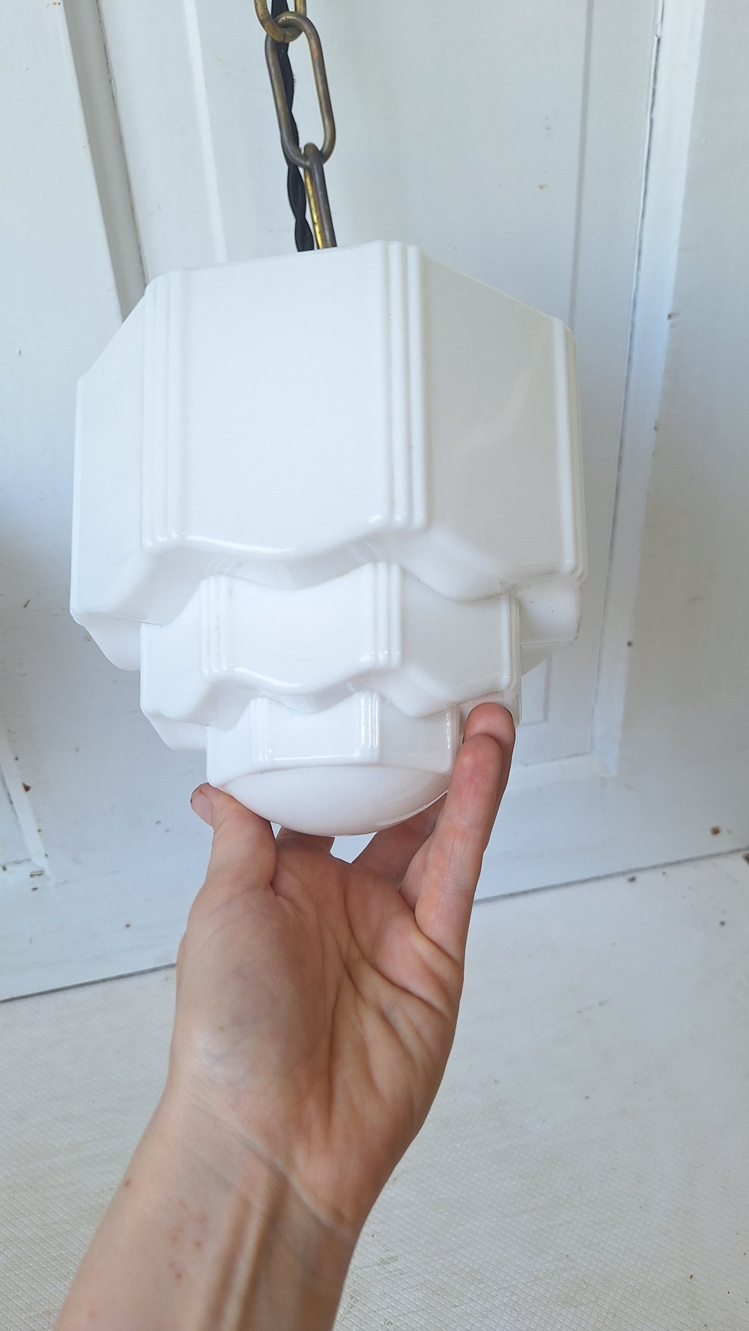Pair Vintage Pendant Art Deco Lights, White Glass and Brass Lights, Kitchen Island Lighting, Architecture Salvage 053001