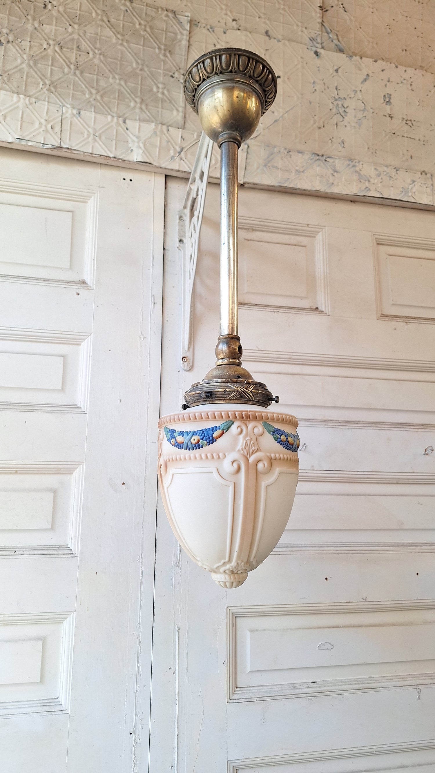 Antique Pendant Porch Light, Acorn Shade Hand Painted Light Fixture