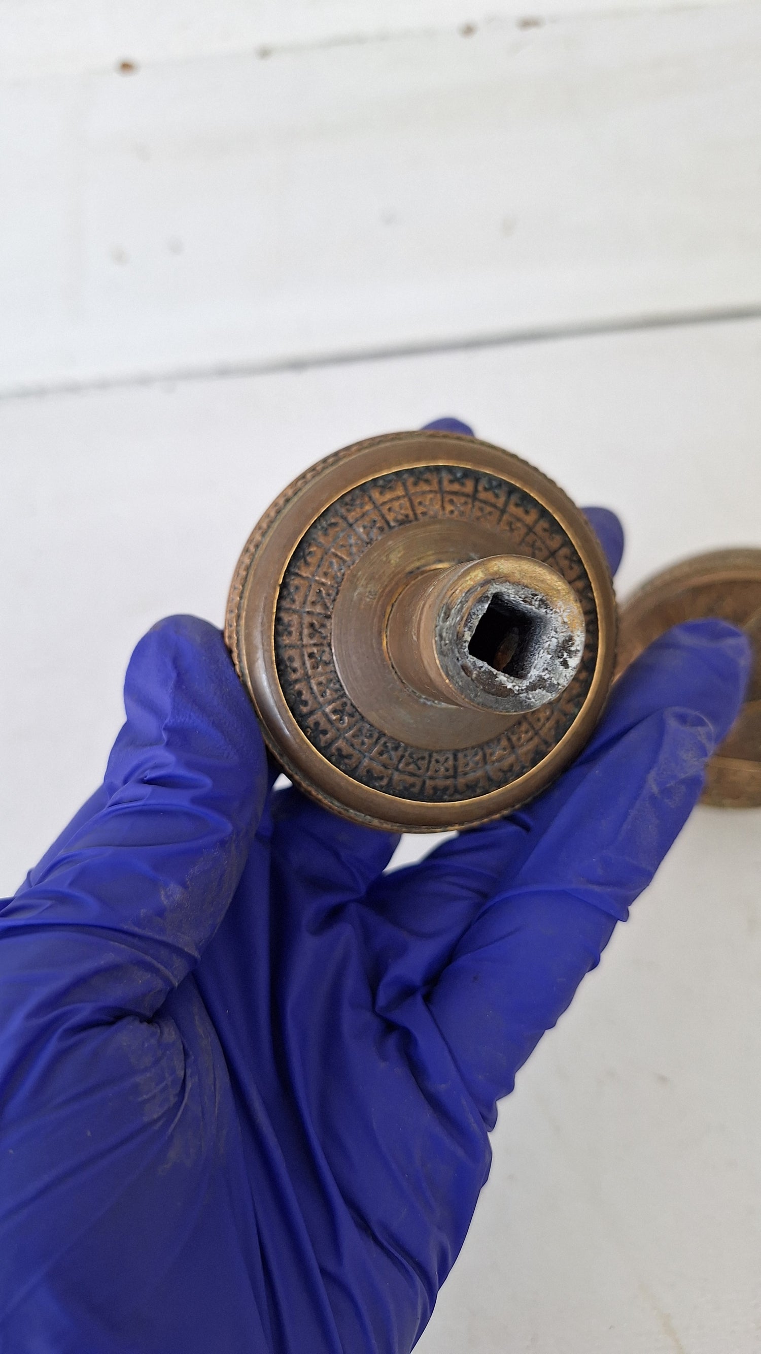 Drum Style Broken Leaf Bronze Doorknobs, Eastlake Style Victorian Door Knob Set