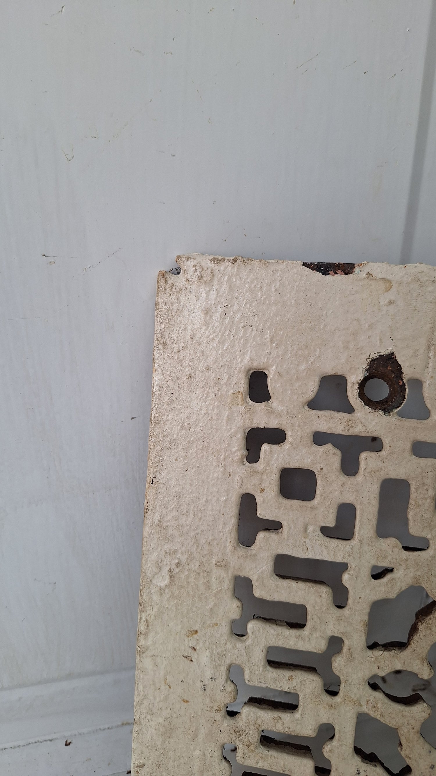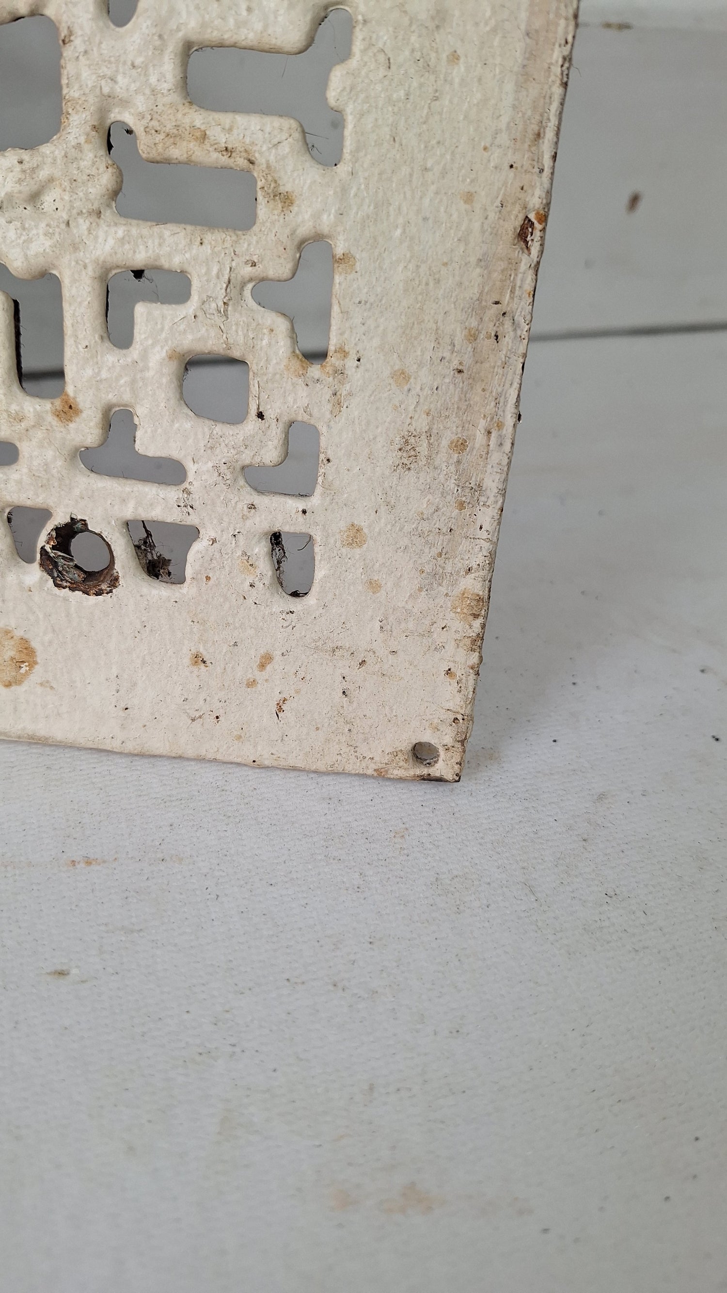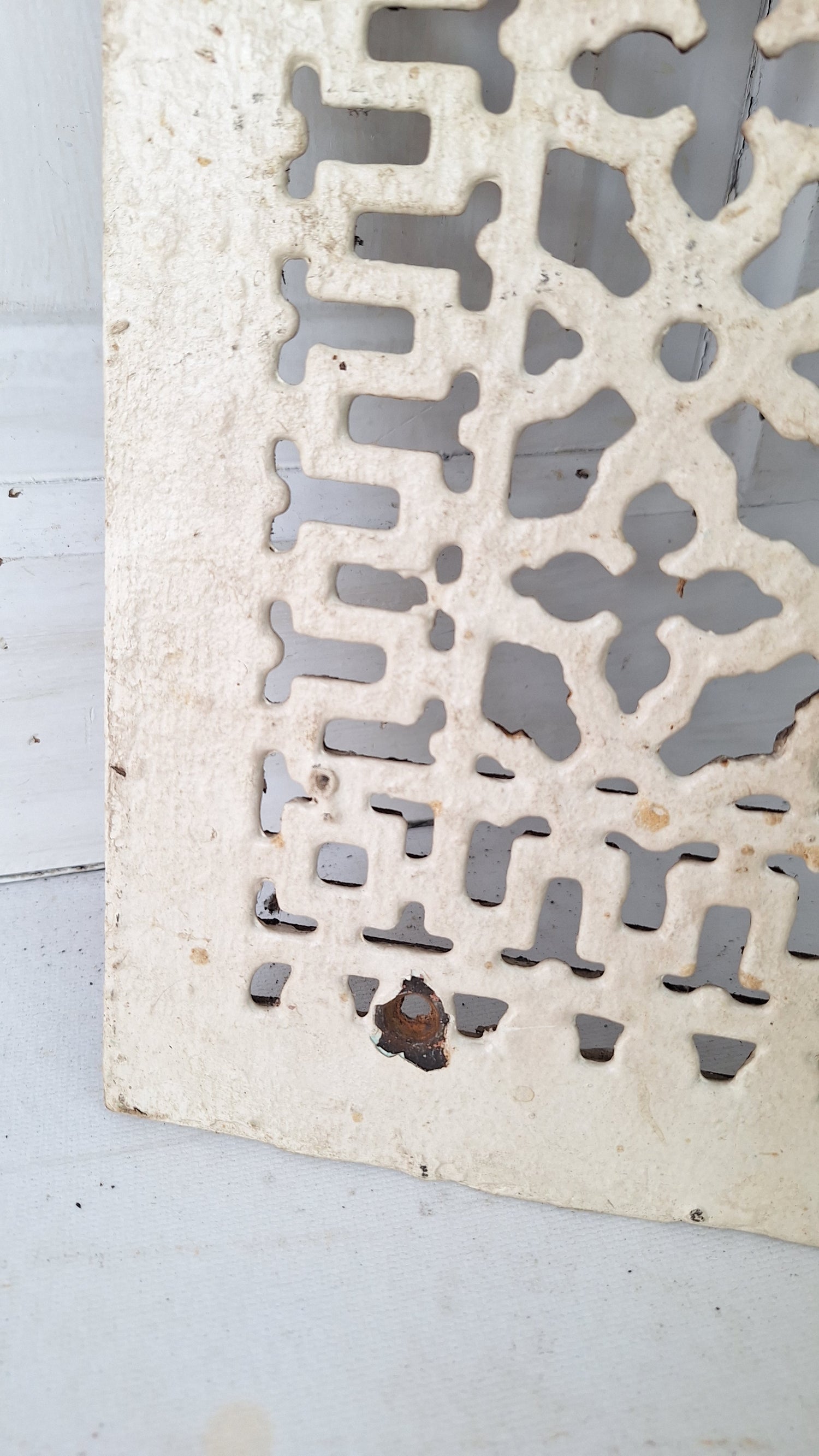 A beautifully design cast iron vent cover from the turn of the century. These are very popular for use as vent covers, wall art, trivets, doormats, and more. They are very durable. This vent cover is in 'as found' condition and has not been cleaned, but is in excellent physical condition.