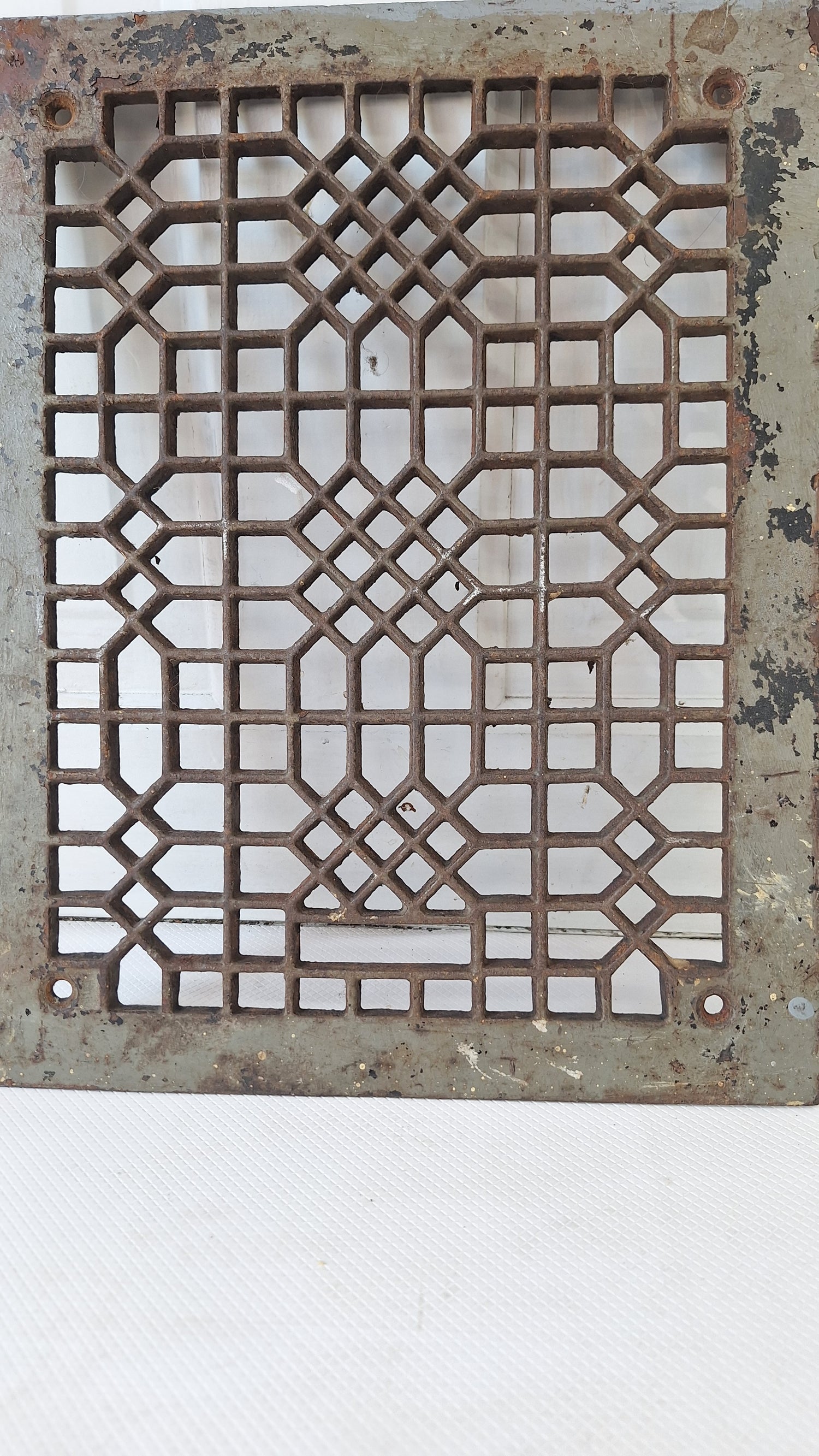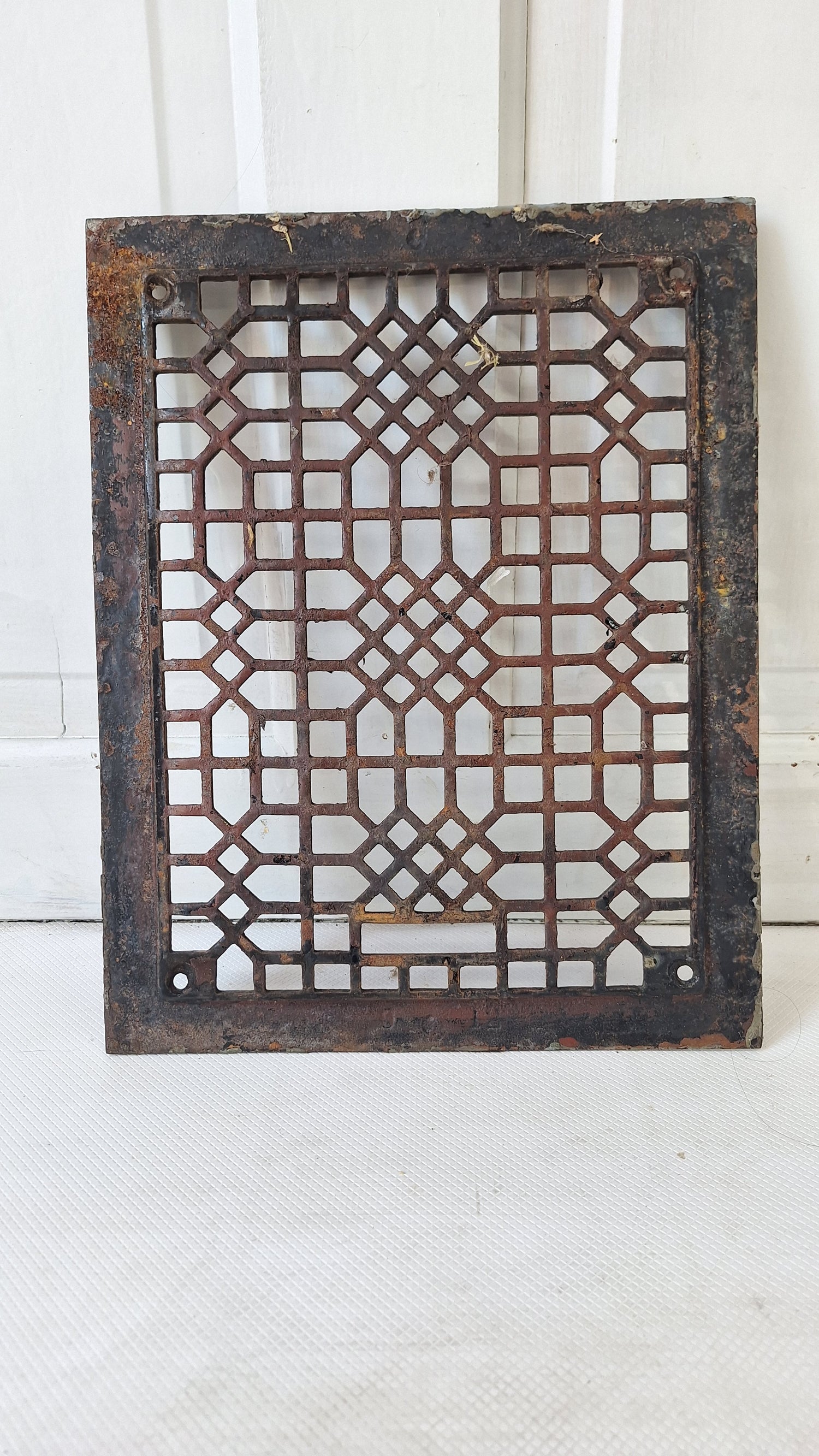 14 x 11 Antique Iron Lattice Pattern Vent Cover, Salvaged Cast Iron Floor Vent Grate
