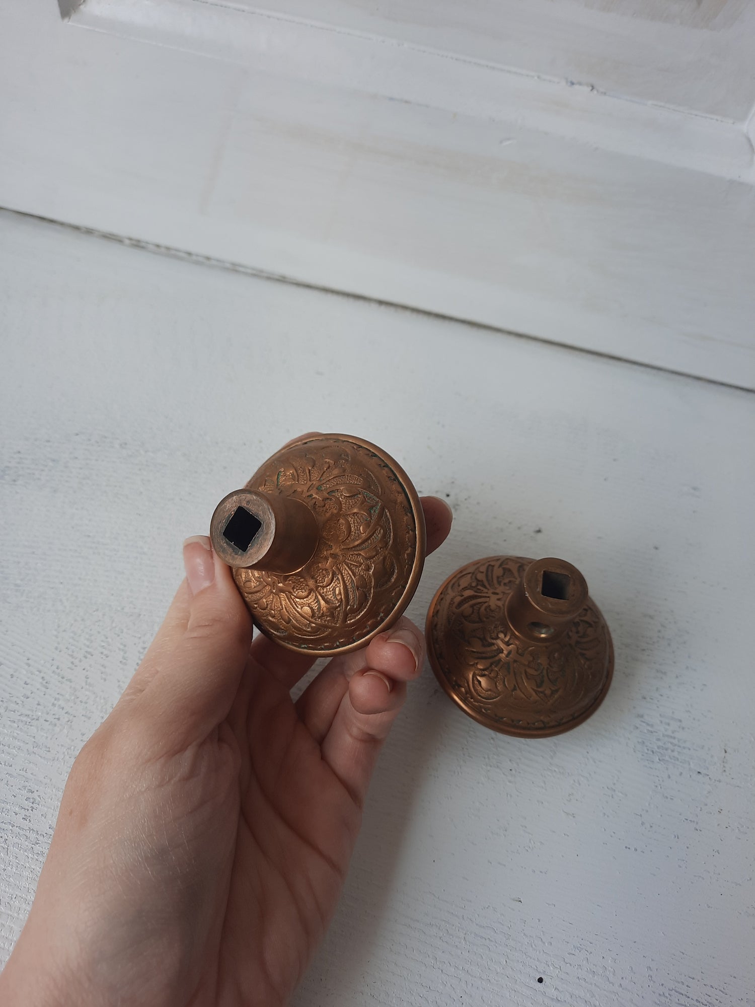 Pair of Solid Bronze Eastlake Doorknobs c. 1880, Victorian Eastlake Bronze Door Knob Set