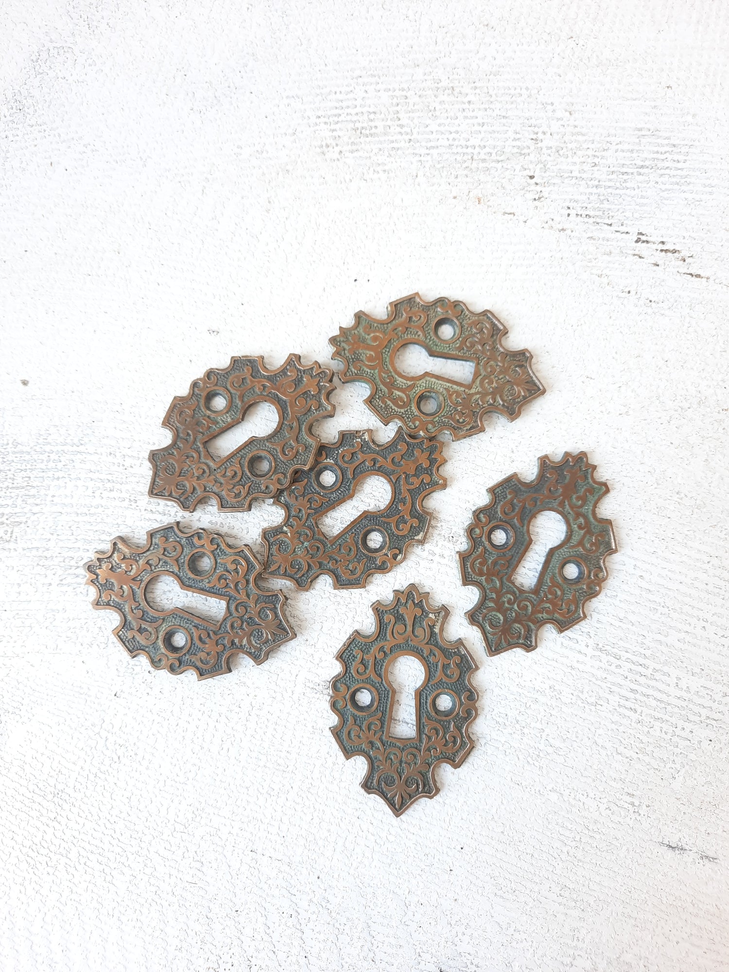 Fancy Bronze Key Hole Escutcheon, Ornate Skeleton Keyhole Plate Cover 072714