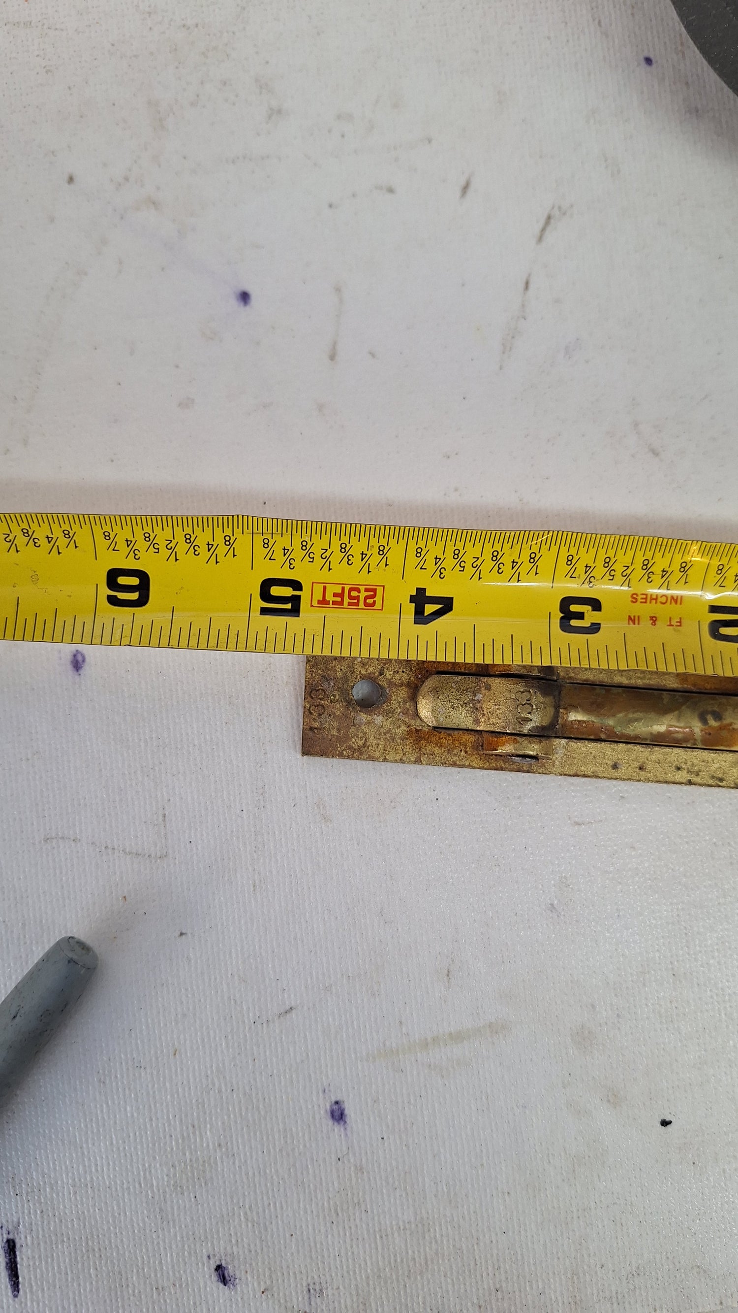A simple, but effective, cast bronze pocket door pull. This mechanism operates by pushing on the top side of the handle which pops out the pull, allowing the used to slide the door out of the wall. It is in good condition with marks in the surface as shown in the photos. It has been cleaned and is ready to install. Please see all of our pictures for details and measurements. This item ships free within the US.