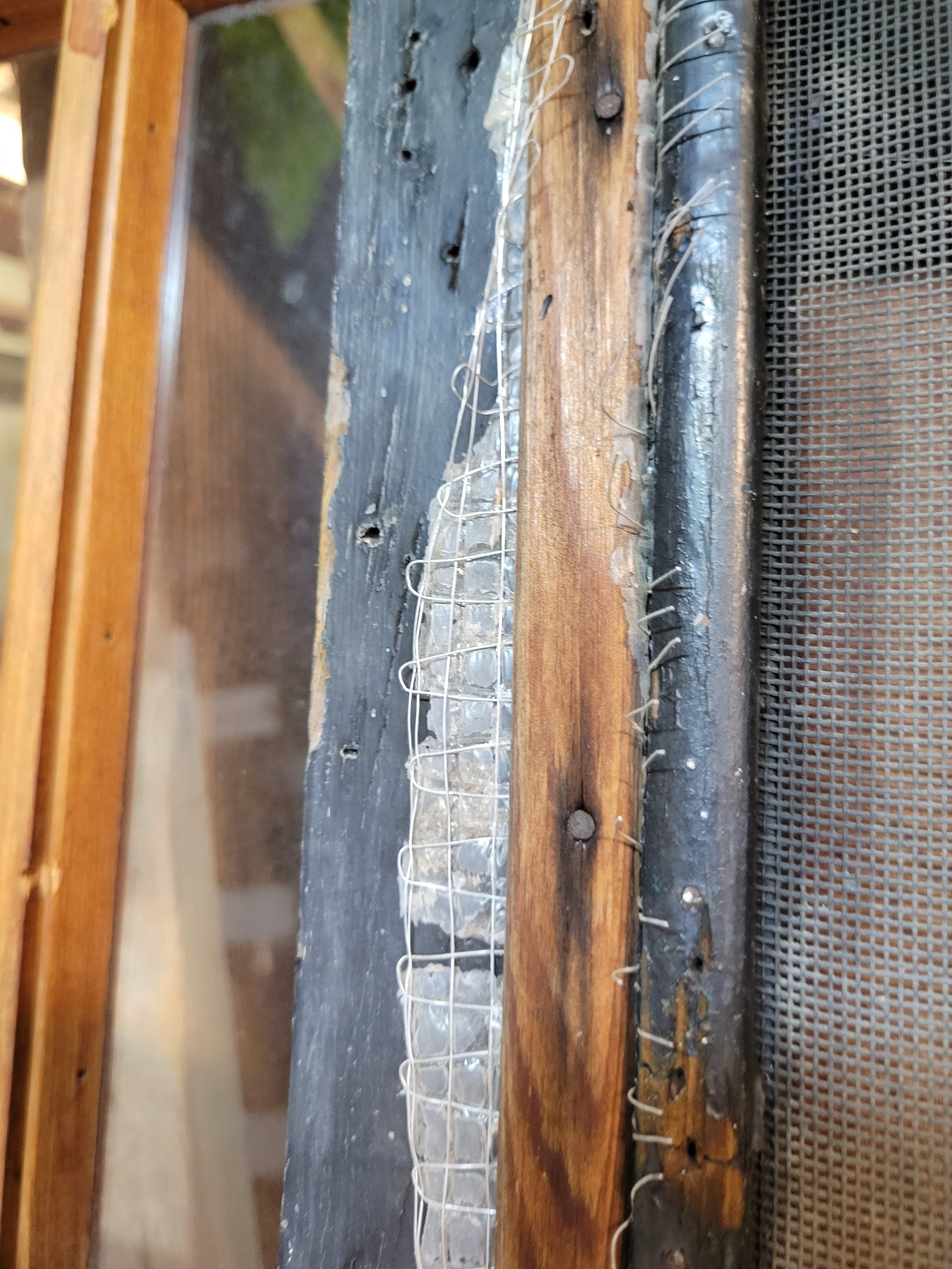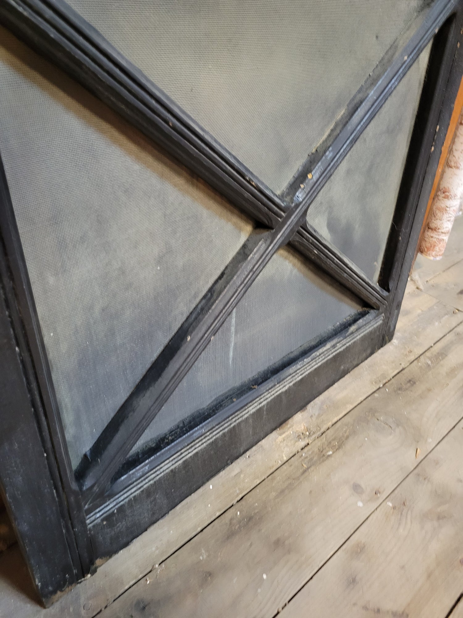 Fancy Antique Screen Door, Salvaged Farmhouse Screen Door with Gingerbread Woodwork 092704