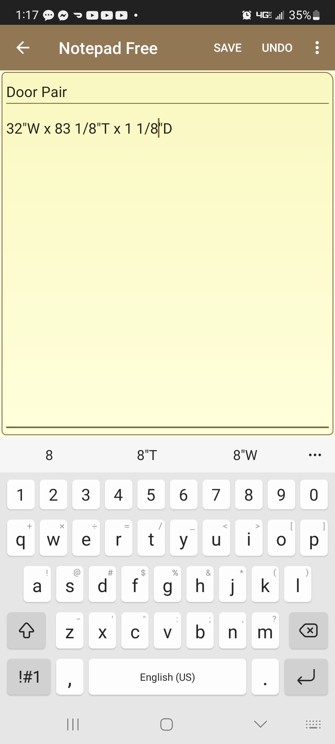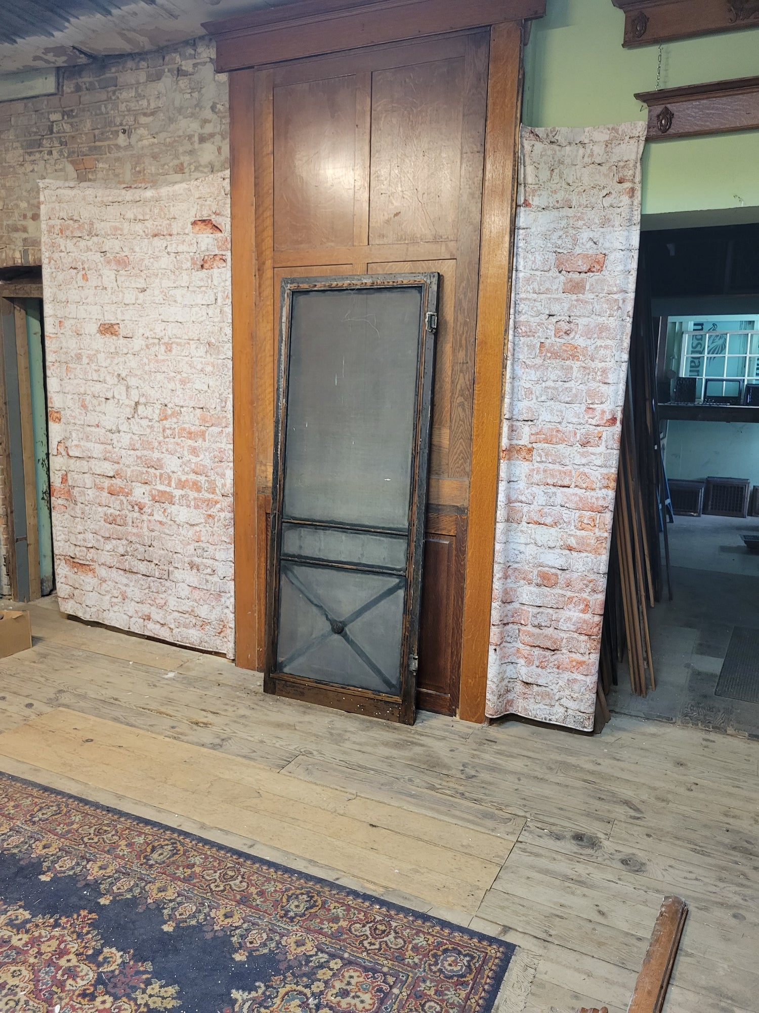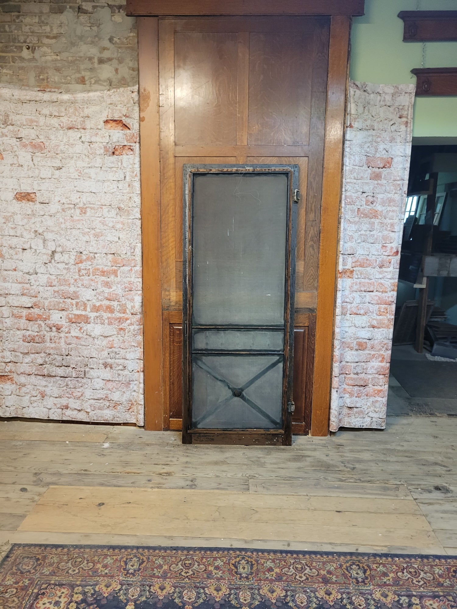 This lovely historic wood screen door measures 32" wide by 83 1/8" tall by 1 1/8" thick. This item ships free within the continental US. Please allow 2-3 weeks processing time. It can also be picked up from our warehouse for a discounted price.