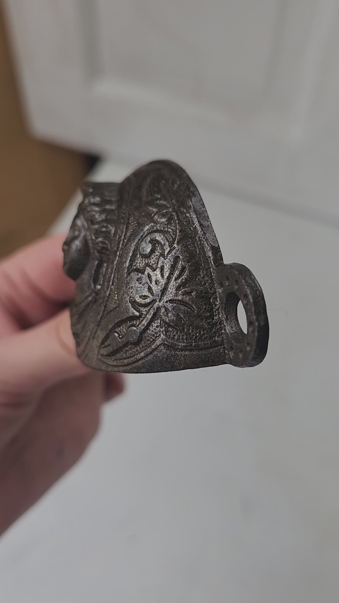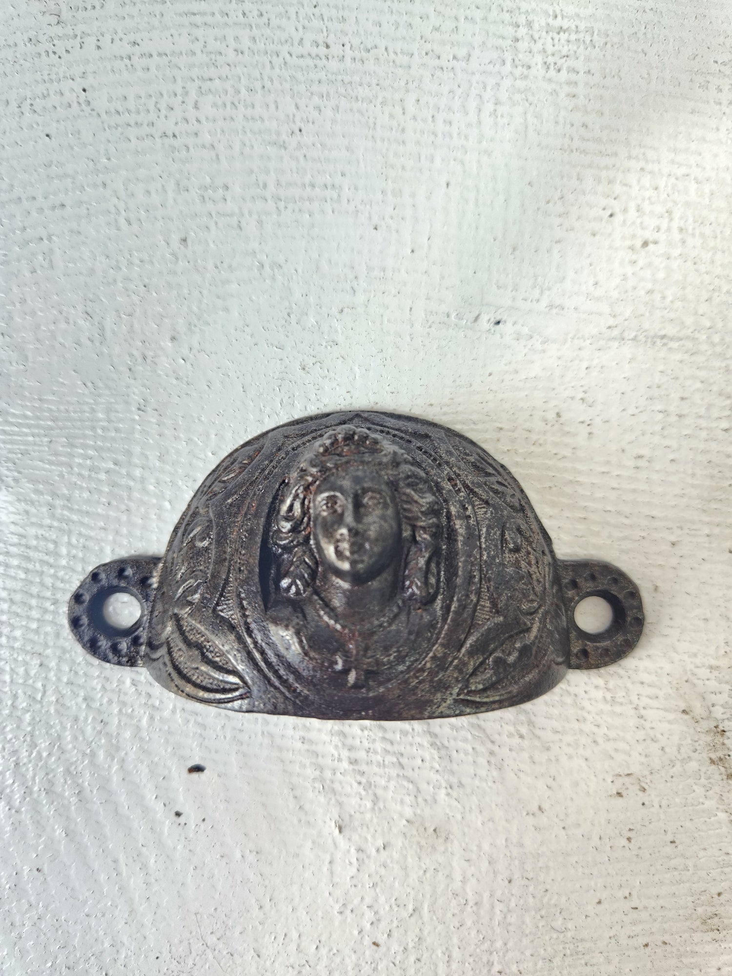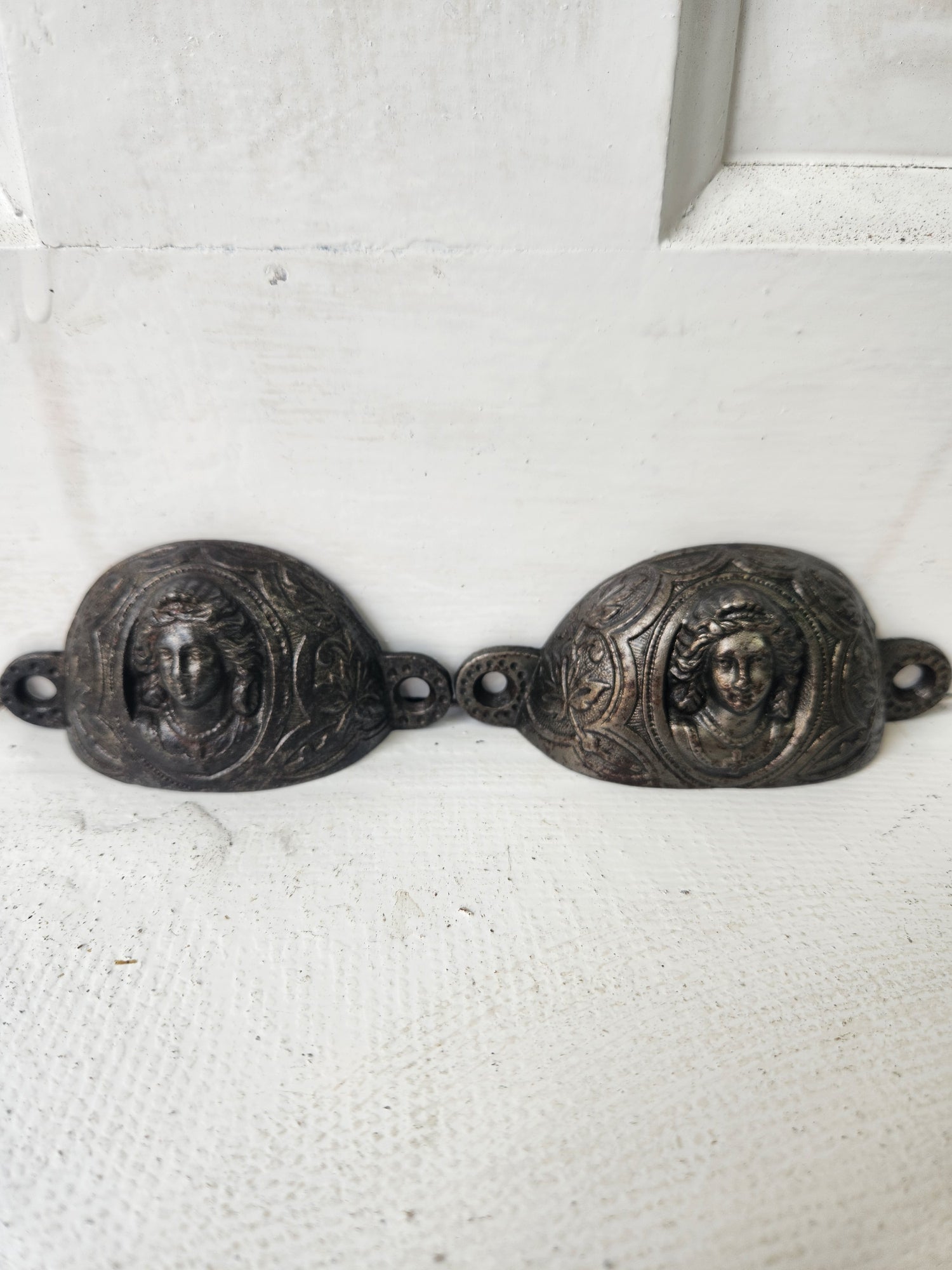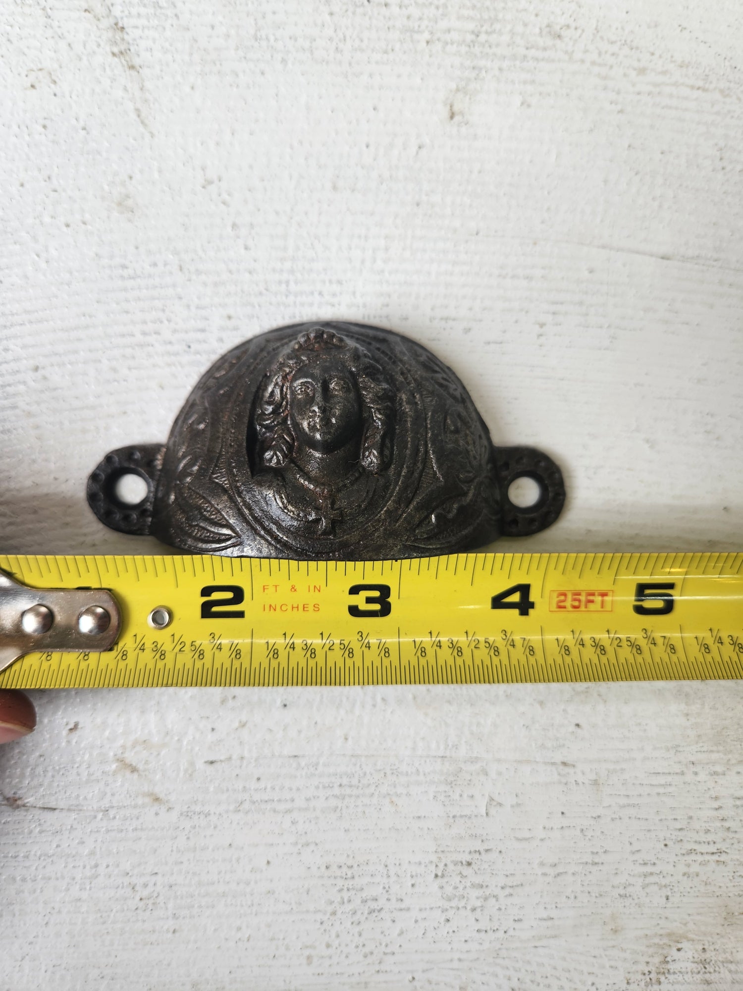Antique Jenny Lind Iron Drawer Pulls, Antique Cast Iron Furniture Handles with Woman's Face, 091605