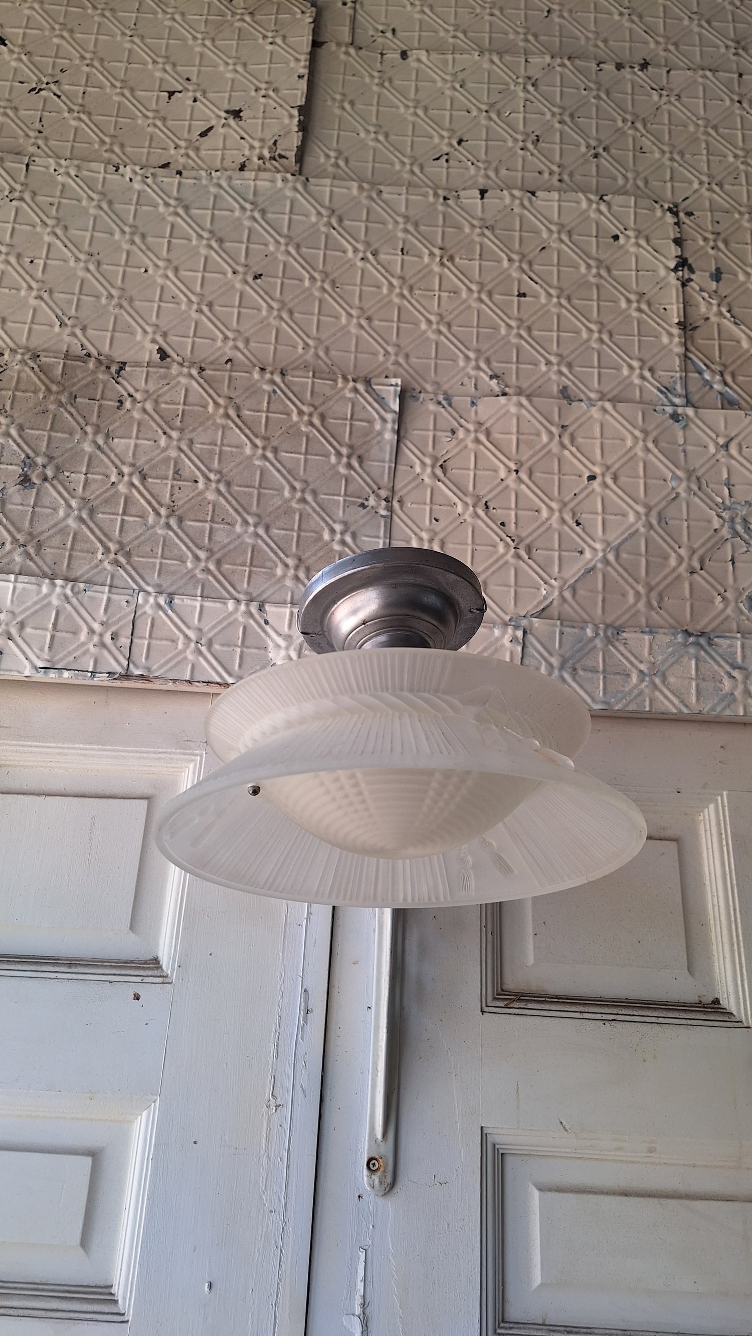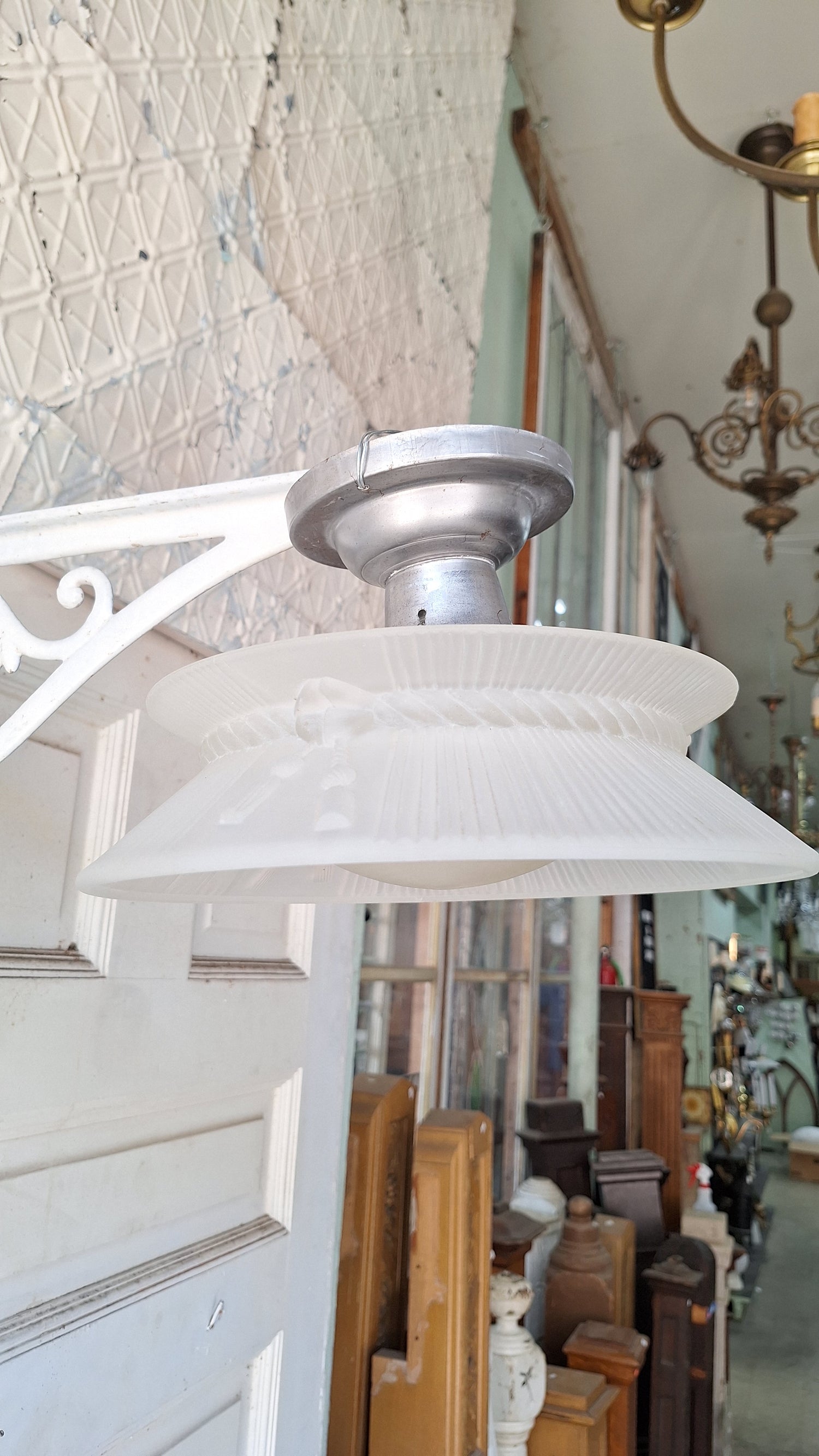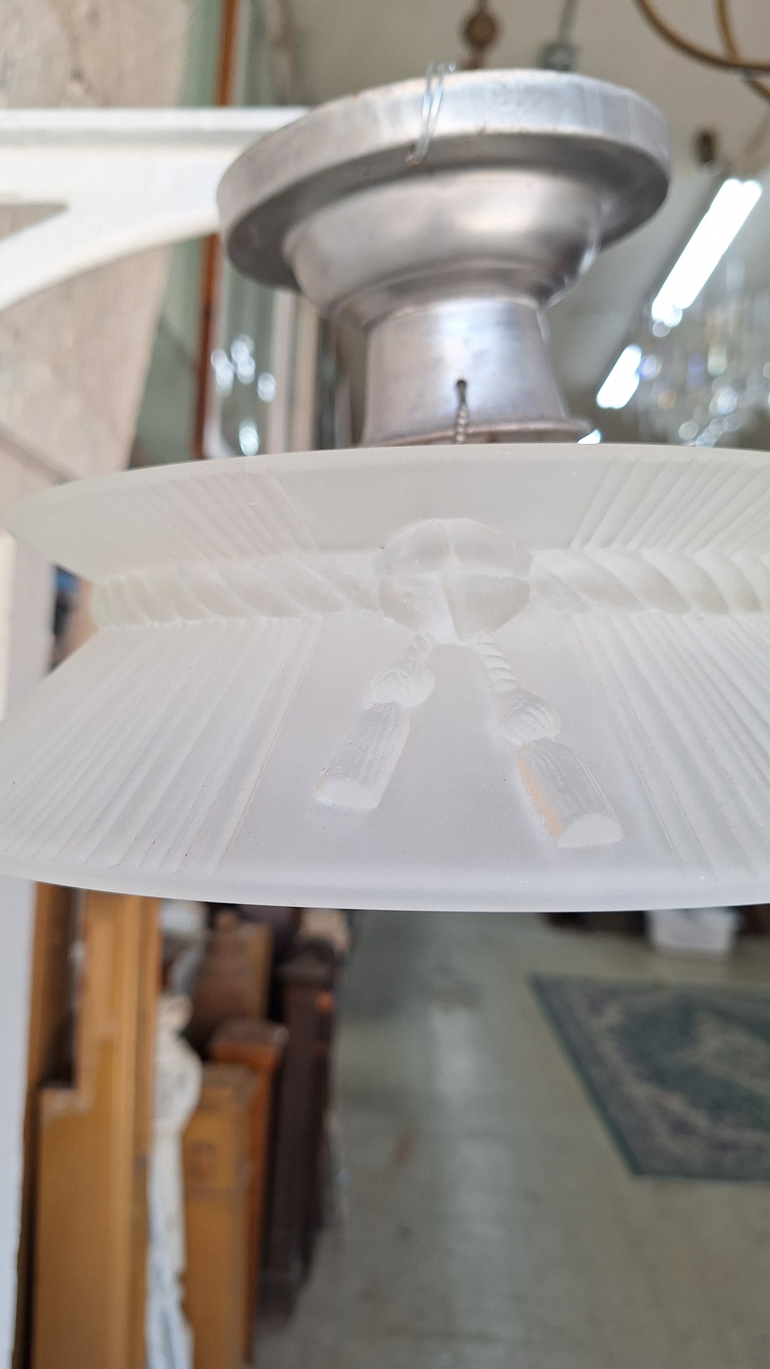 Molded Glass Shade Three Chain Art Deco Light, Semi Flush Antique Light Shade, Etched Glass Vintage Shade, Architectural Salvage 062101
