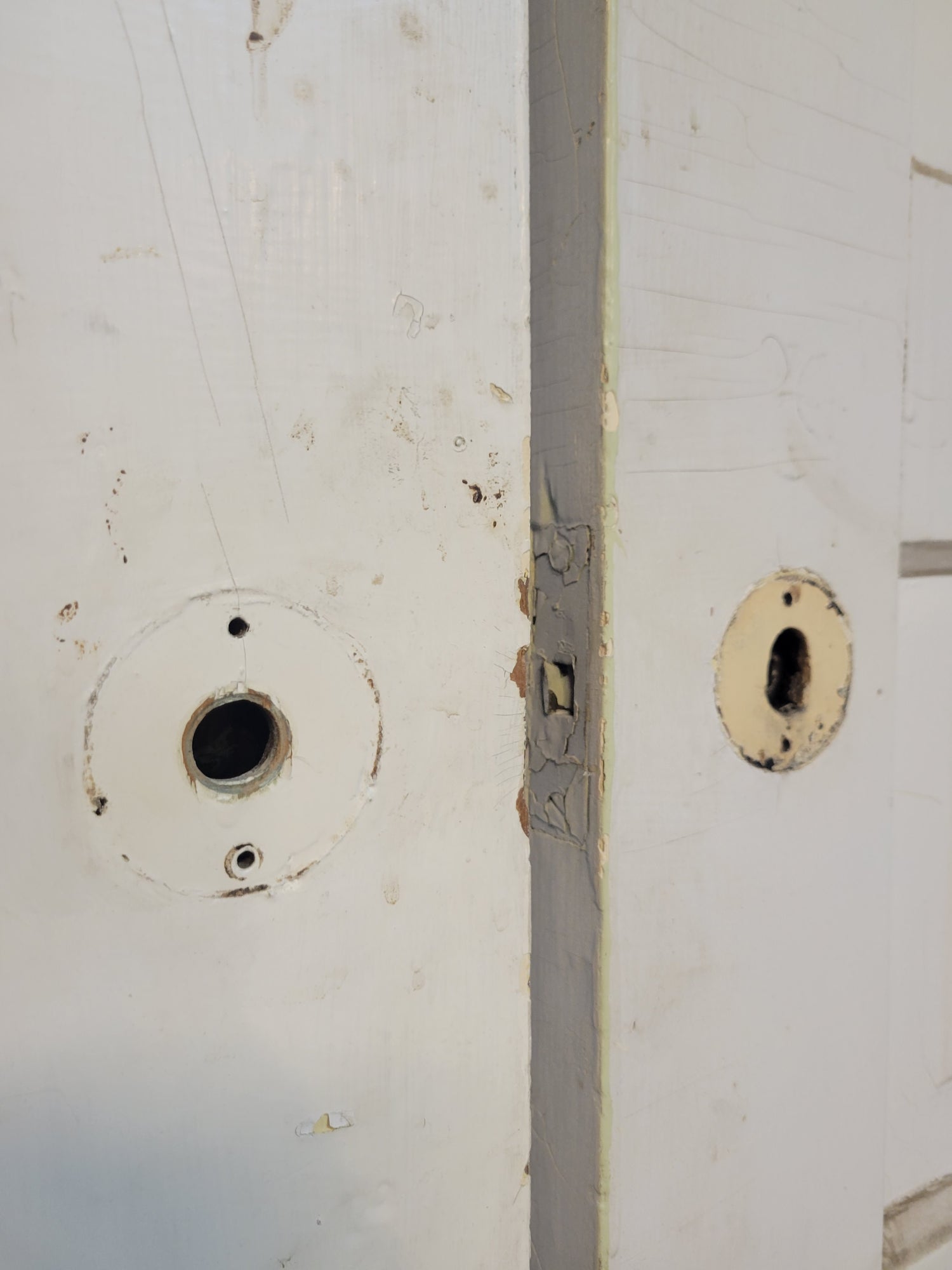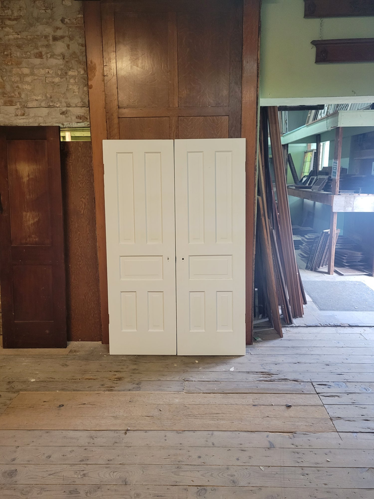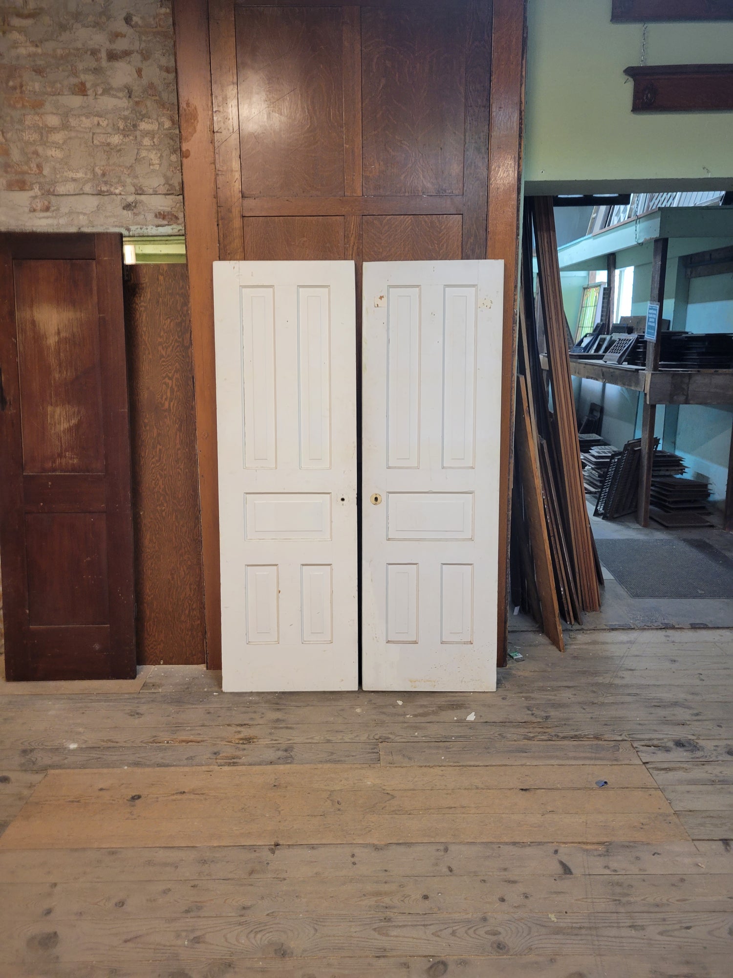 Pair of Antique White Five Panel Doors, Narrow Set of Solid Wood Double Doors #1