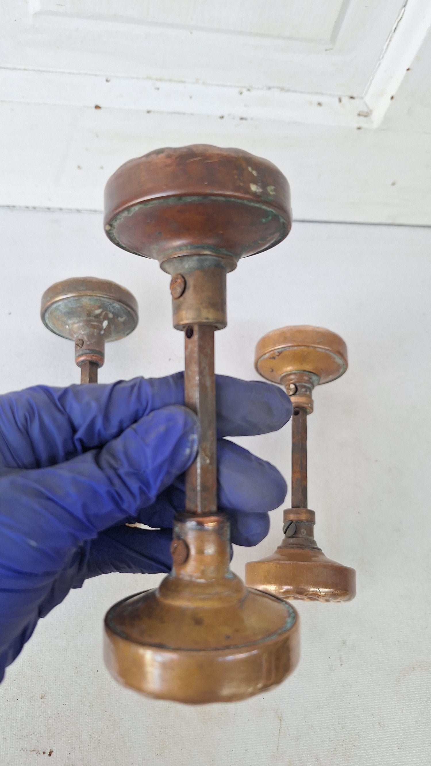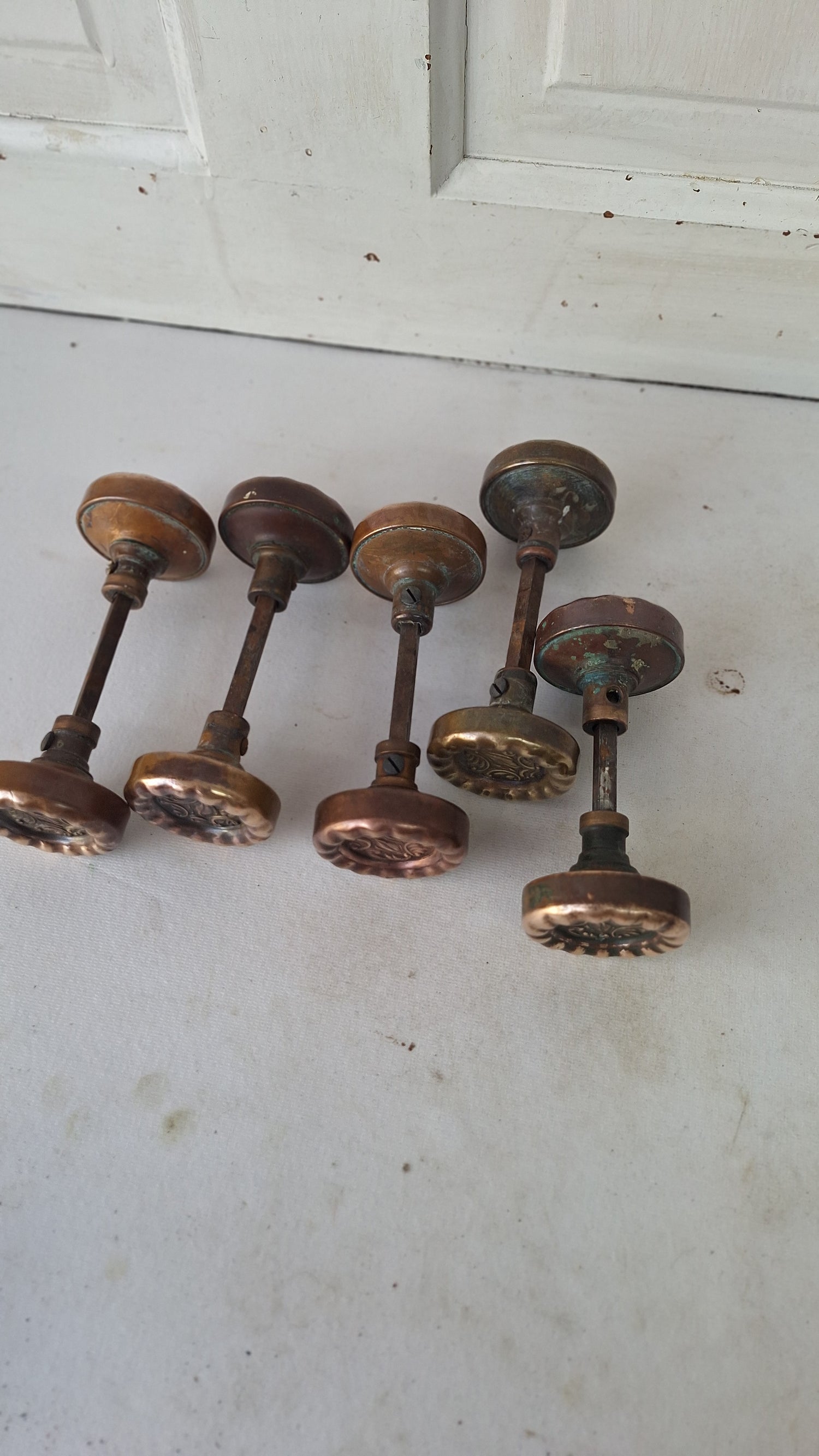 Antique Eulalia Pattern Doorknob Set, Victorian Era Bronze Door Knobs