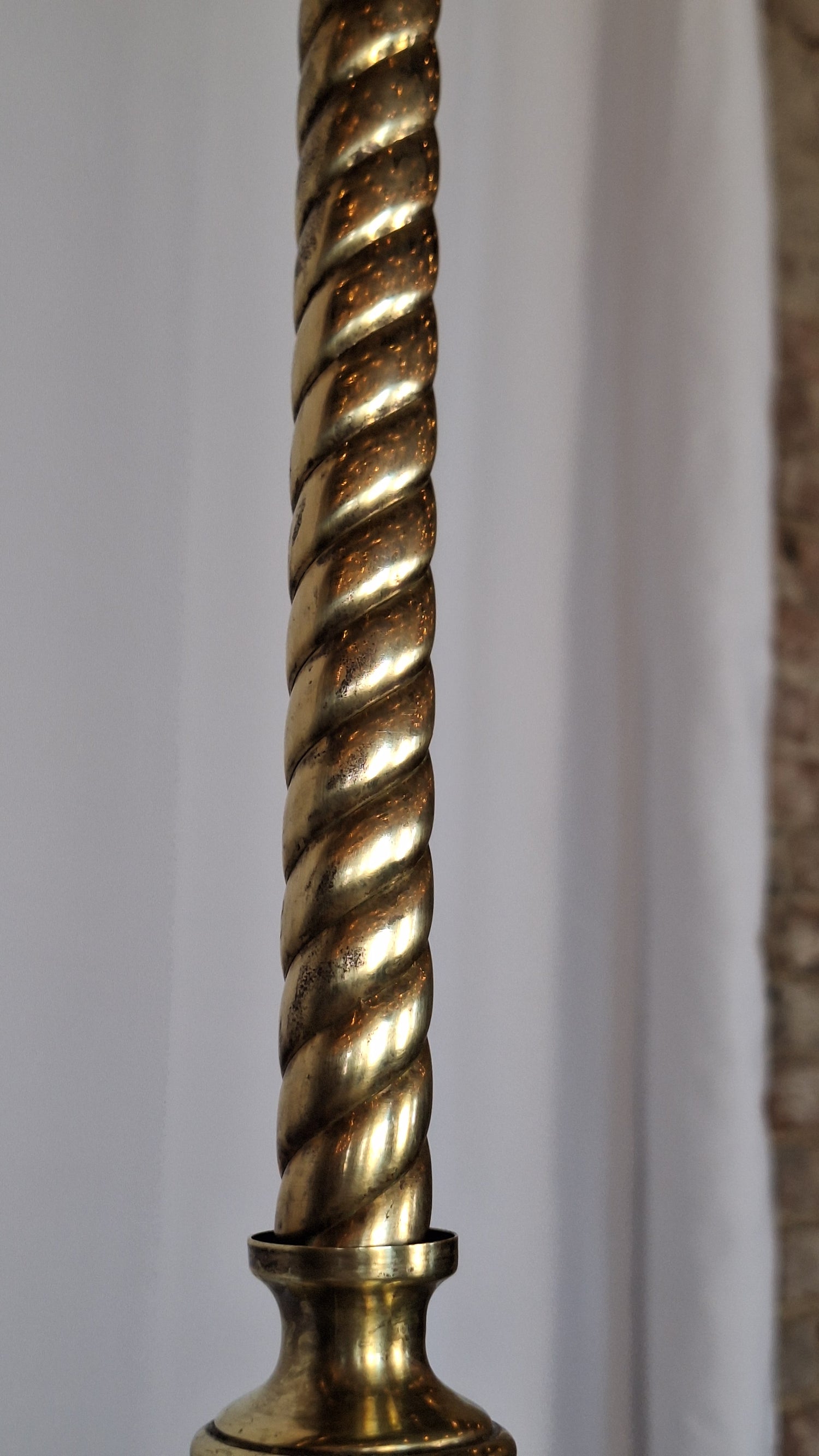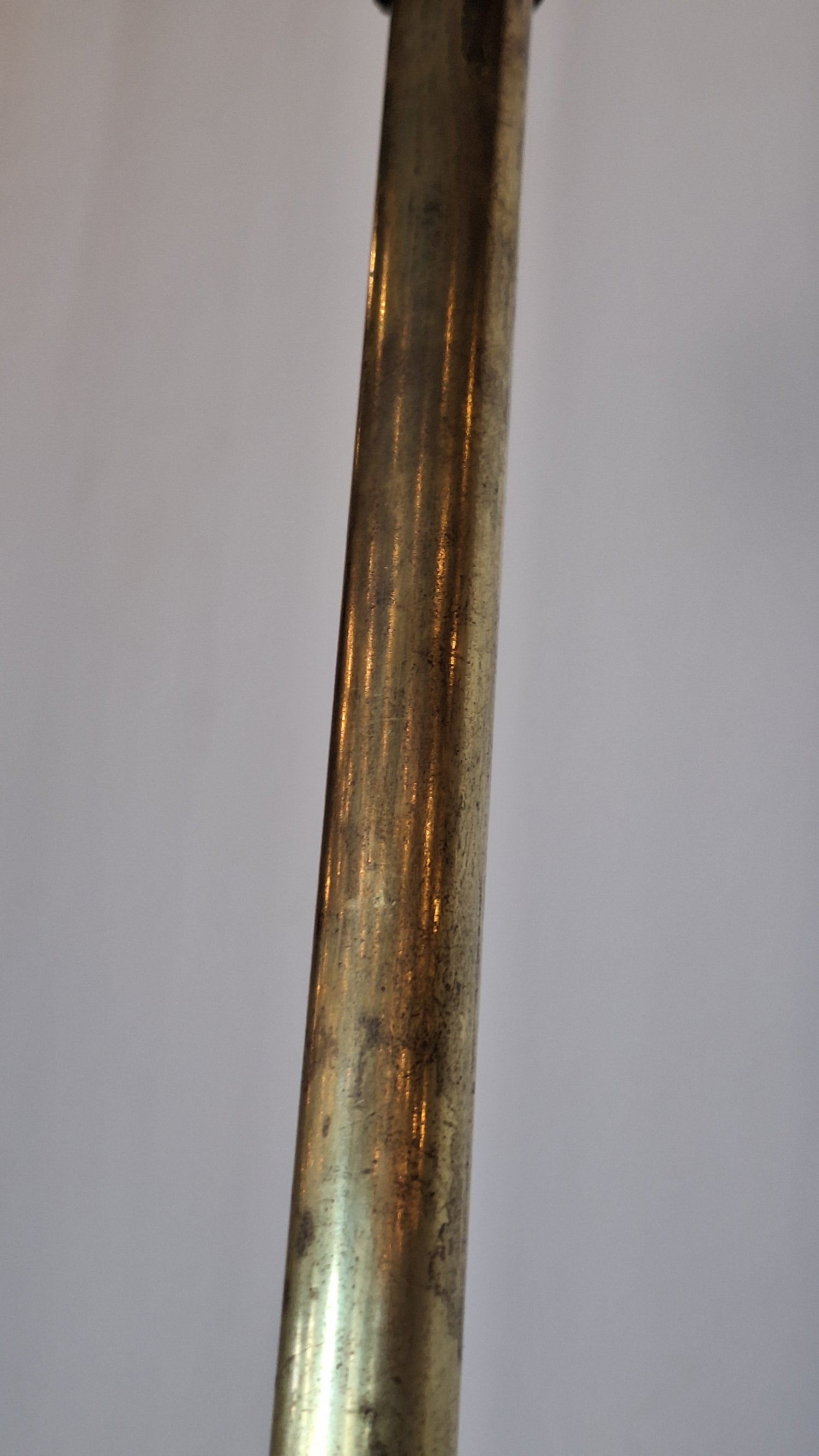 A delicate Victorian era light with a brass body, looped arms, and delicate glass shades. This is a very early style light and has been converted from an original gas burning light to an electric light.