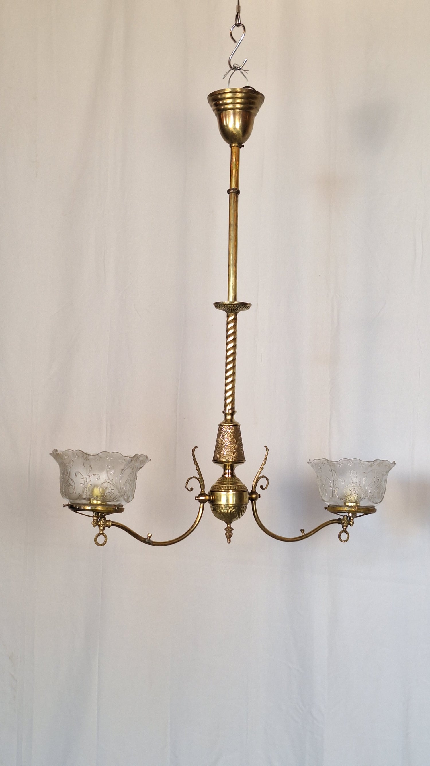 Gas Coverted Antique Chandelier, Victorian Gas Light