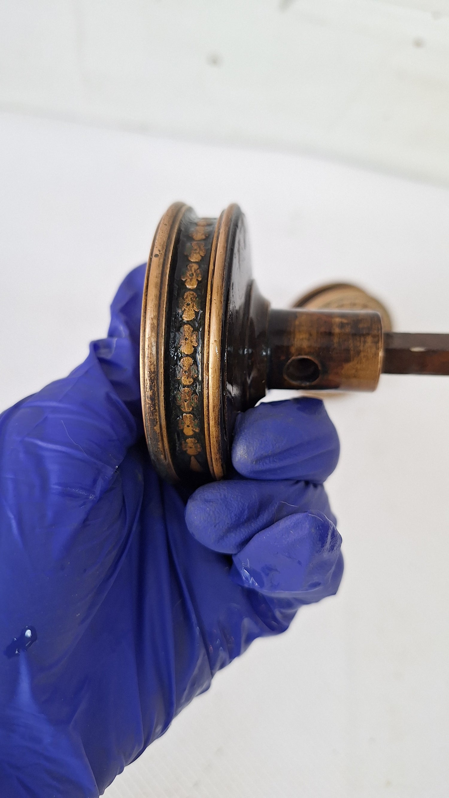 Gothic Pattern Corbin Doorknob Set, Entry and Passage Size, Drum Style Knob, Solid Brass Doorknob, Eastlake Bronze, Compass Rose 082904