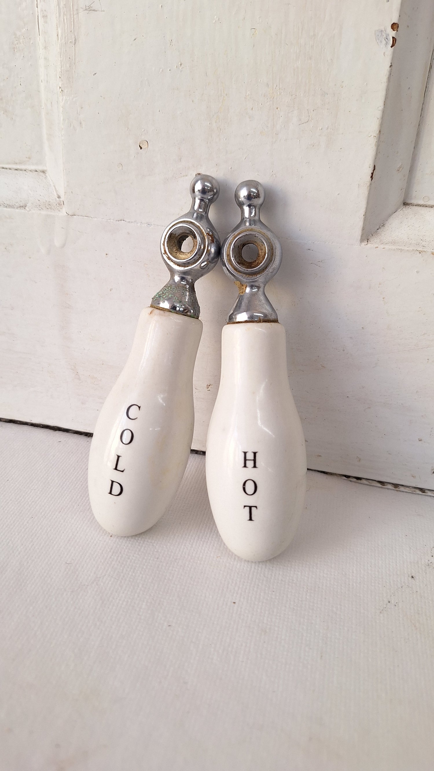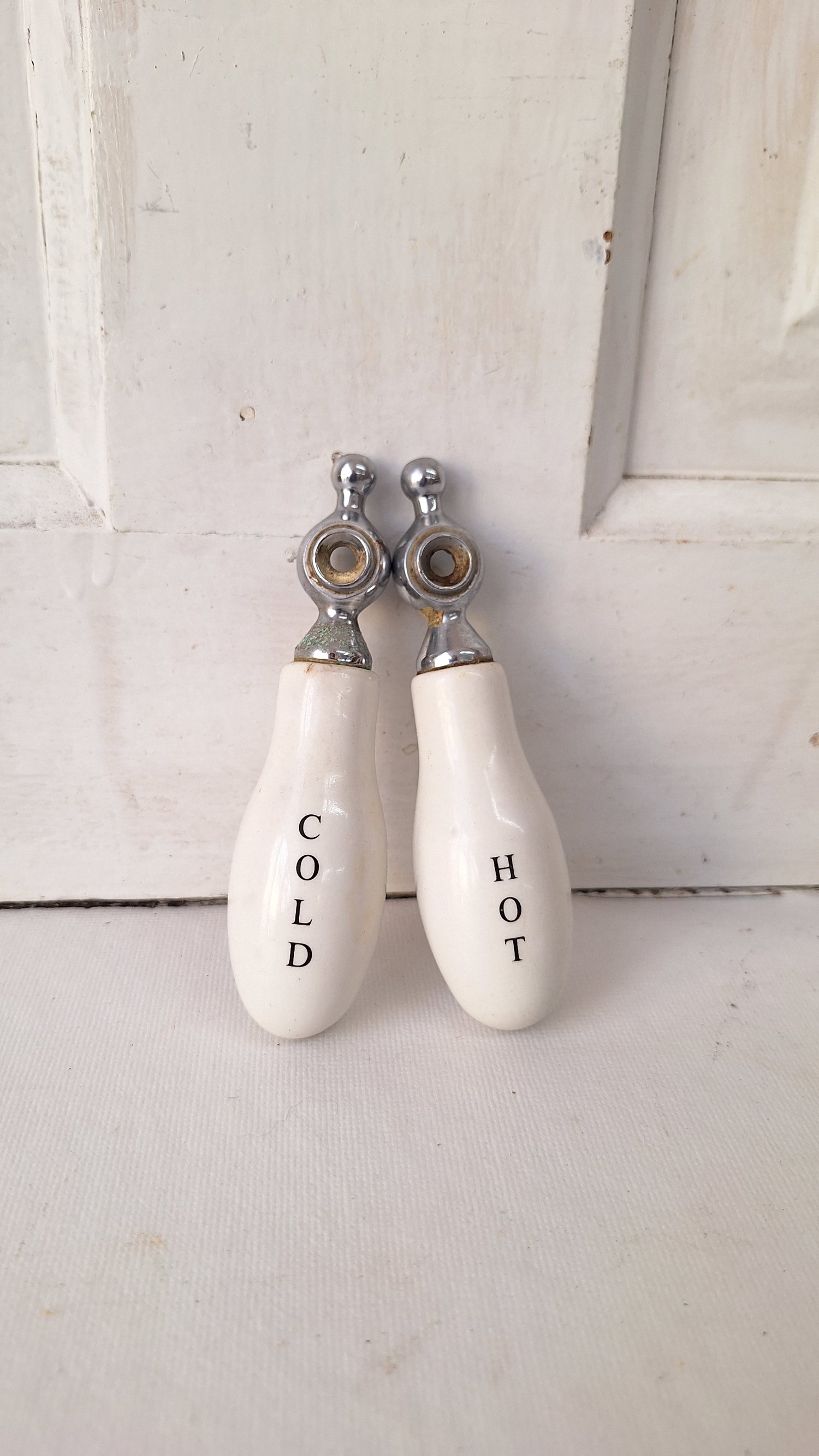 Hot and Cold Antique Porcelain Sink Handles, Porcelain White Faucet Knobs