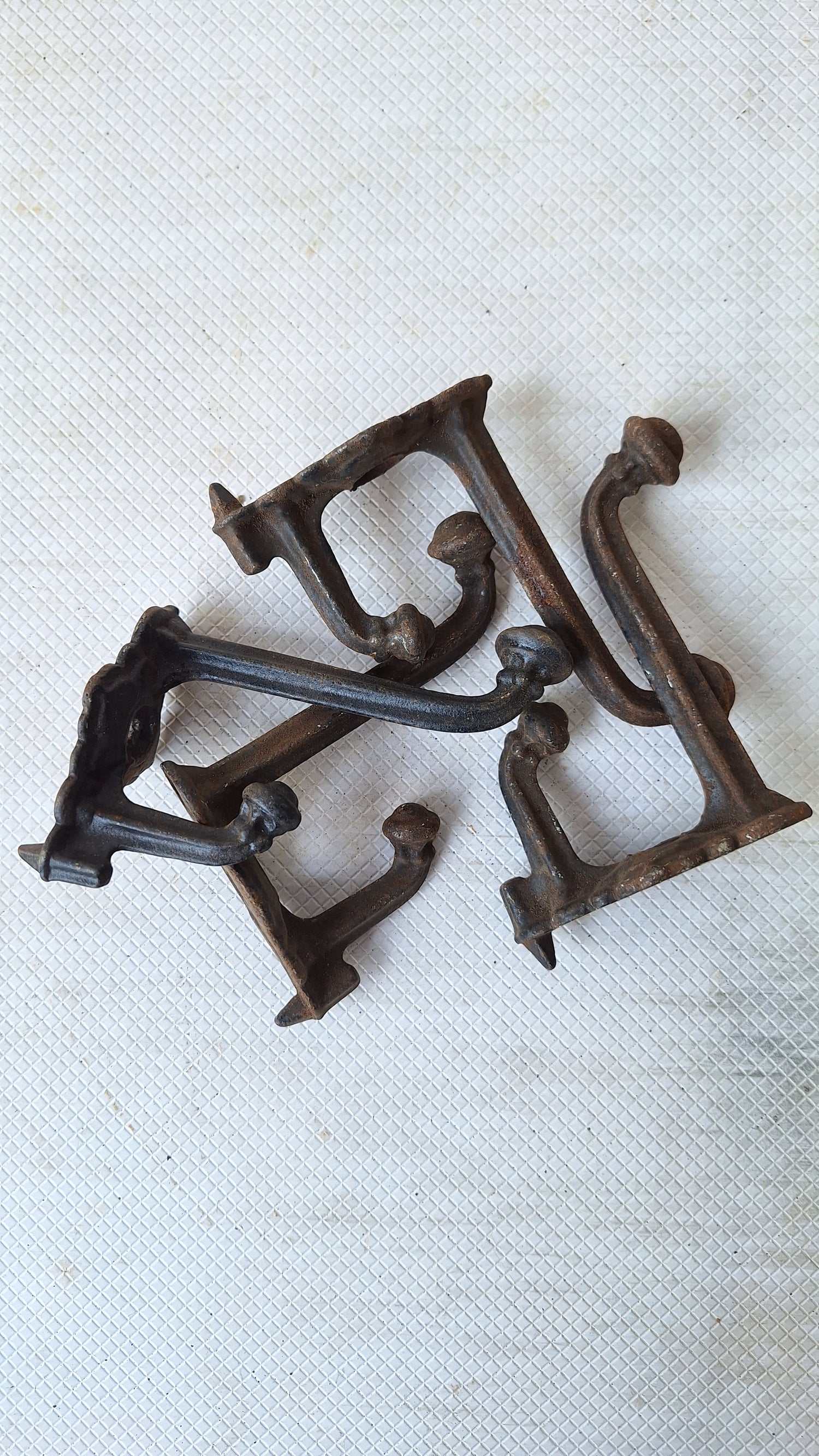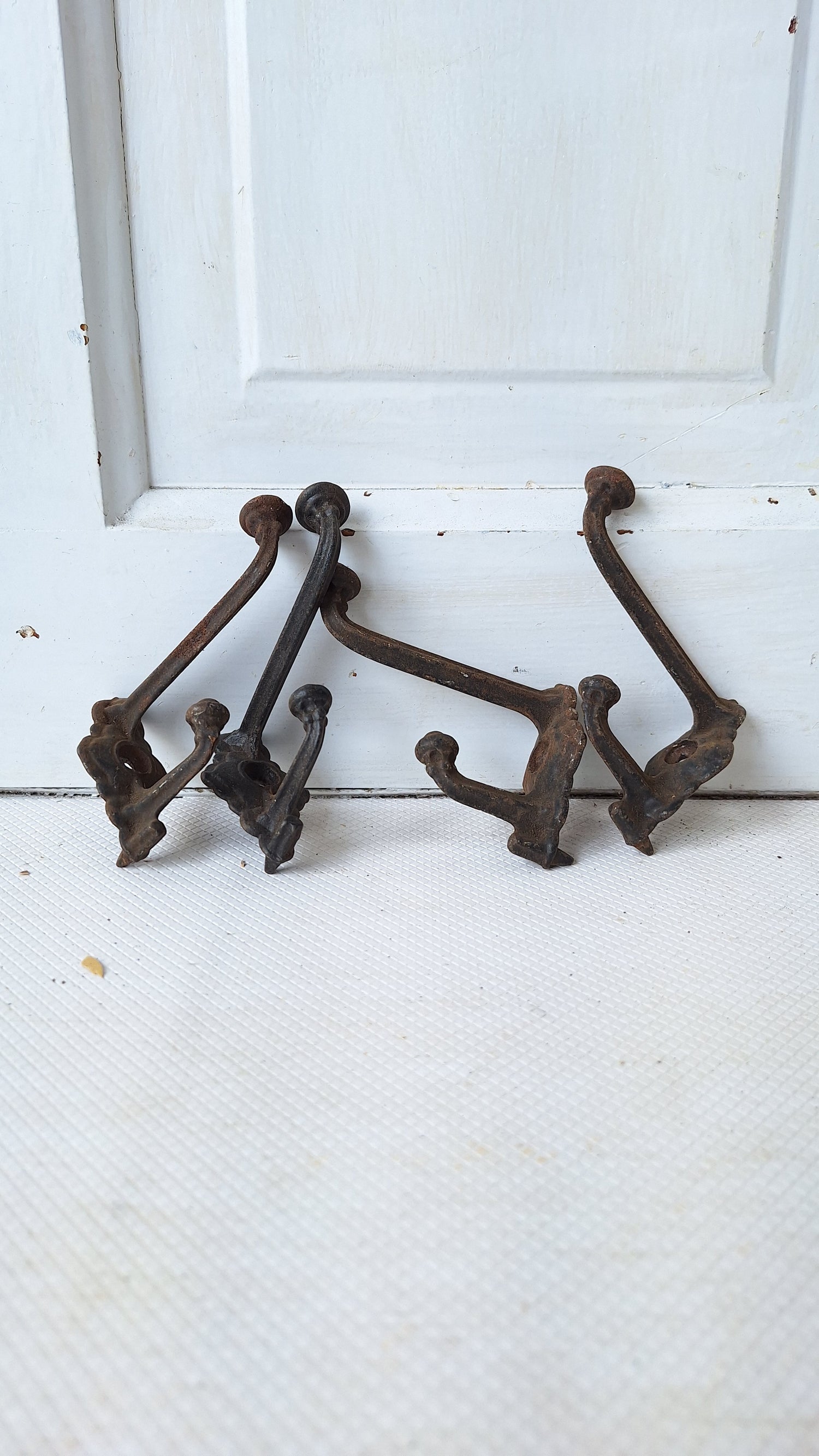 A single antique iron coat or closet hook from a Victorian era home. Each hook has a small spike at the back to help it stay in place on the wall. These are in 'as found' condition and have not been cleaned or polished. Patina will vary from piece to piece as shown. Please see all of our pictures for details and dimensions. This item ships free within the US. www.peoriasalvage.com