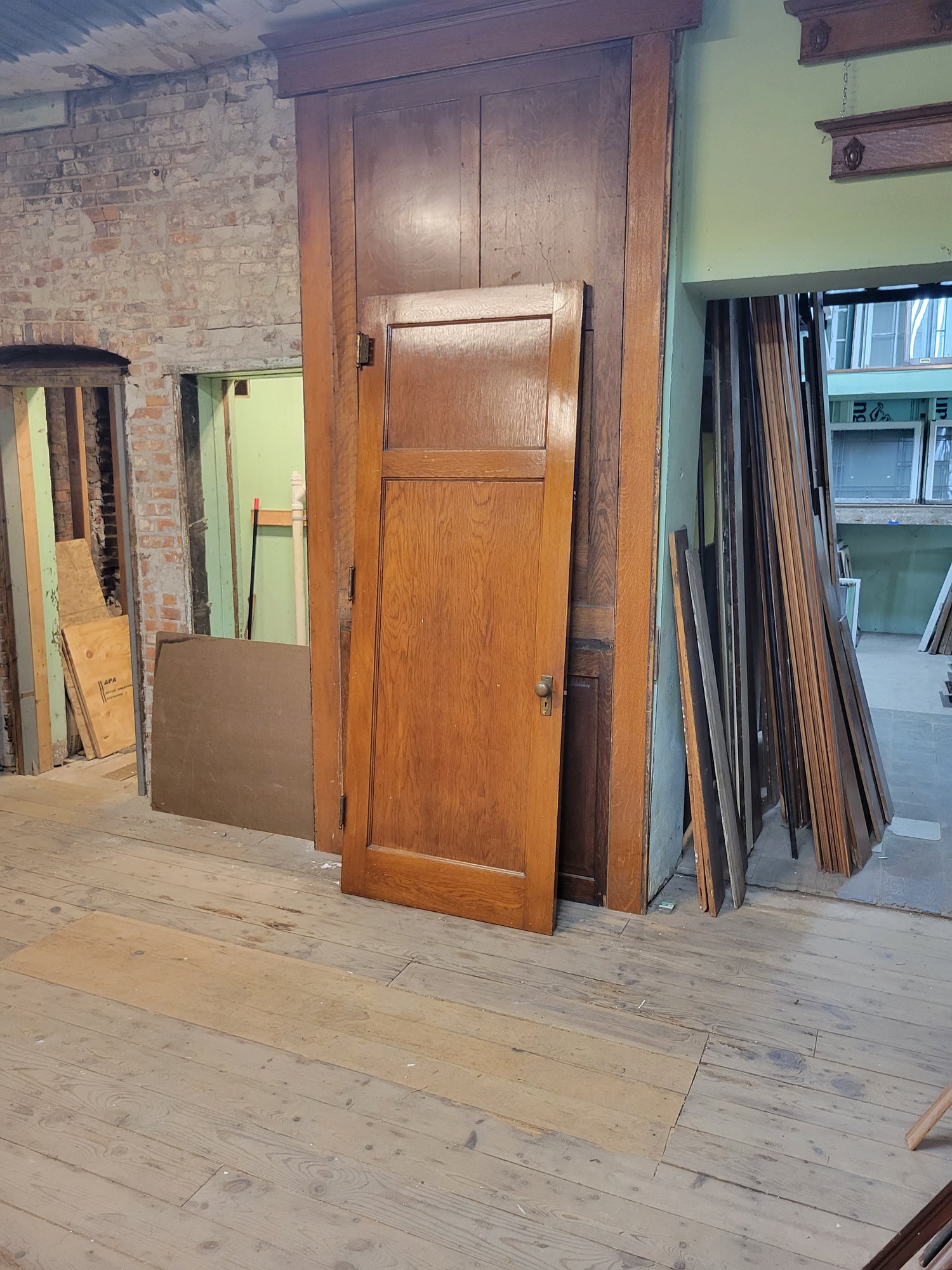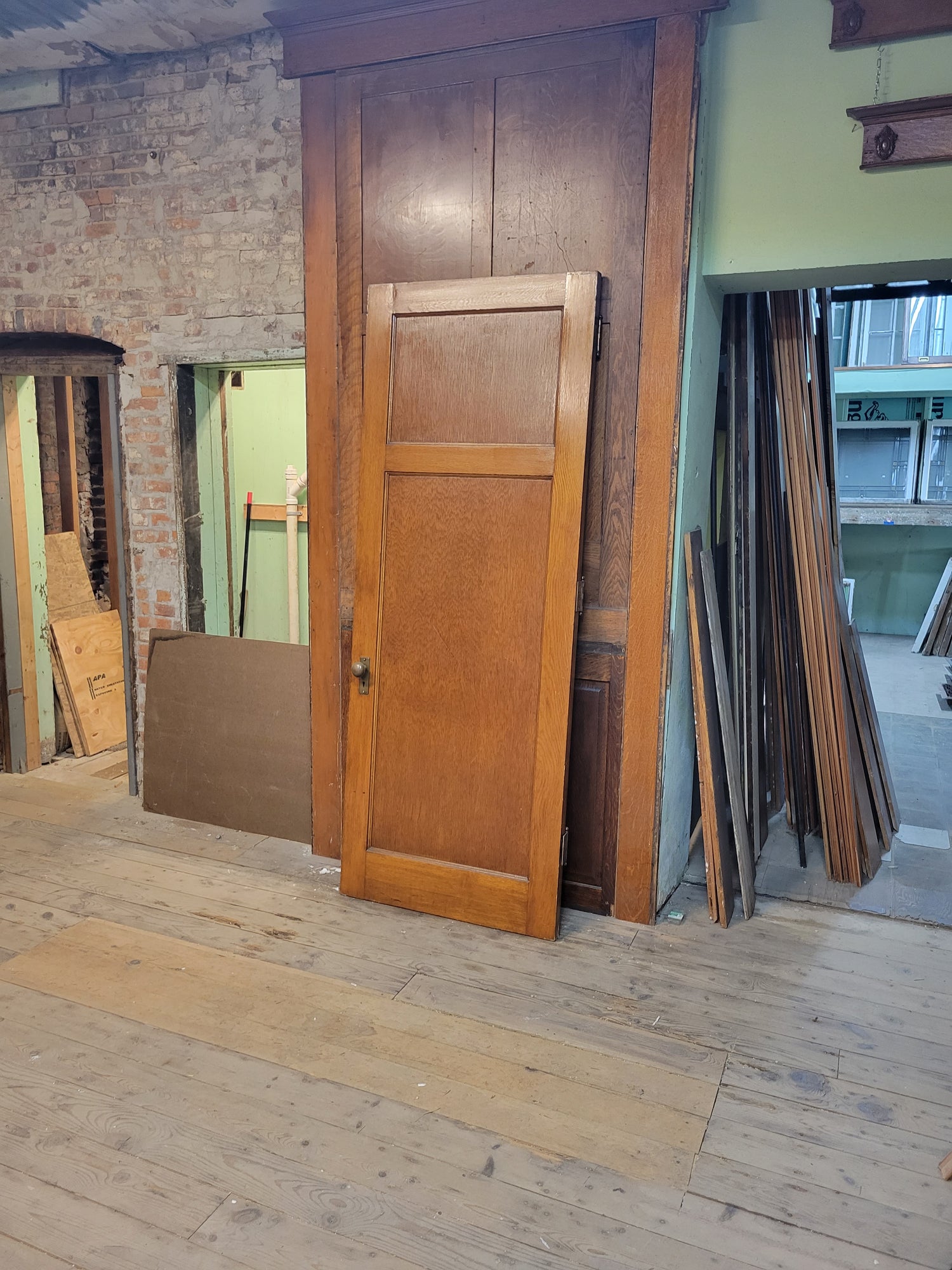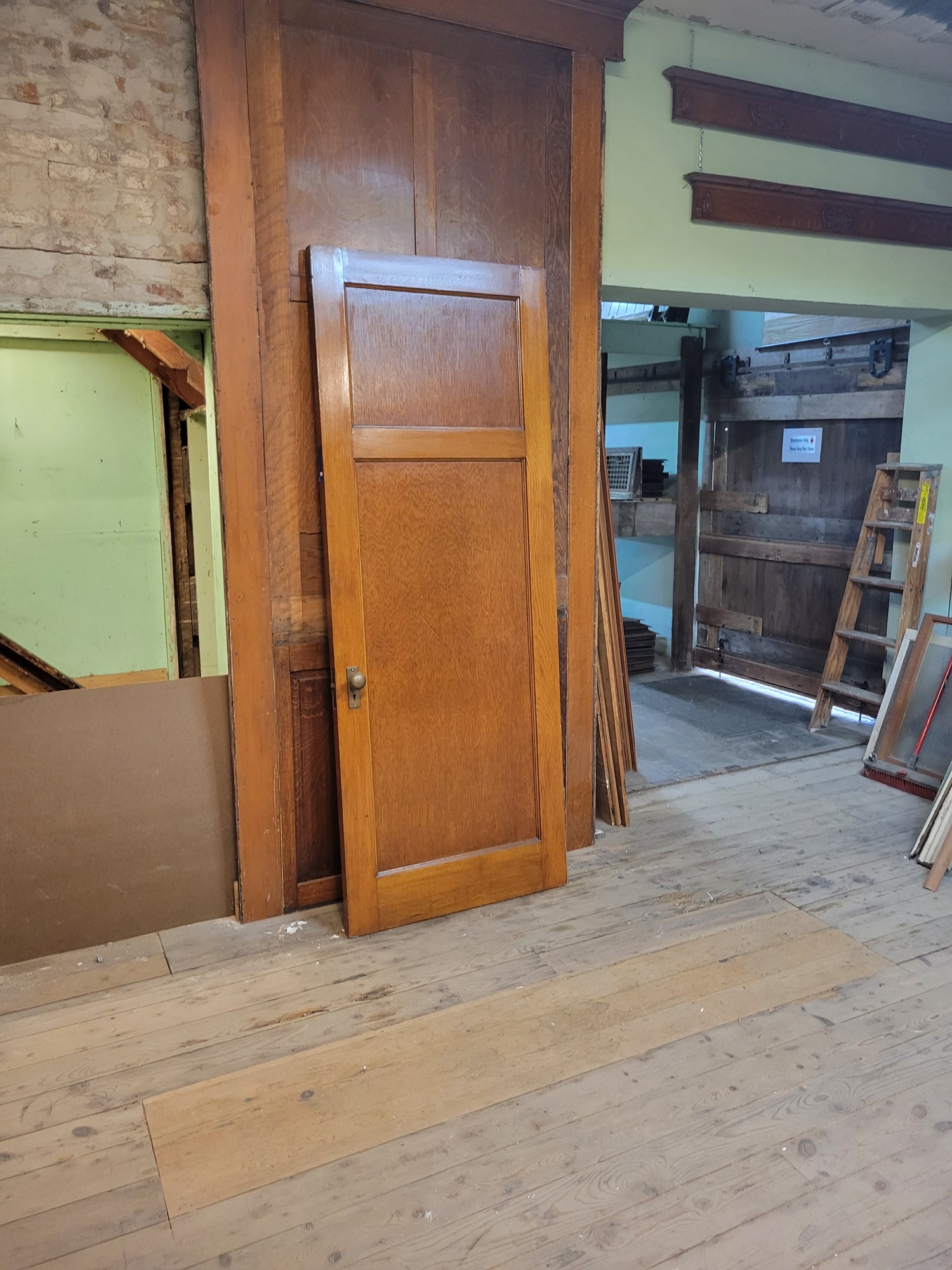 This vintage door measures 33 7/8" wide by 89" tall by 1 3/4" thick. This door ships free within the continental US. Please allow 2-3 weeks processing time. It can be shipped with other large items or picked up from our warehouse for a discounted price.