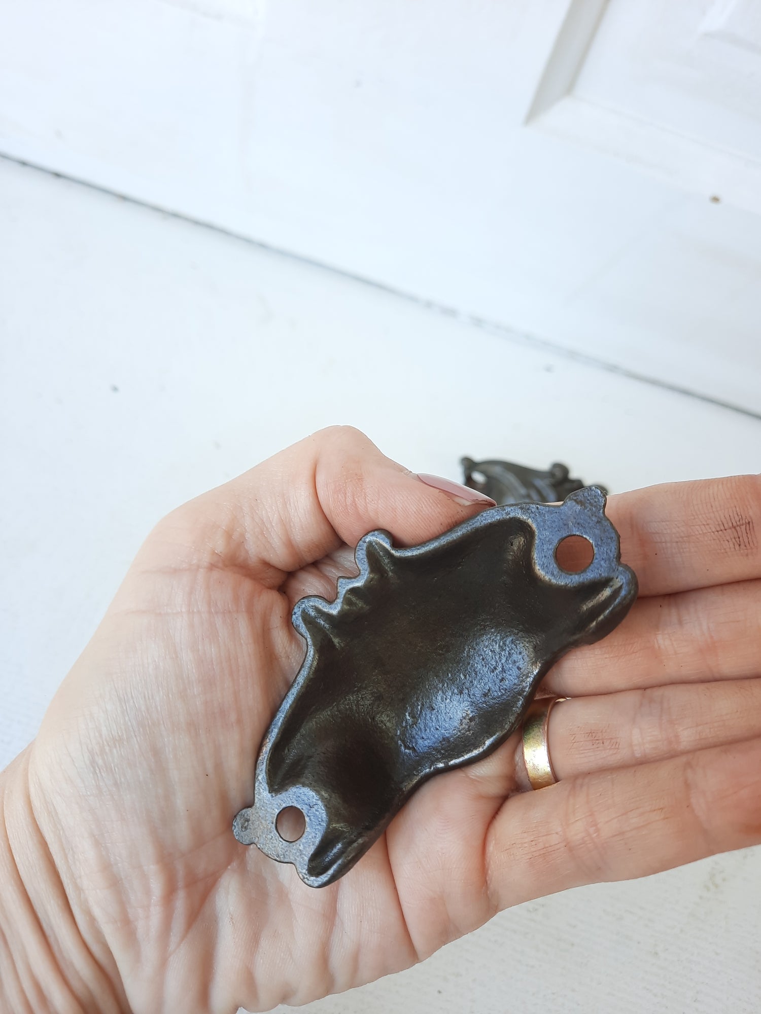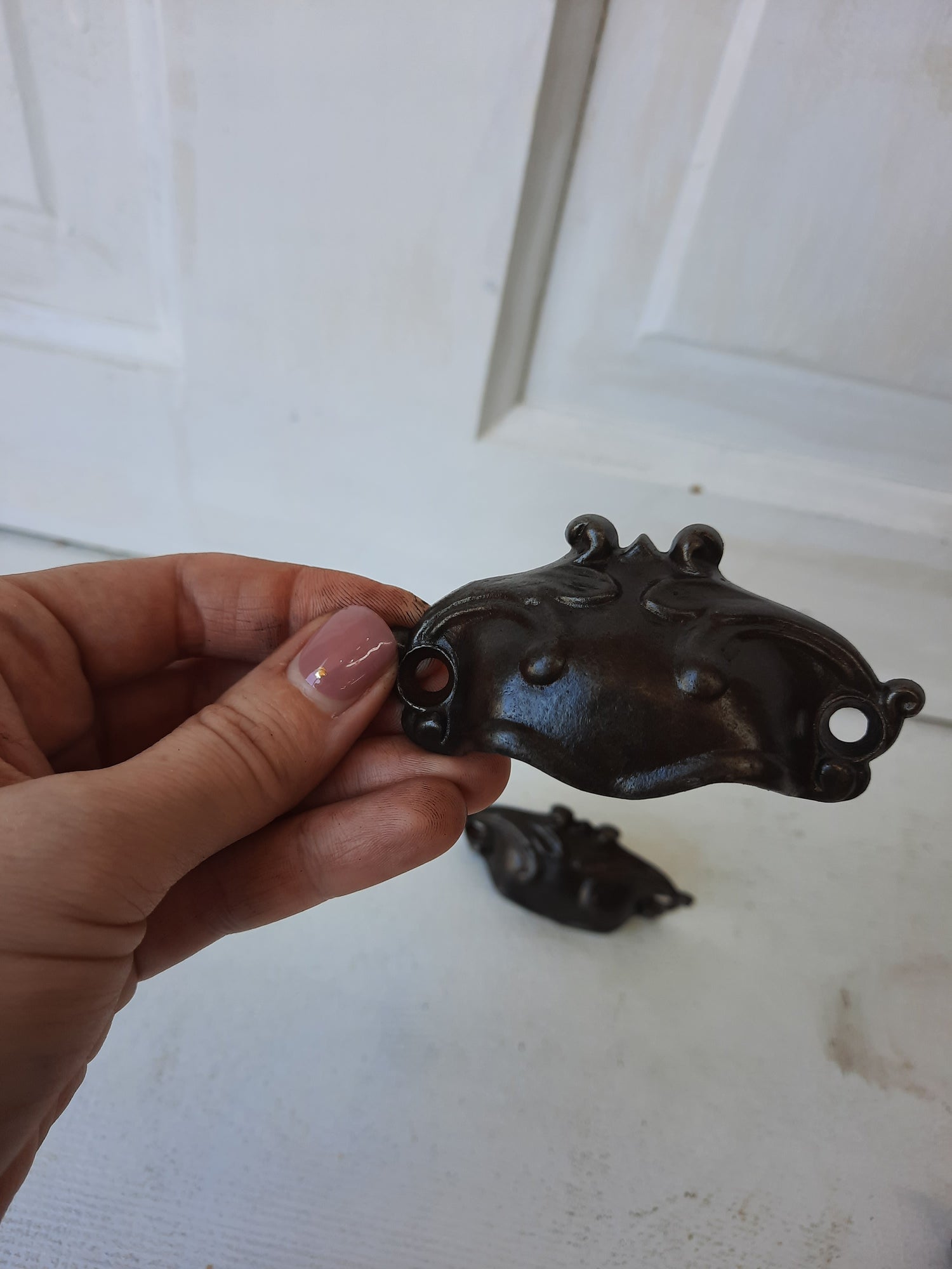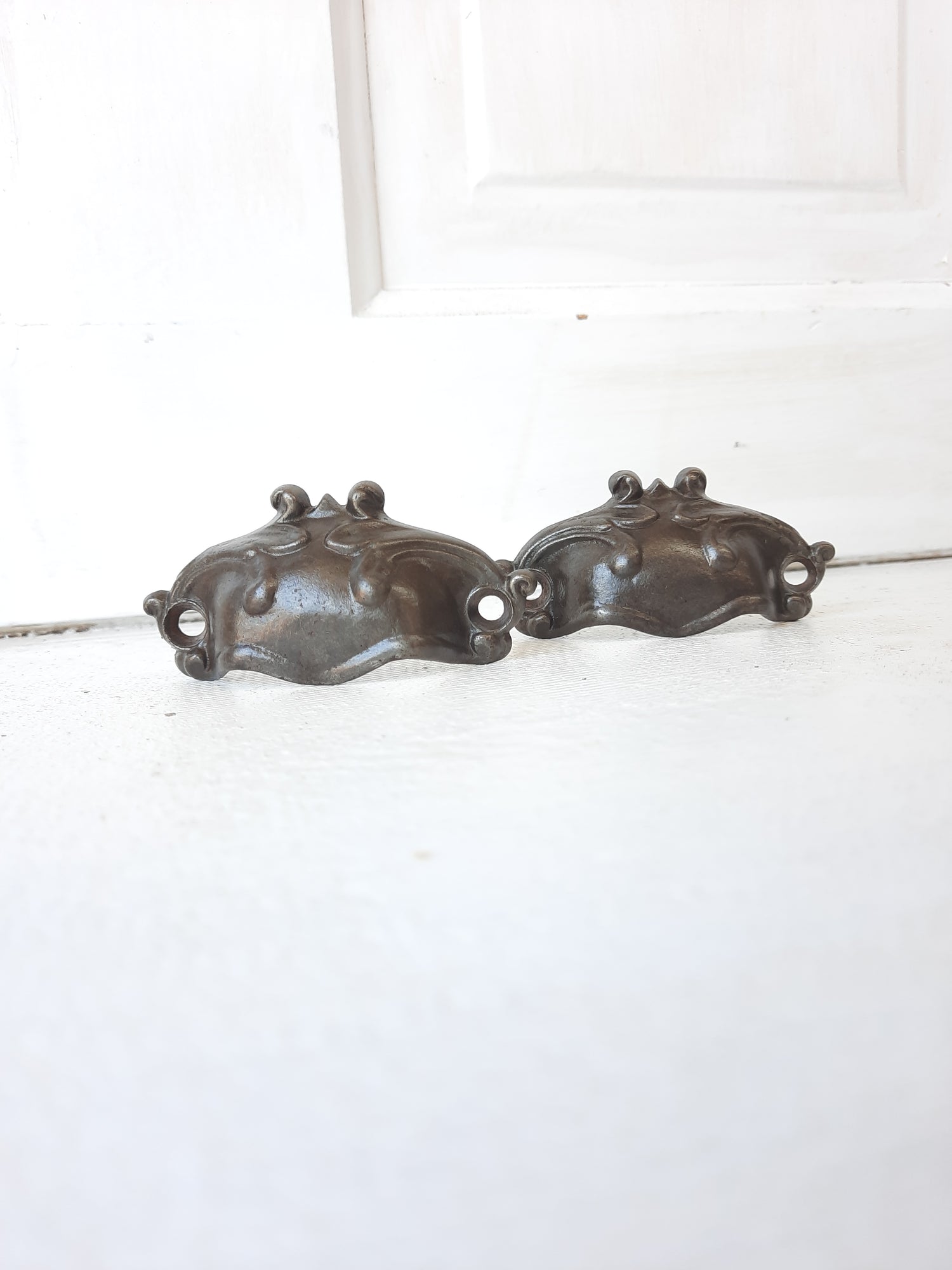 Pair of Antique Bin Pulls, Art Nouveau, Victorian Era Cast Iron Small Drawer Handle 091414