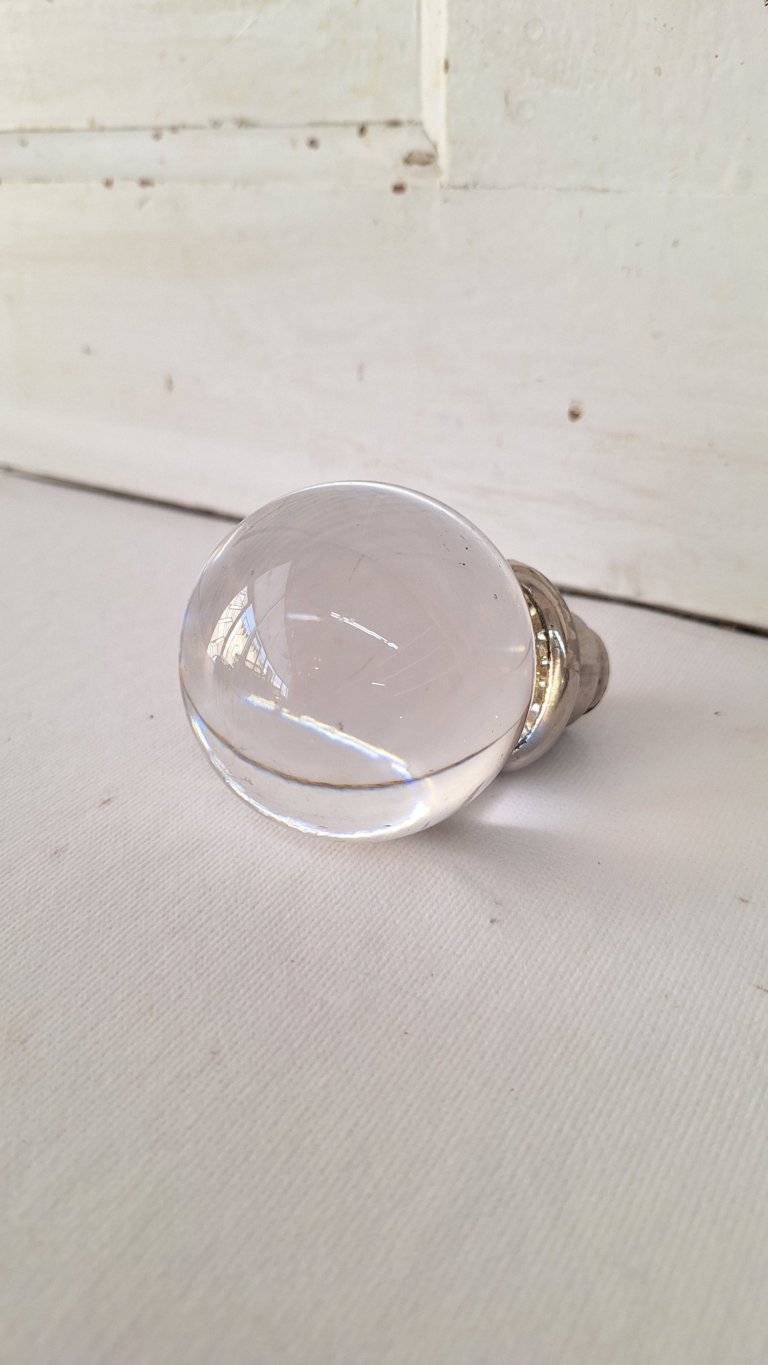Large Round Vintage Glass Knob, Round Glass Doorknob with Silver Center