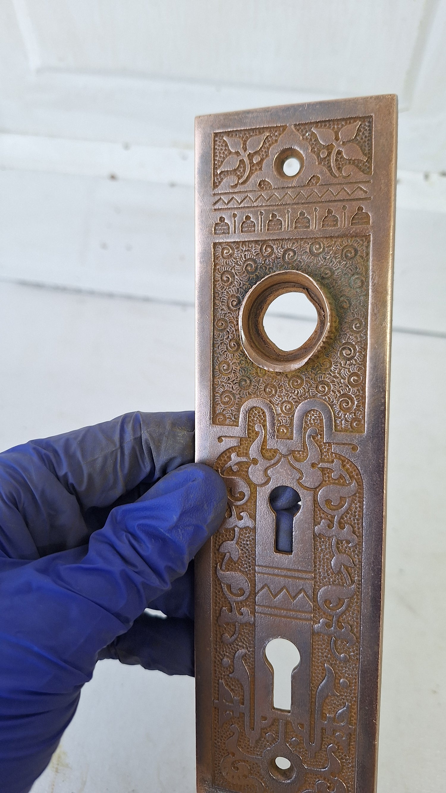 Ornate Bronze Exterior Door Plate, Antique Doorknob BackPlate Double Keyhole