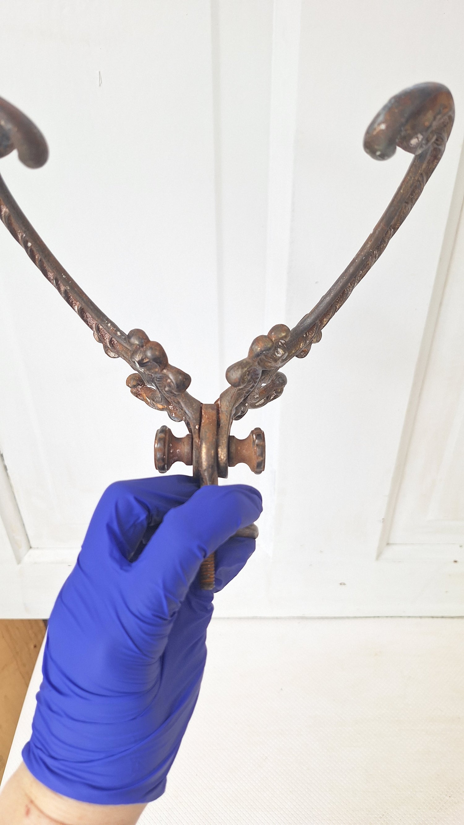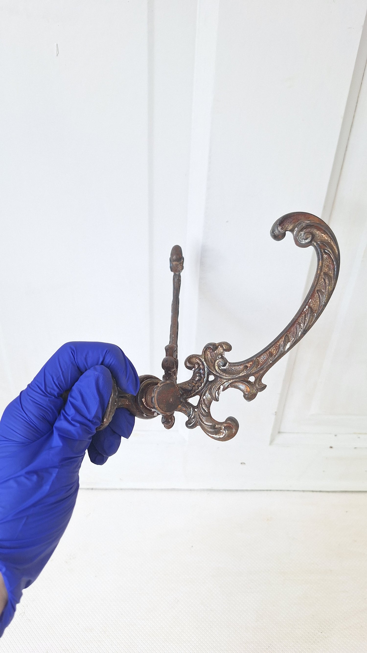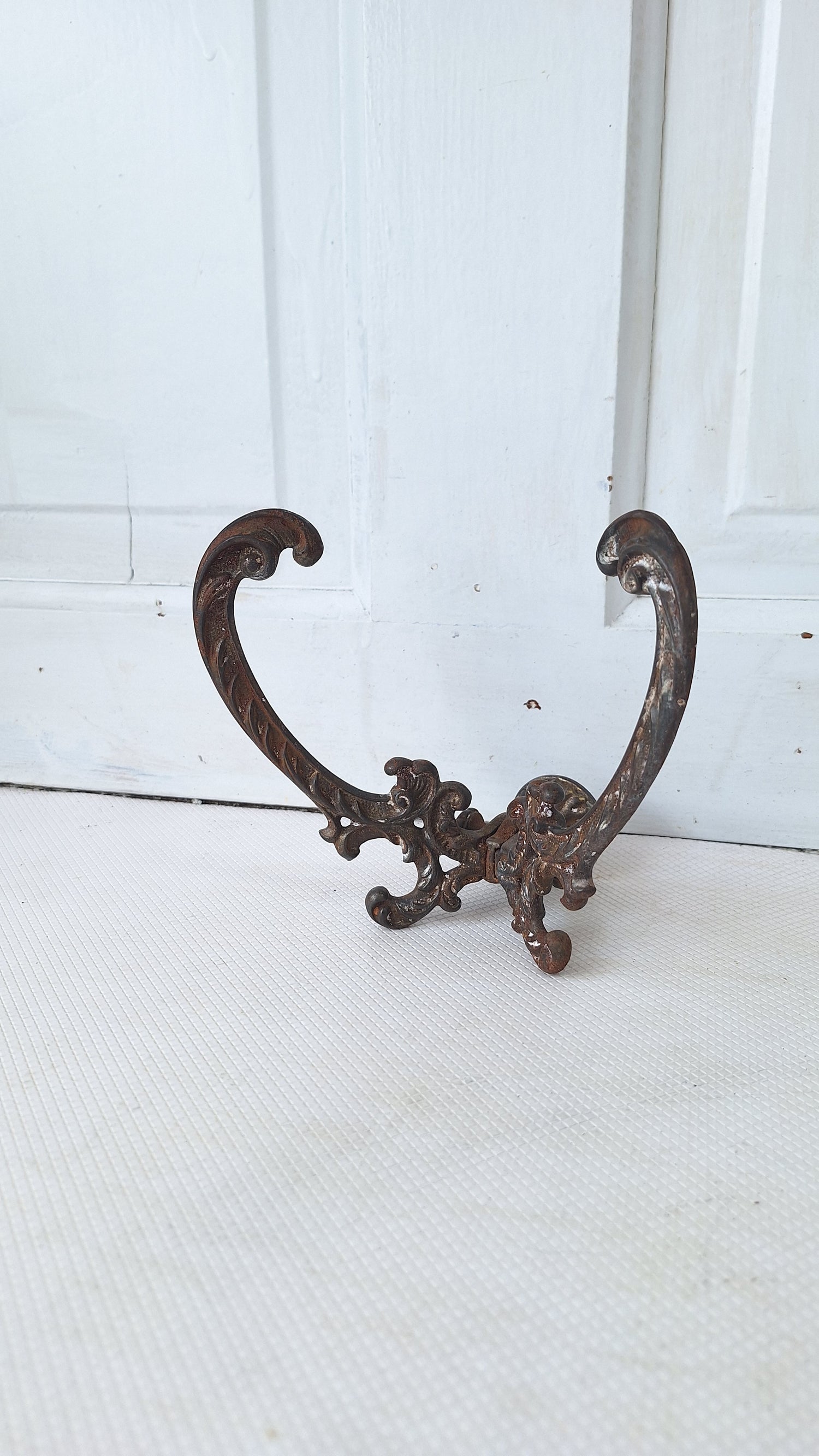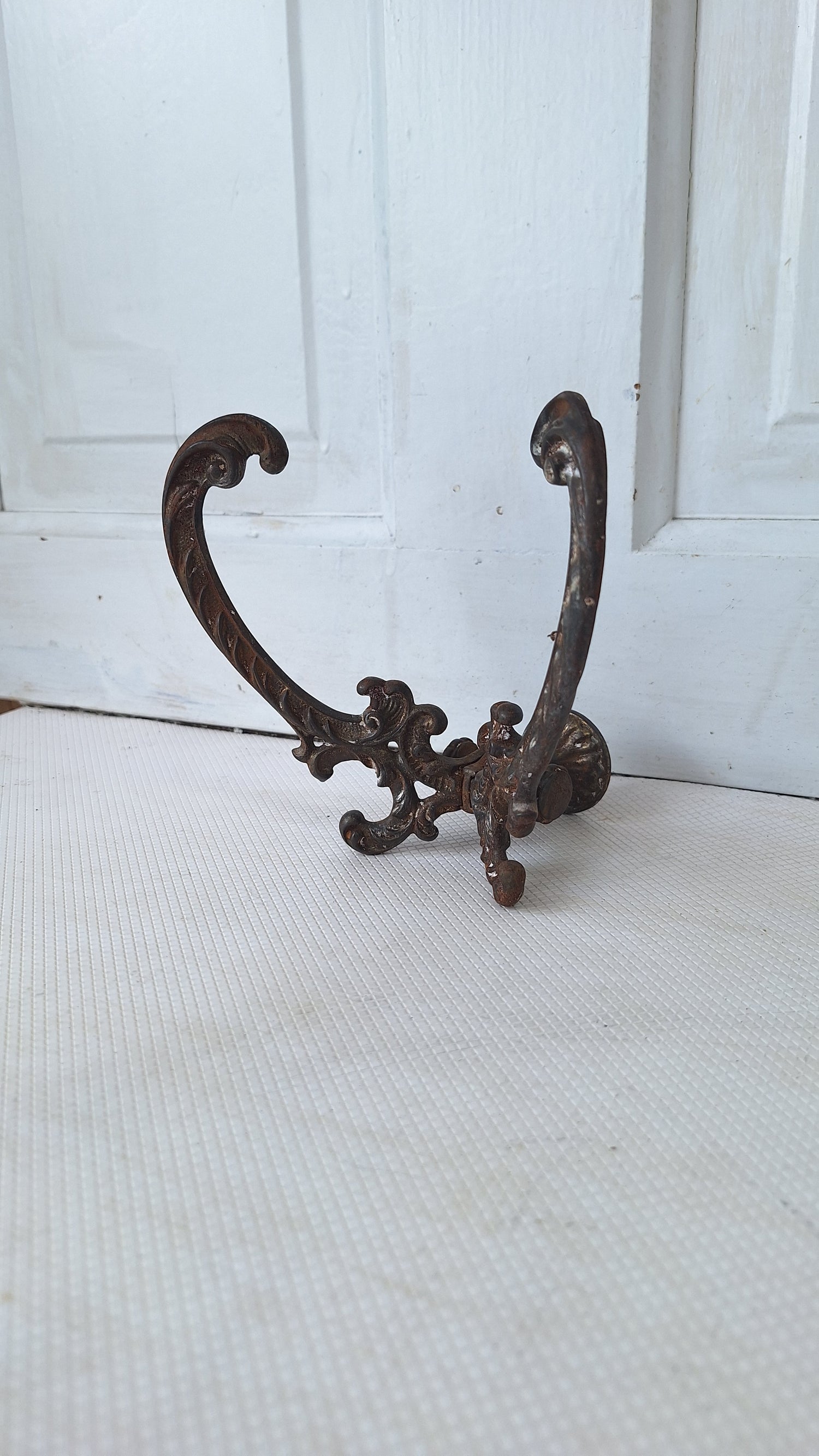 Large Cast Iron Victorian Hall Tree Hook, Ornate Iron Design Antique Coat Hook, Large Double Hook, Architecture Salvage 072702