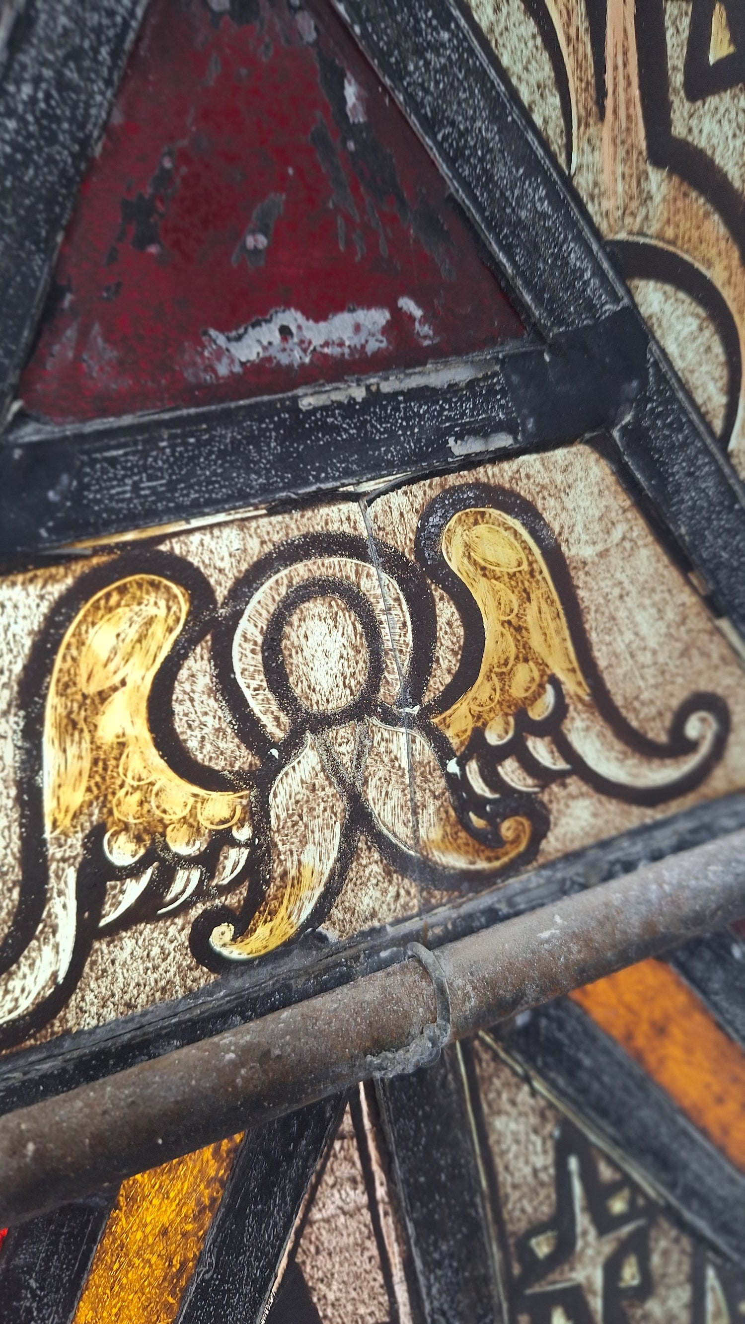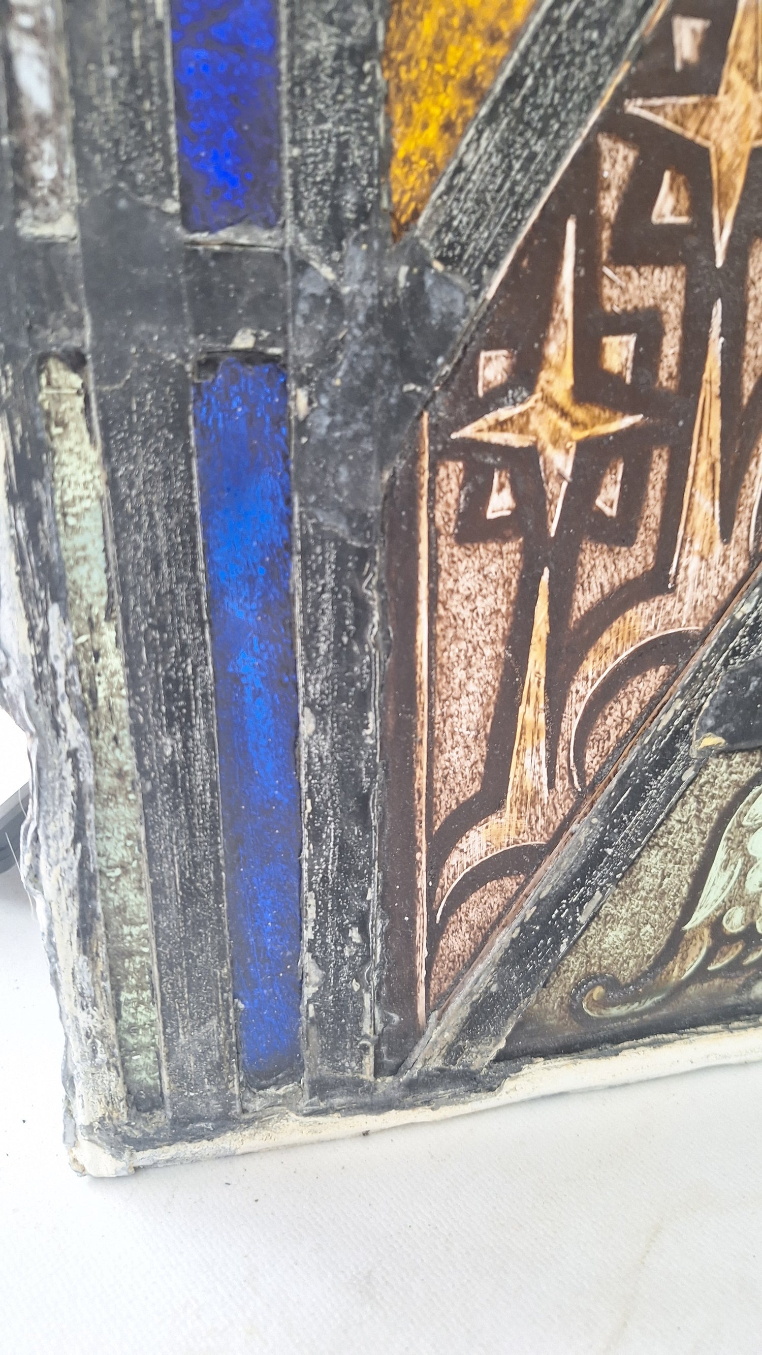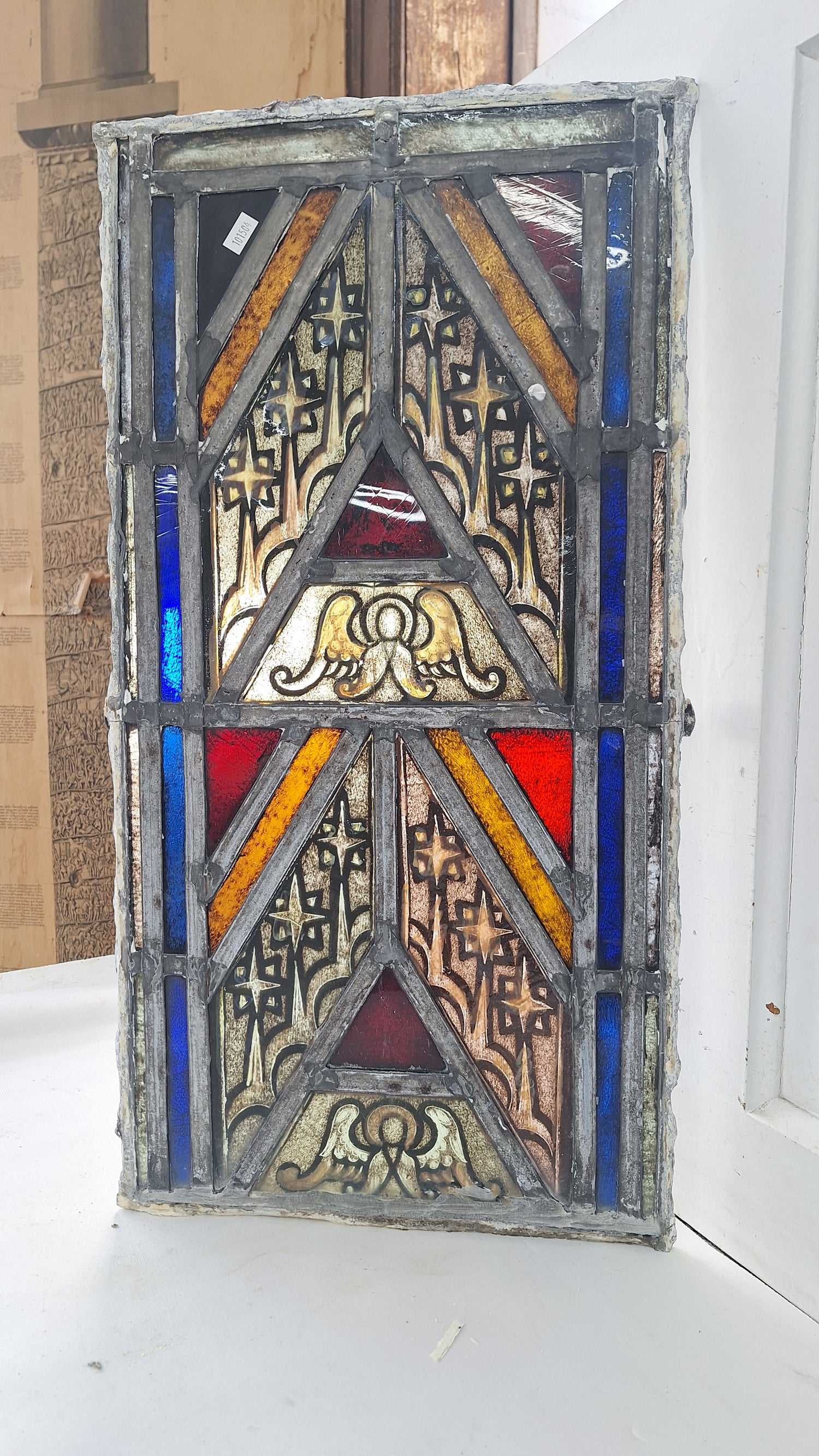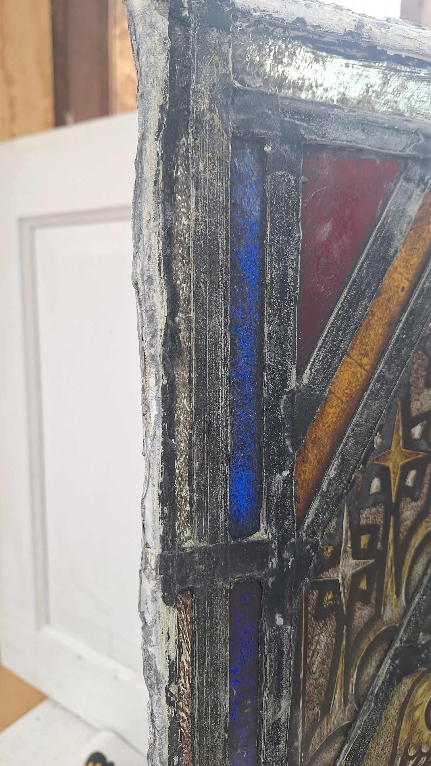 Painted Angel and Star Design Antique Stained Glass, Vintage Church Window