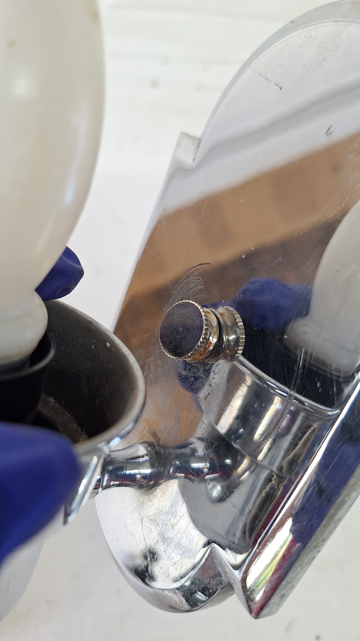 Pair Art Deco Chrome Sconces, White Glass 1930s Bathroom Vanity Lights