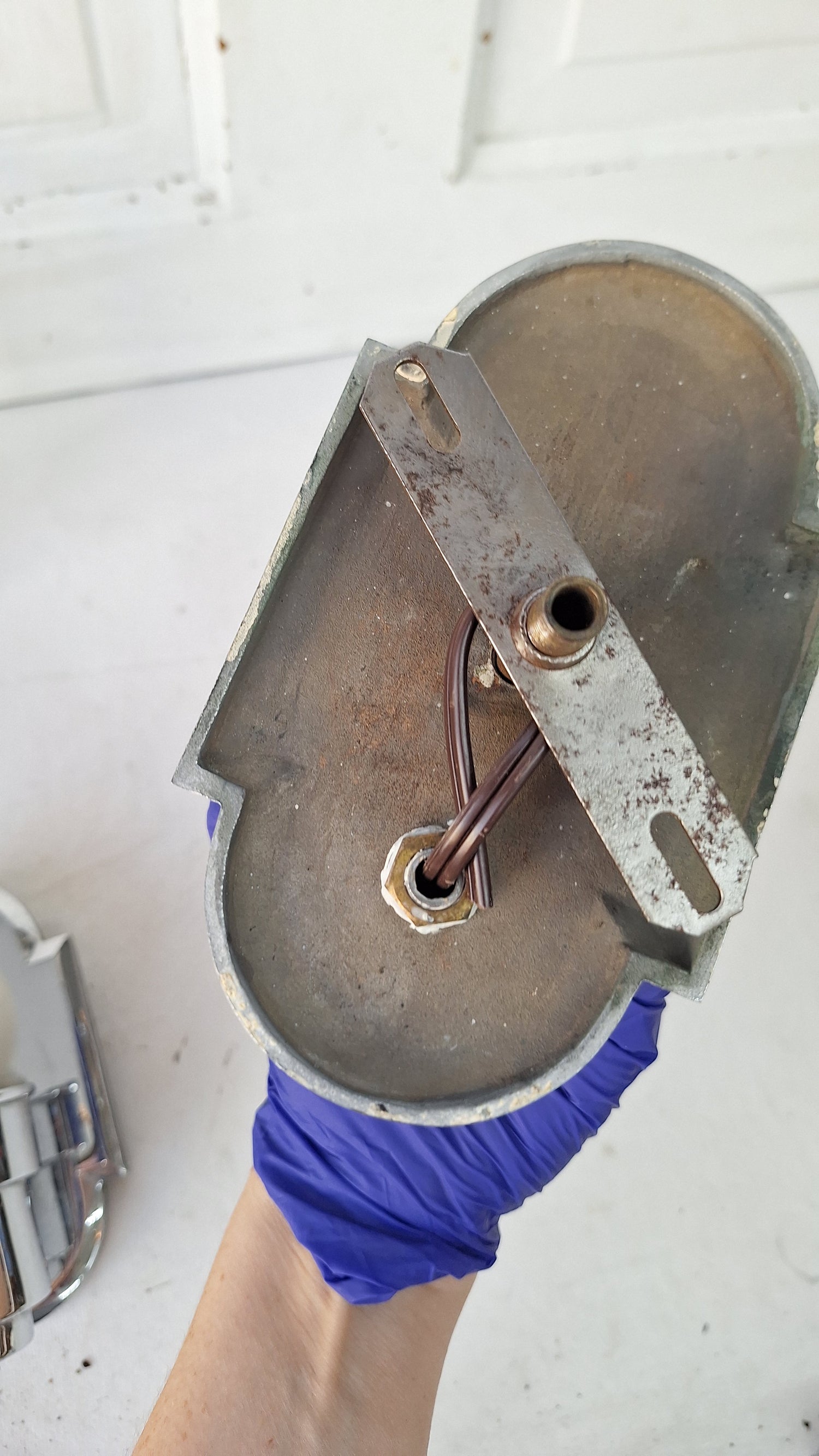 Each vintage sconce measures 8 1/2" tall overall. The wall mount section measures 3 1/2" wide. They project approx. 4" from the wall when installed. This pair ships free within the continental US. No PO boxes please.