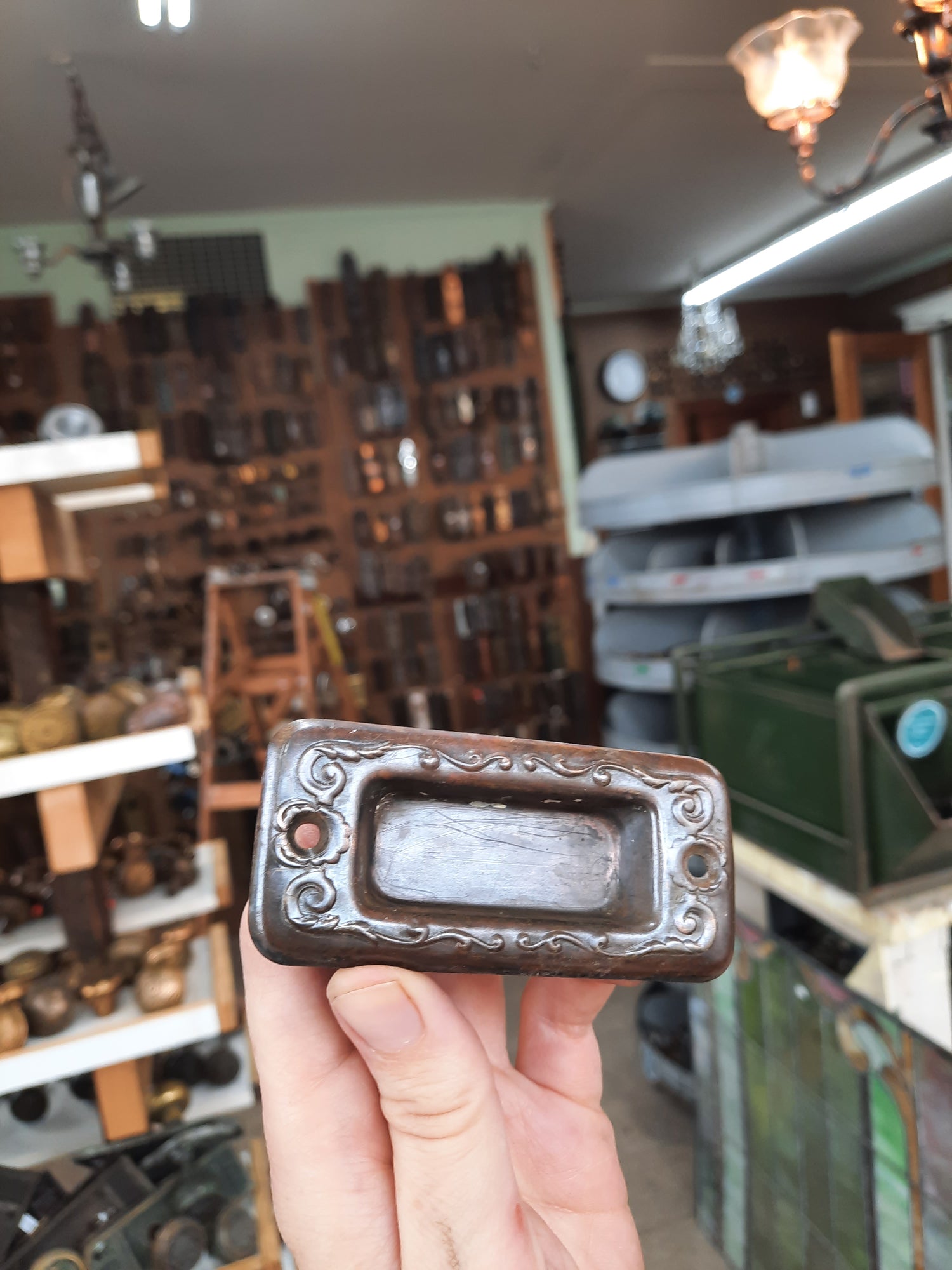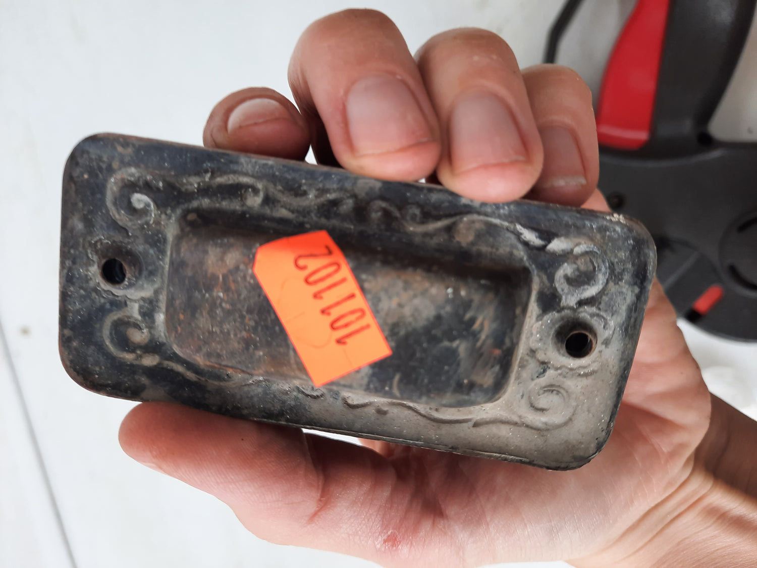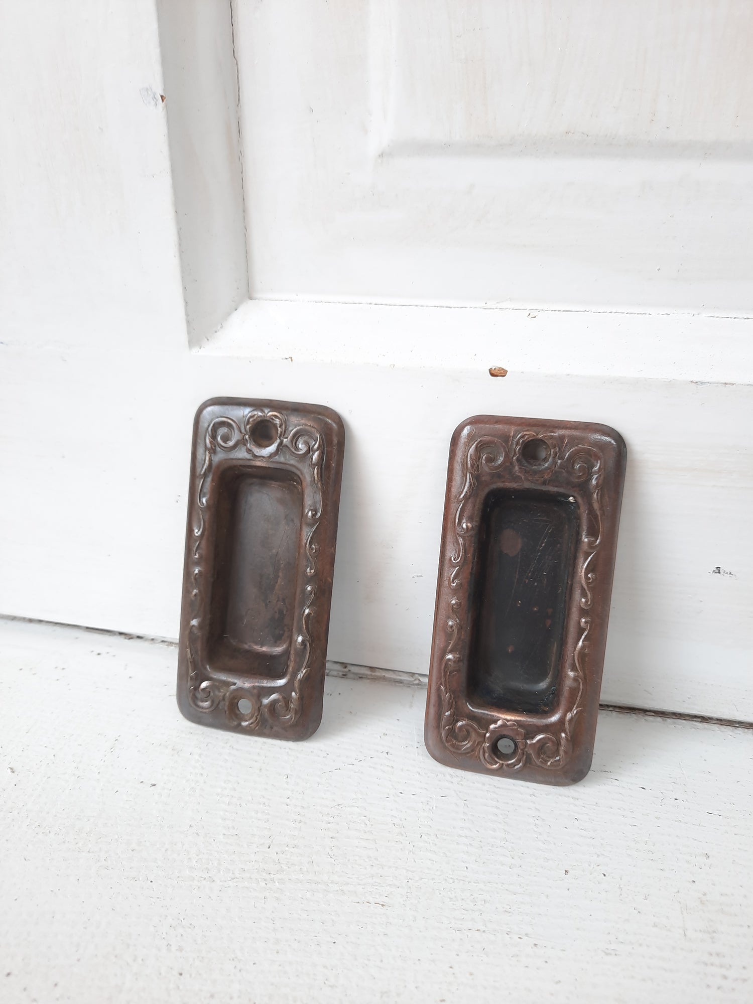 Pair of Antique Stamped Bronze Window Pulls, Antique Wood Window Sash Lifts 101102