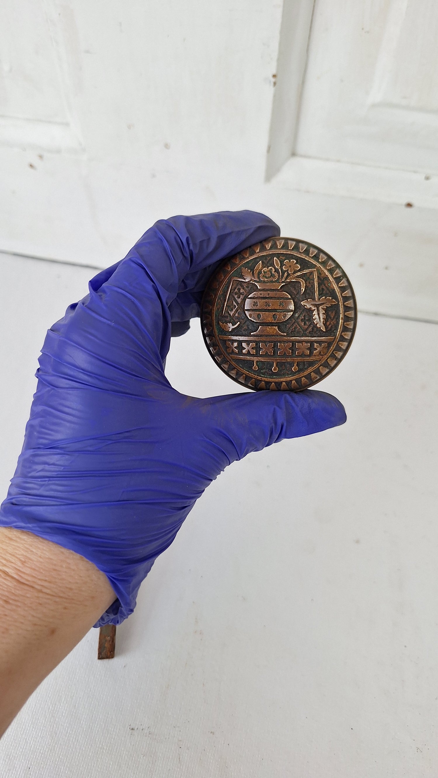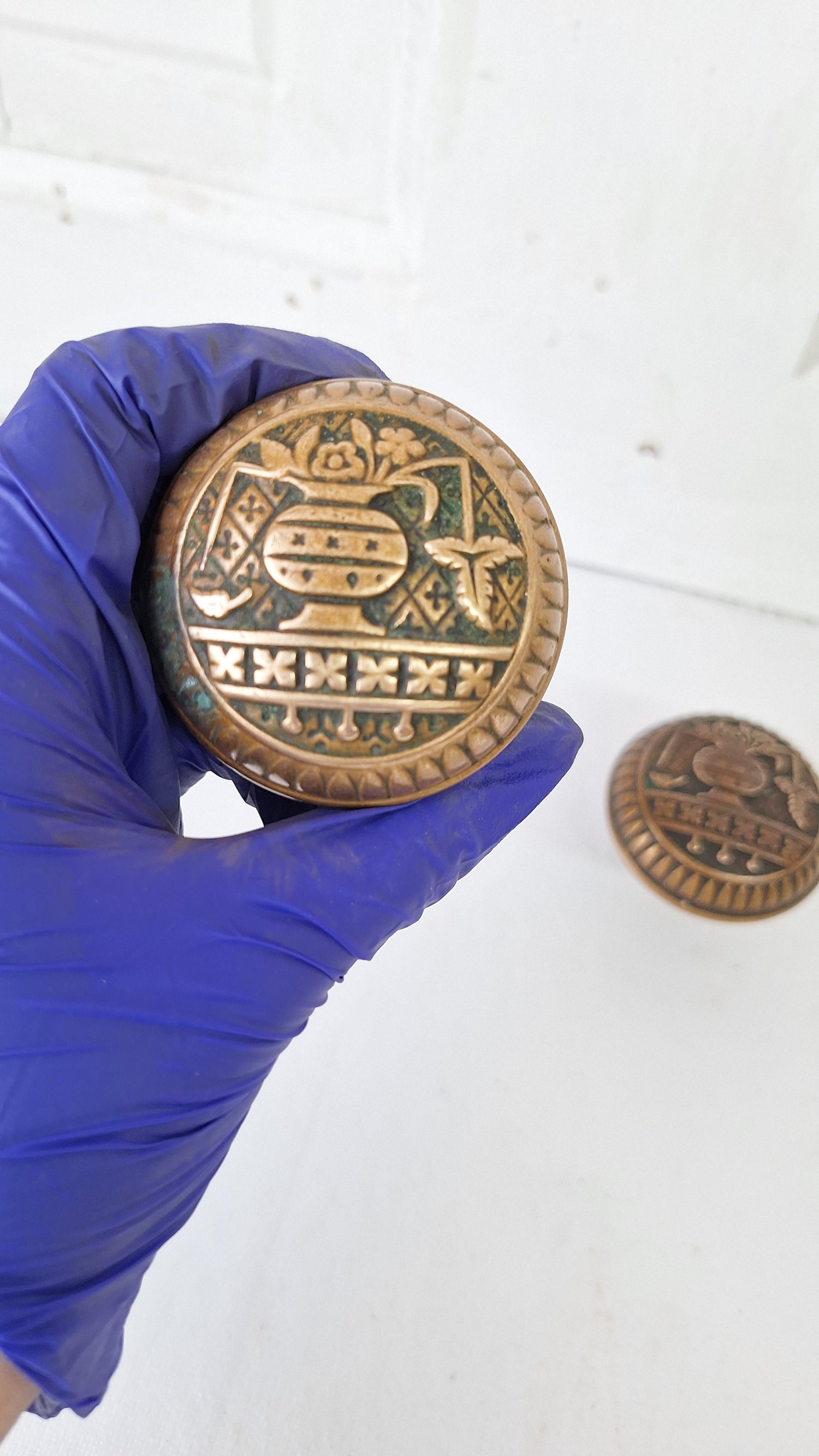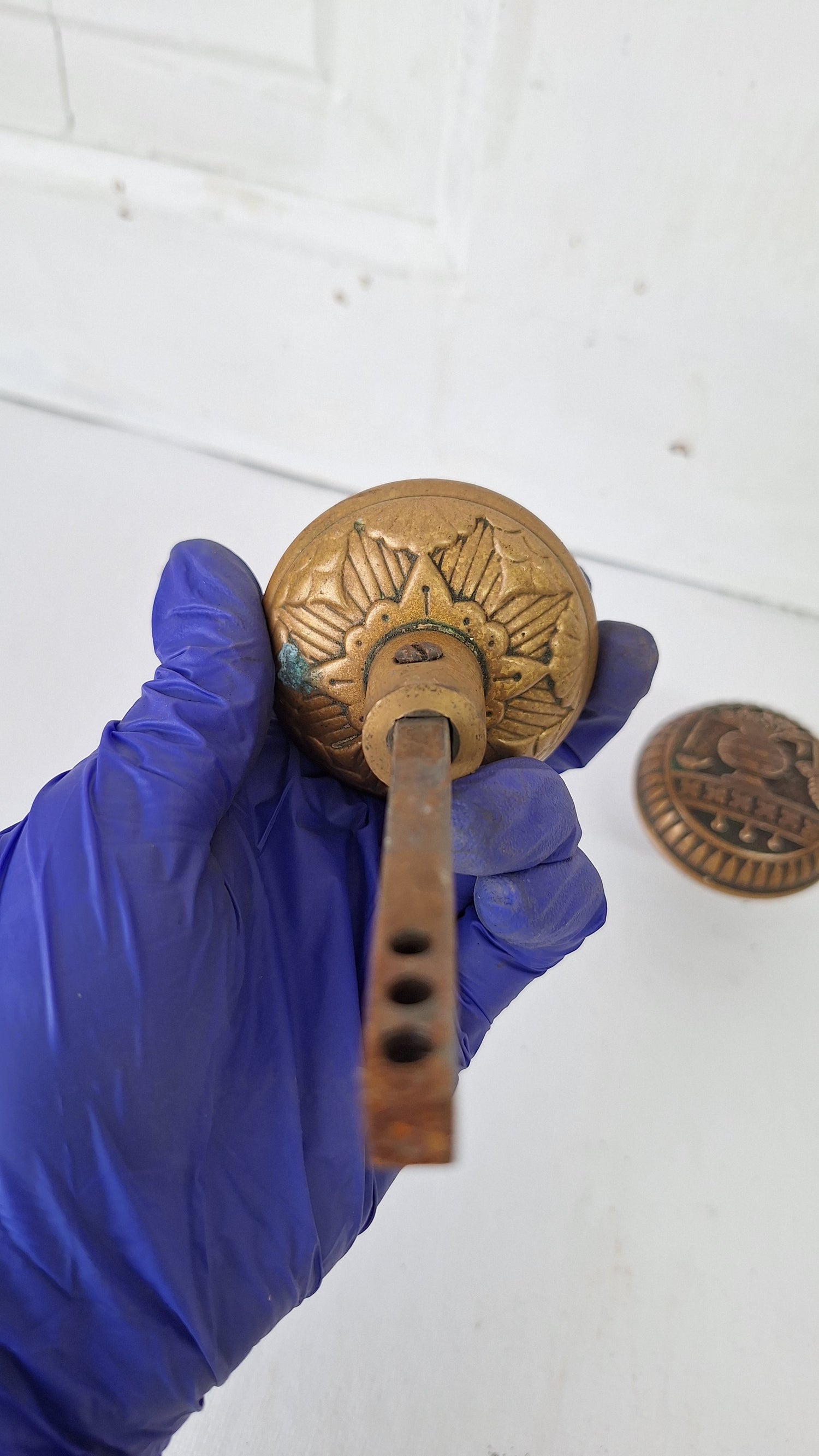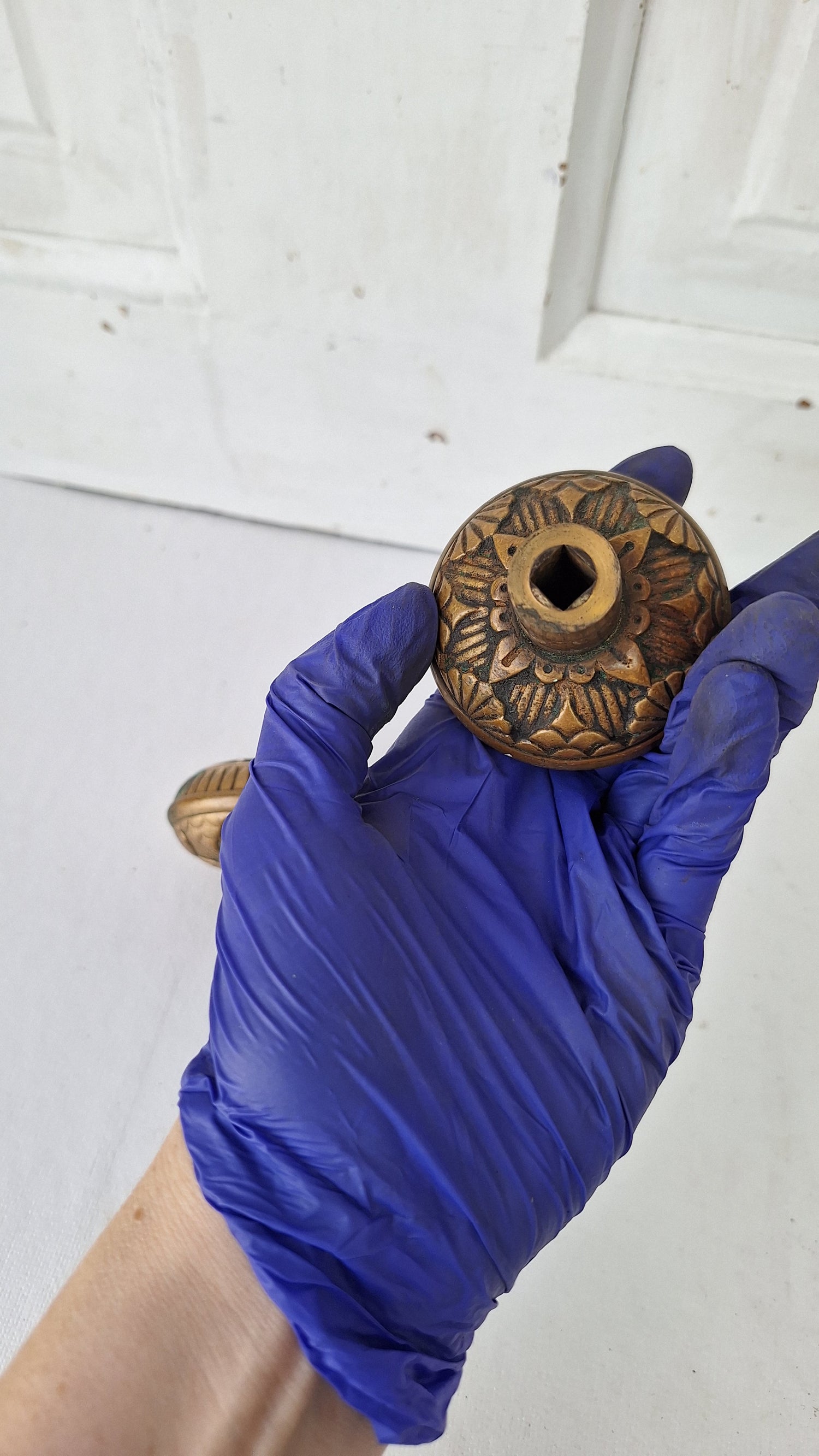 Broken Leaf Design Pair of Bronze Doorknobs, Eastlake Style Victorian Door Knob Set