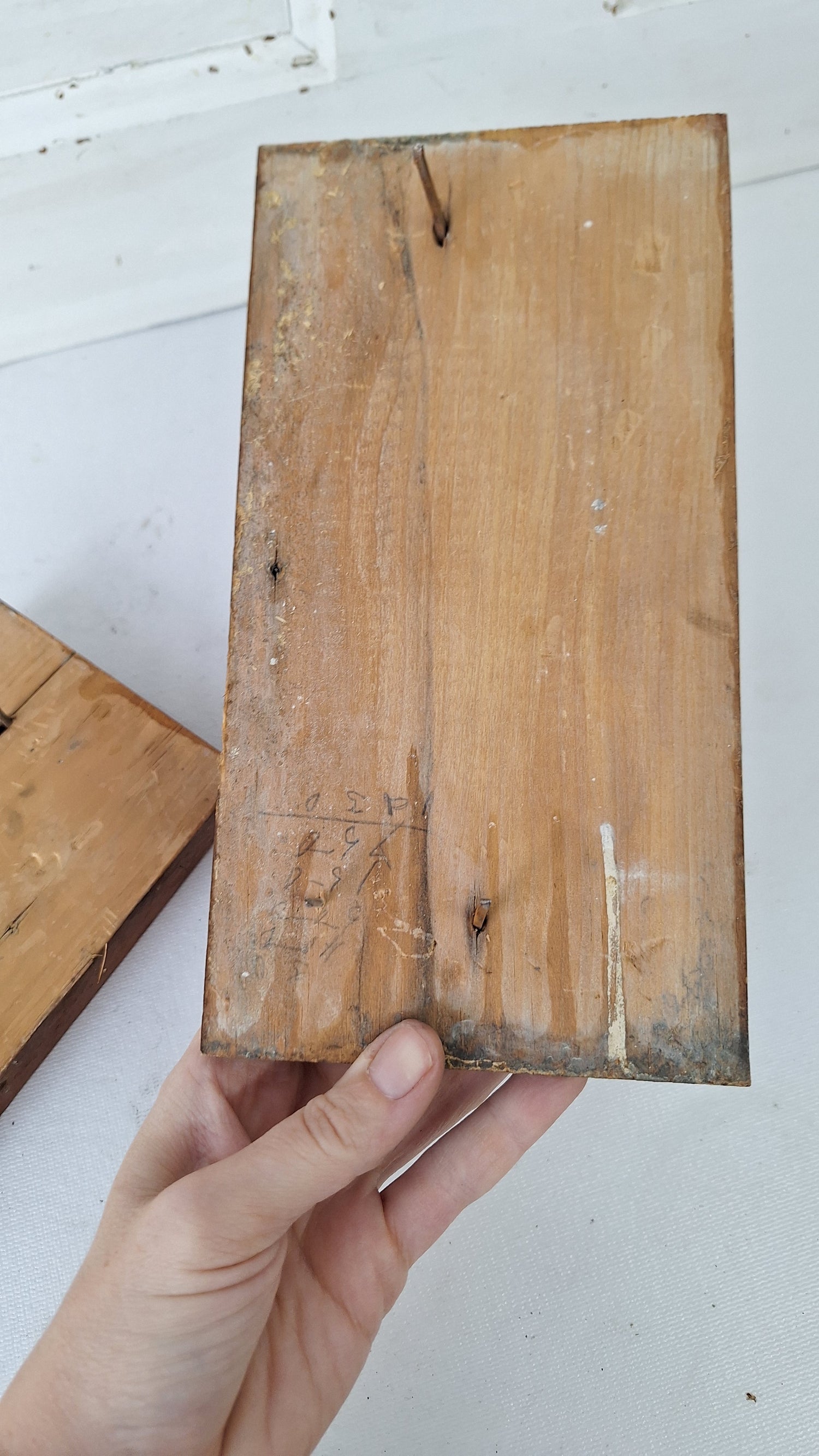 An unusually designed pair of antique plinth blocks or rosettes from a Victorian era home. These would be a beautiful trim accent to part of a restoration or a fun antique decor accent. They have nails as shown and splits in the wood from age. Please see all of our pictures for details and dimensions. This pair ships free within the US. www.peoriasalvage.com