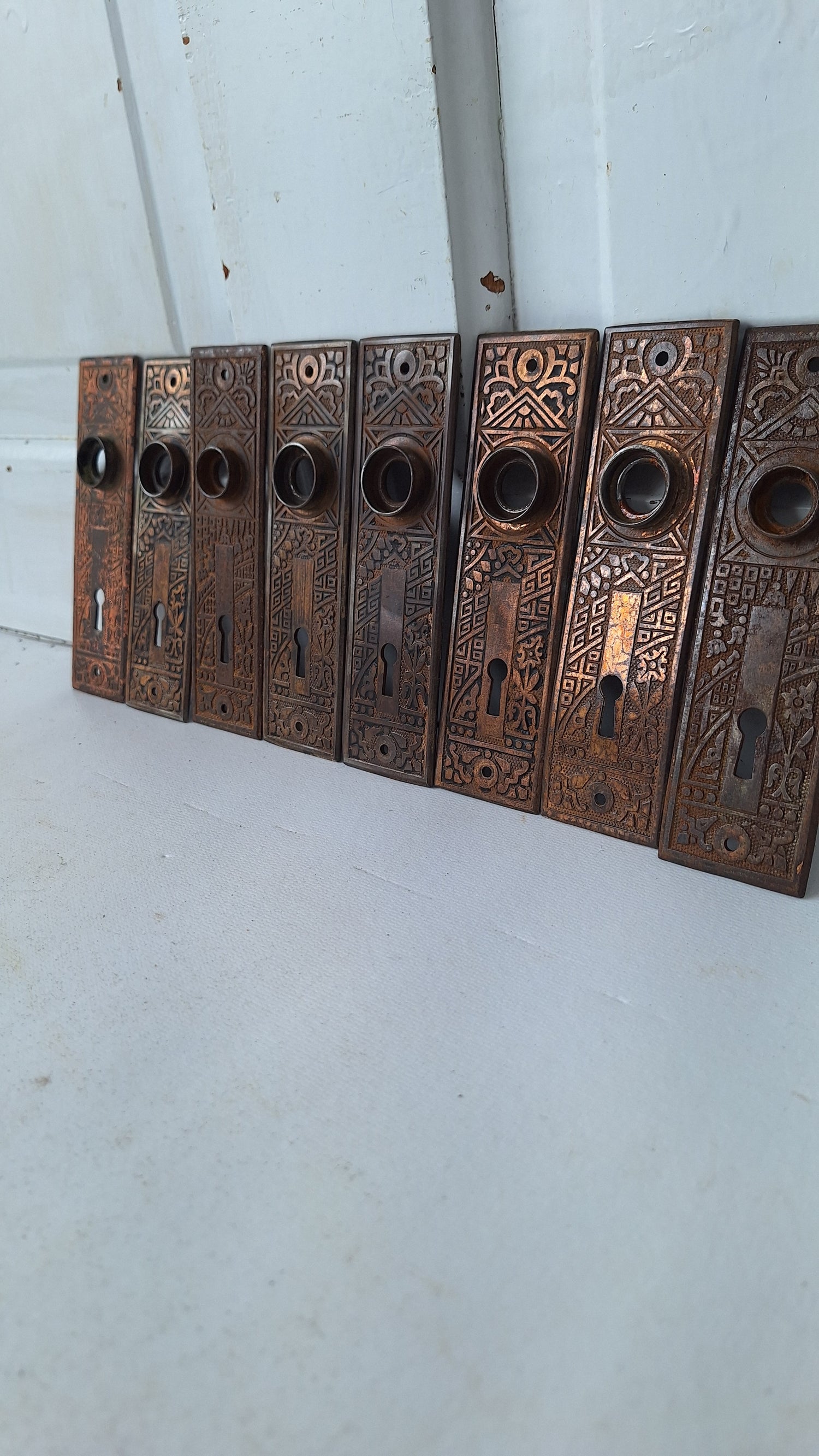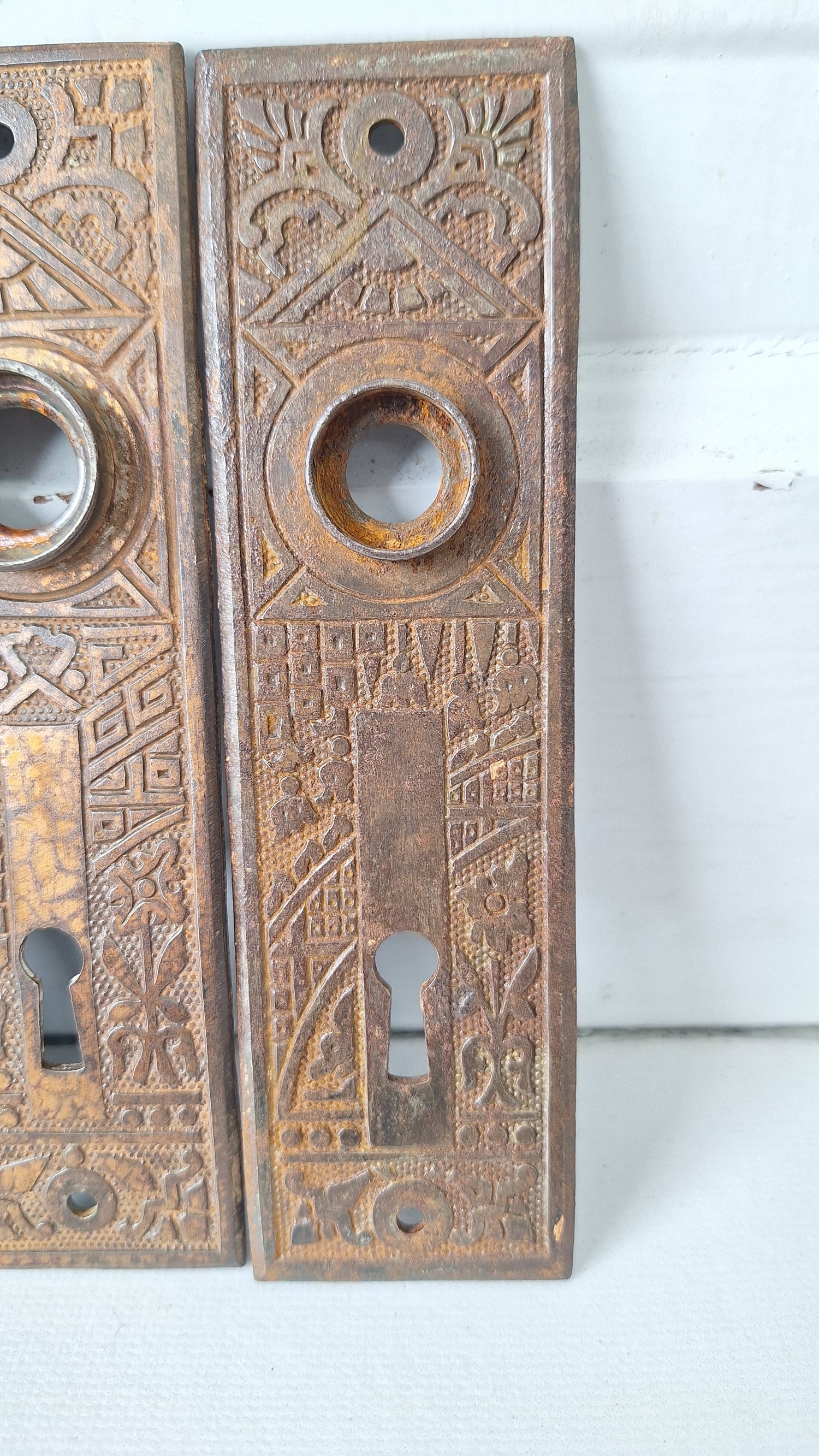 One Eastlake Ceylon Back Plate, Antique Escutcheon, Ornate Iron Door Hardware 021503