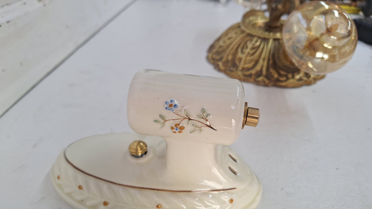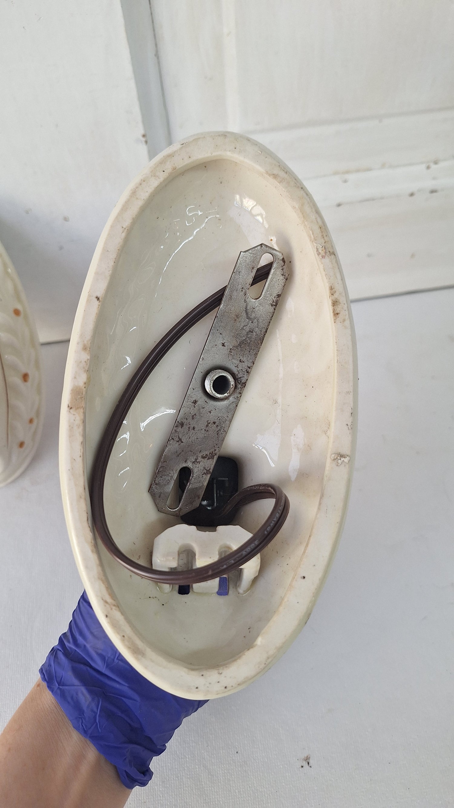 Pair of Vintage Porcelain Bathroom Sconces, Wall Mount Lights, Set of Ceramic Bathroom Vanity Lights